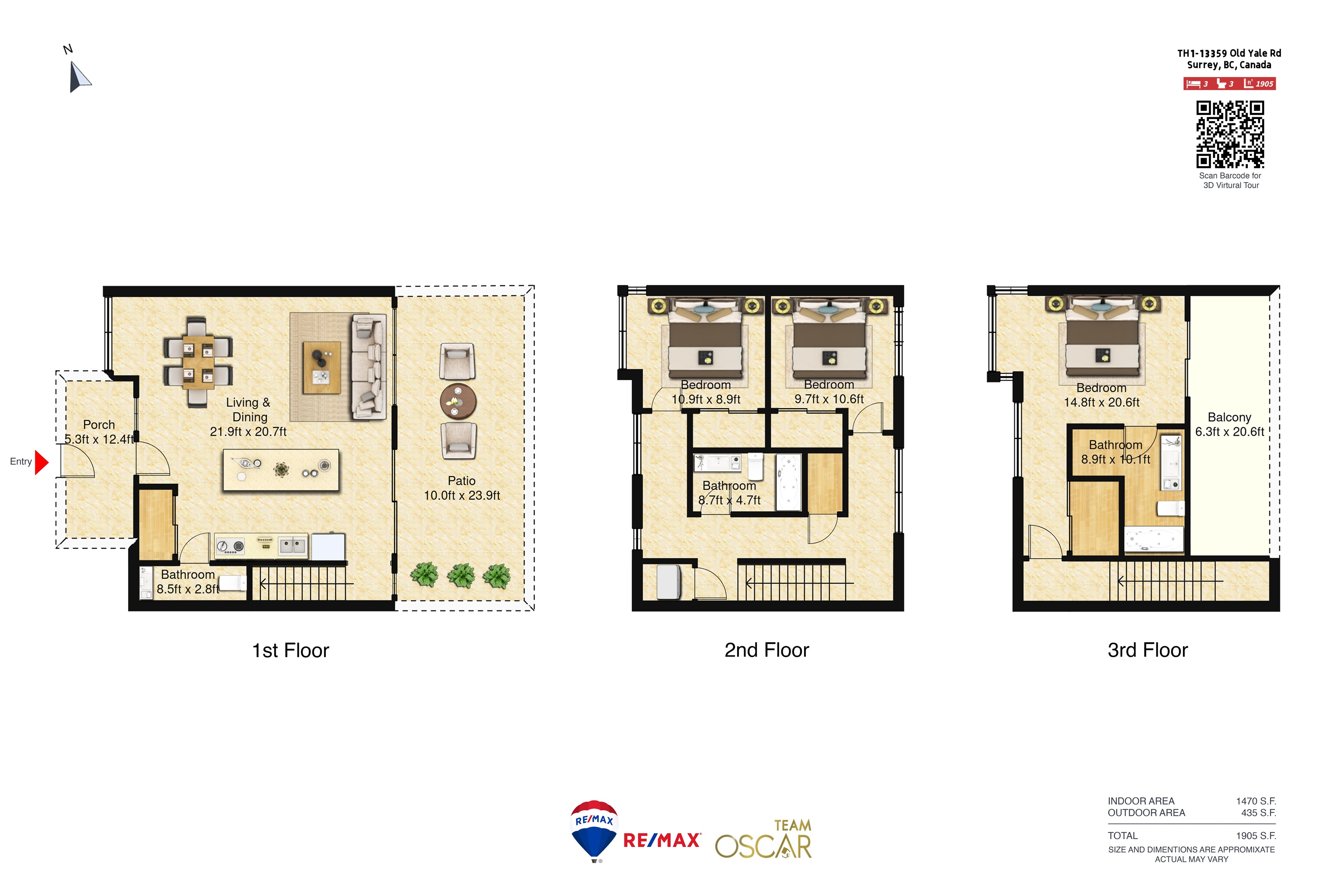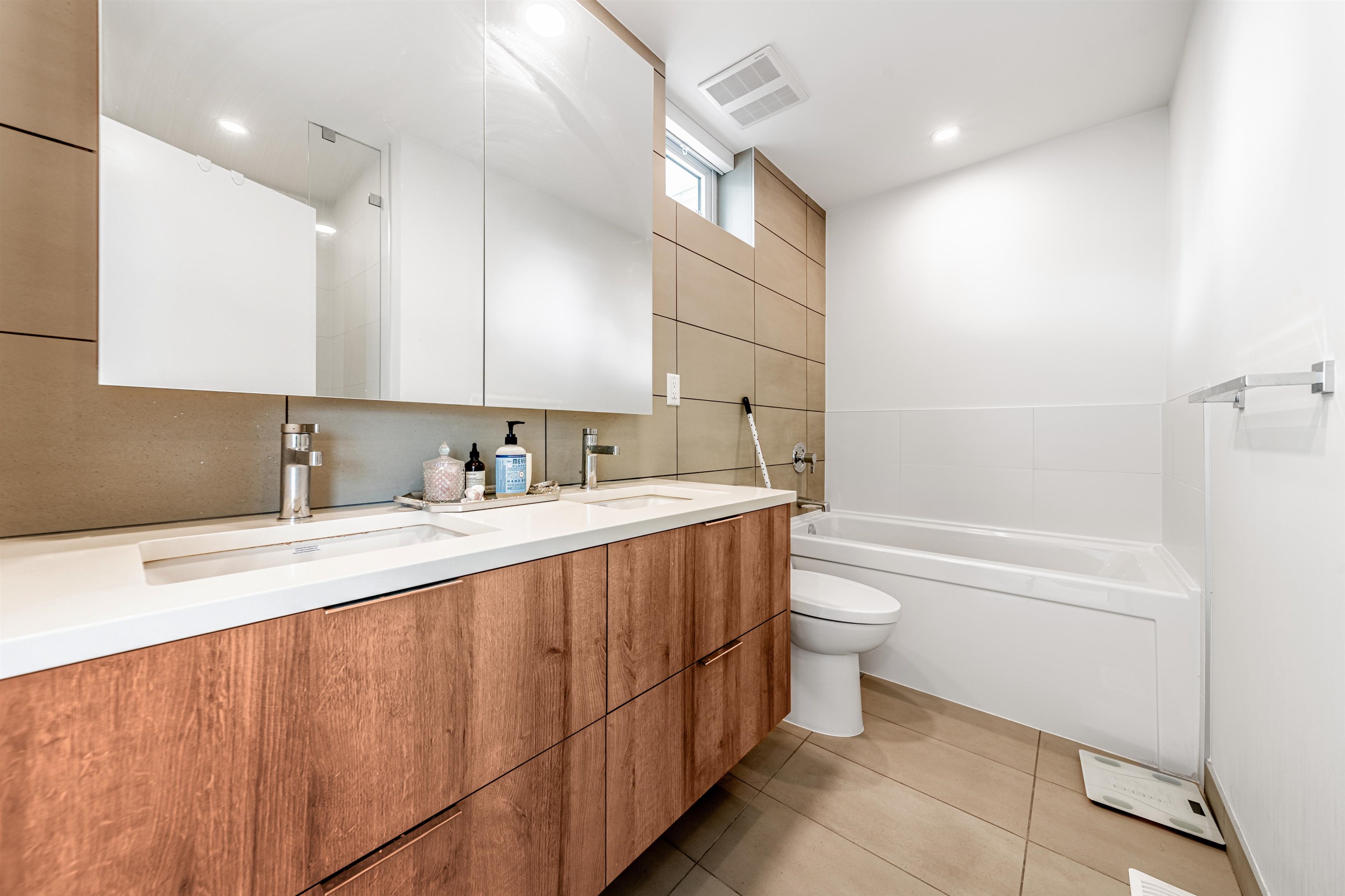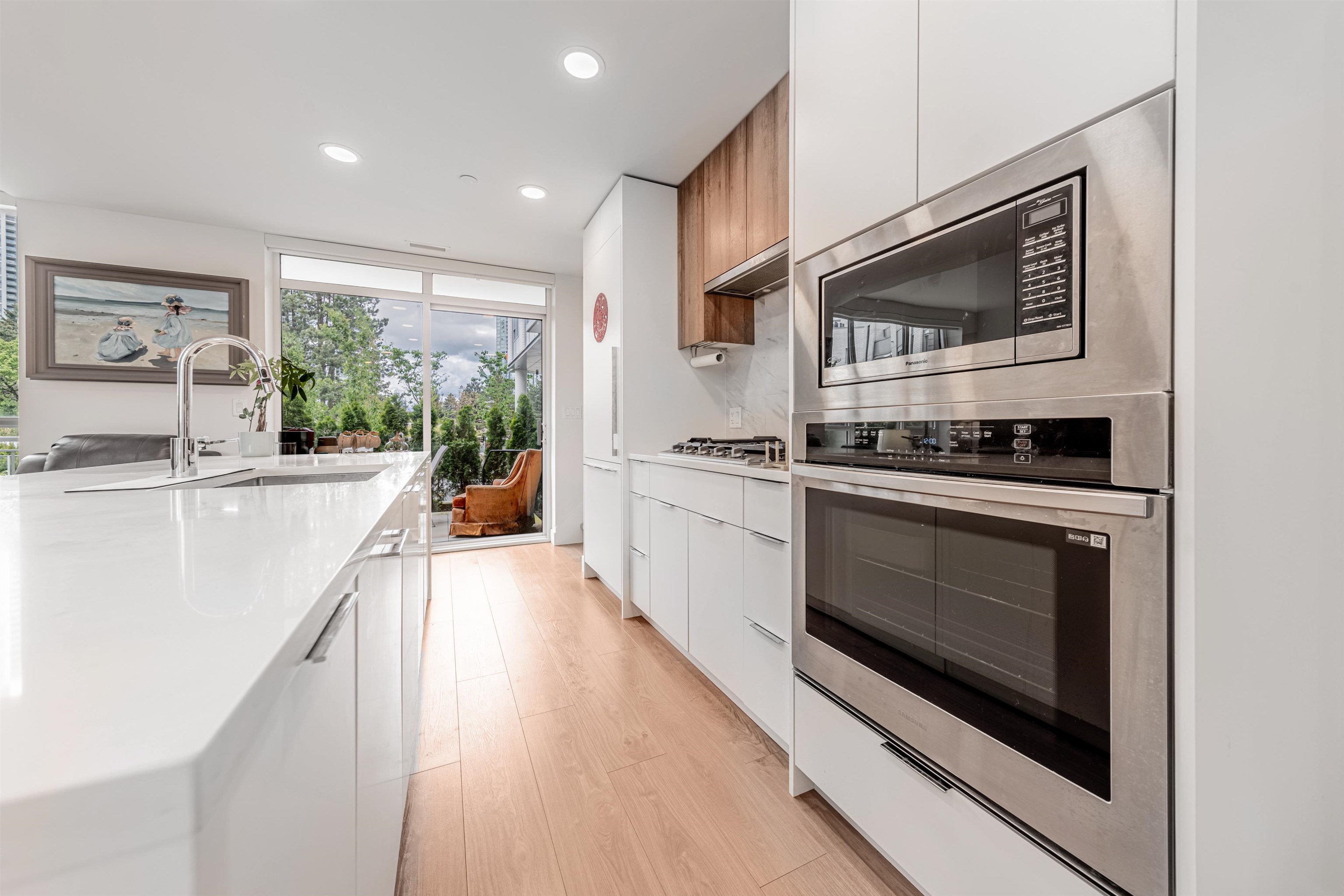 Welcome to this townhouse with 3 bed/2.5 bath in North Surrey. Spacious bedrooms w/designer closet storage. An expansive kitchen island perfect for entertaining, quartz countertops, a gas 5-burner cooktop and wall-mounted oven, integrated dishwasher, under-cabinet lighting, soft-close cabinetry and more. Kitchen leads to large terrace & amenity space. Spa inspired bathroom w/soaker tub or glassed walk-in shower, tiled vanity wall, mirror medicine cabinetry & dual flush toilets. Gas/water bib on terraces. AC...