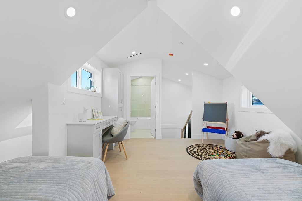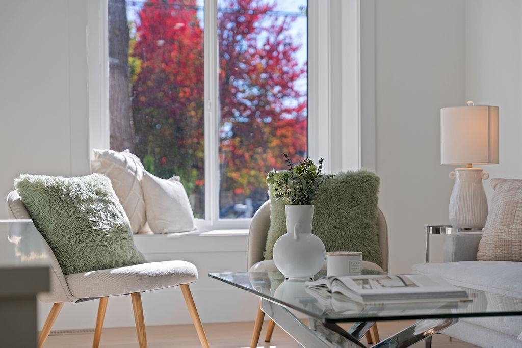 Brand new front half duplex offering over 1,300 sq.ft. of quality living space with 3 bedrooms & 2.5 baths, a fantastic value. From the gated entry & fenced yard to the bright open main floor, every detail impresses. Features include white oak floors, high ceilings, Fisher & Paykel integrated appliances, built-ins, AC & a designer powder room. Two bedrooms & full bath on the 2nd level, top floor primary with ensuite & private balcony, perfect for use as kids room. Sunny southern exposure fills the home with...