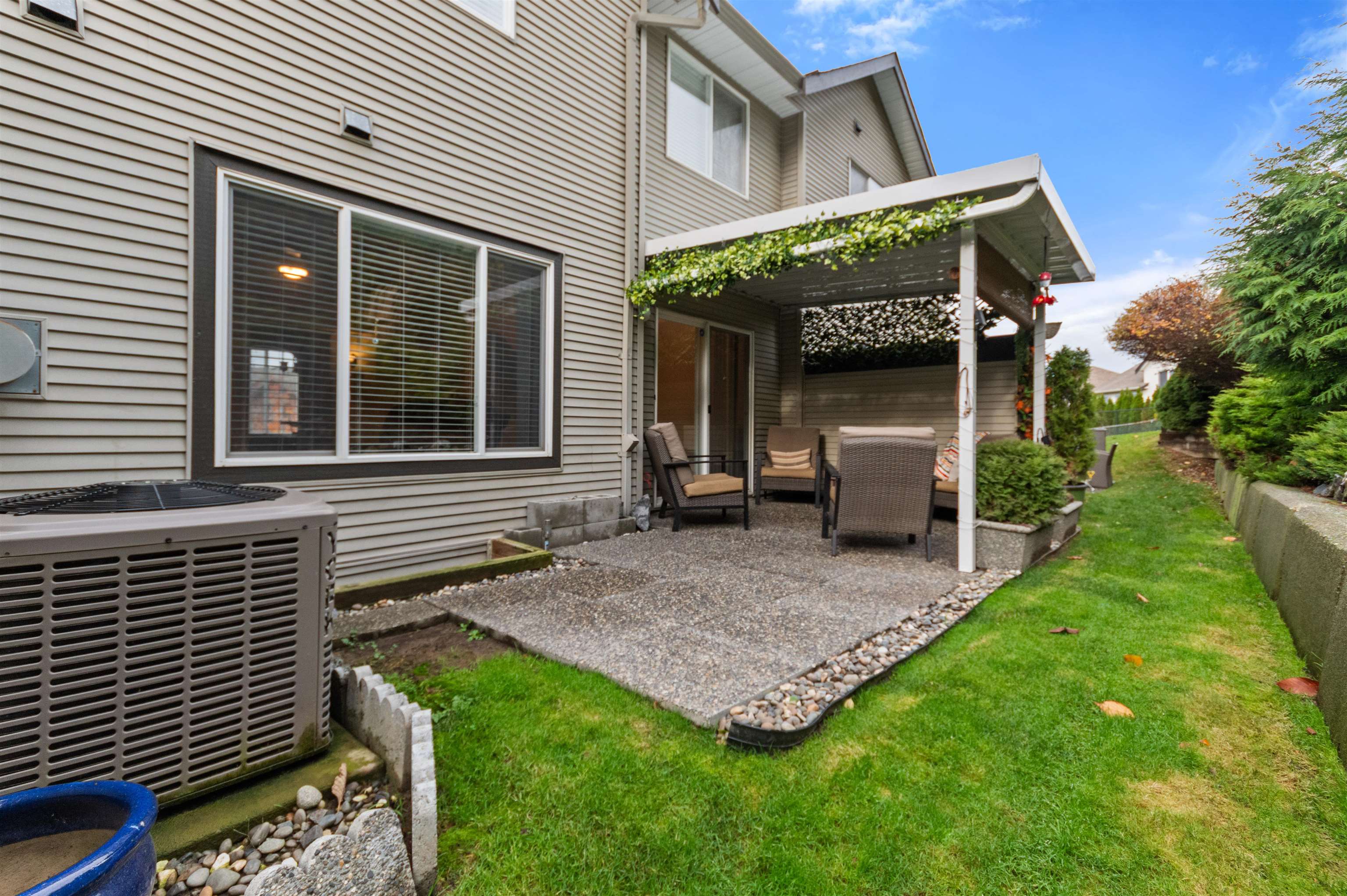PRICED WELL BELOW BC ASSESSMENT! APPLE CREEK TOWNHOUSE COMPLEX IS ONE OF THE BEST FAMILY ORIENTED IN CHILLIWACK. OFFERS R.V. PARKING ... WHO HAS THAT? RIGHT! IN A FULL STRATA, NEW CHILD'S PLAY AREA, CLUBHOUSE WITH GAMES ROOM. THIS 3 STOREY WITH 3 BEDROOMS, 2 1/2 BATHS, HUGE REC ROOM DOWN ... CAN BE USED FOR MULTI FUNCTIONS. MAIN FLOOR IS AWESOME W/O ONTO YOUR VERY PRIVATE COVERED PATIO AREA. A/C FOR THOSE HOT SUMMERS, BUILT IN VAC, NEWER HWT, DOUBLE GARAGE 2 DOGS (NO SIZE RESTRICTION) or 2 CATS. 1 DOG or 1 ...