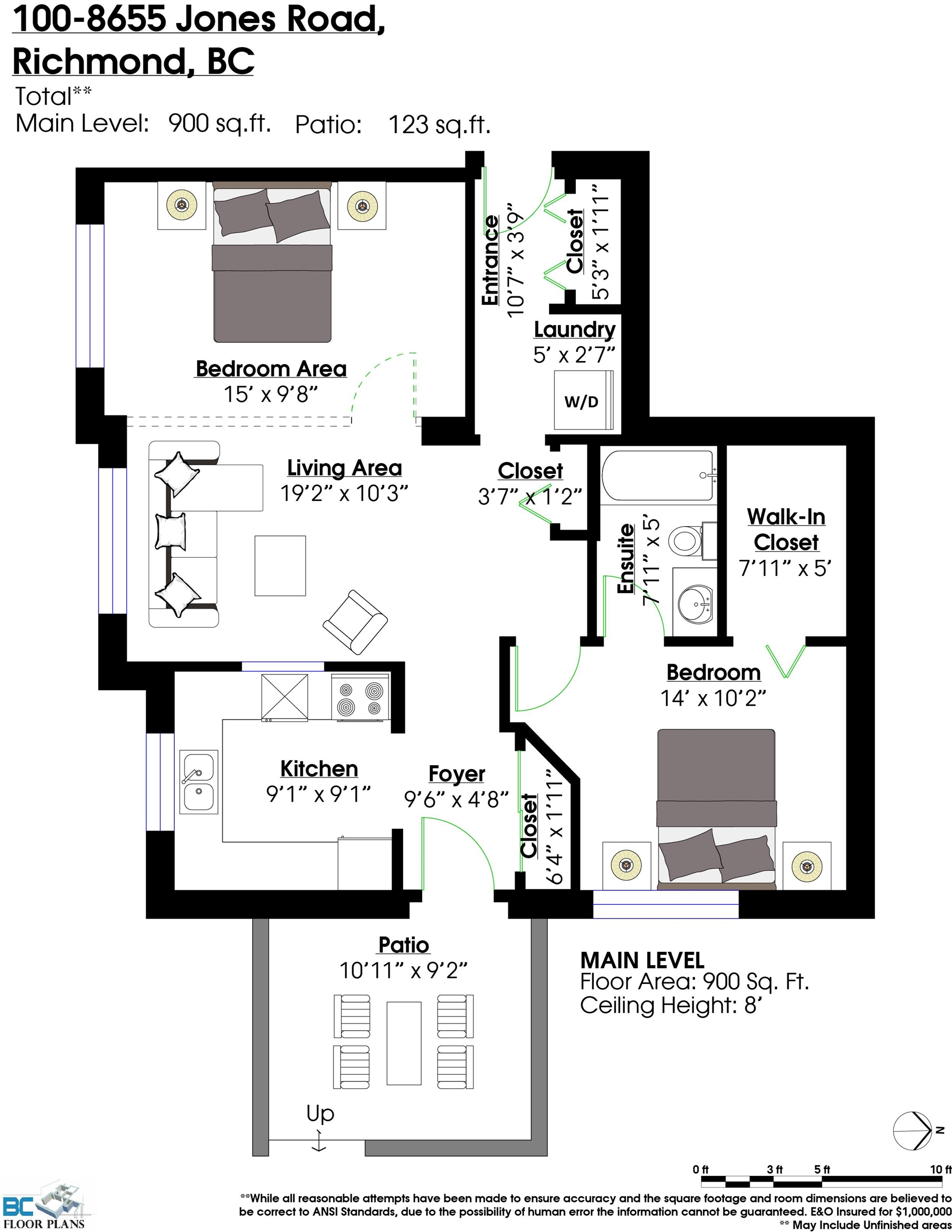 It's not a Two Bedroom, YET! This is an incredibly unique opportunity. This HUGE (900 sq ft) one bed, ground floor, unit gives off Townhouse Vibes all day long. No shared any walls with neighbours, and a private entry from the 100 sq ft patio . It is incredibly sound proof, as it is completely concrete, all walls, and ceiling. And the Best Part? It has the perfect layout to make it a spacious Two bedroom unit with a simple partition wall dividing the living room. Bring your design ideas!