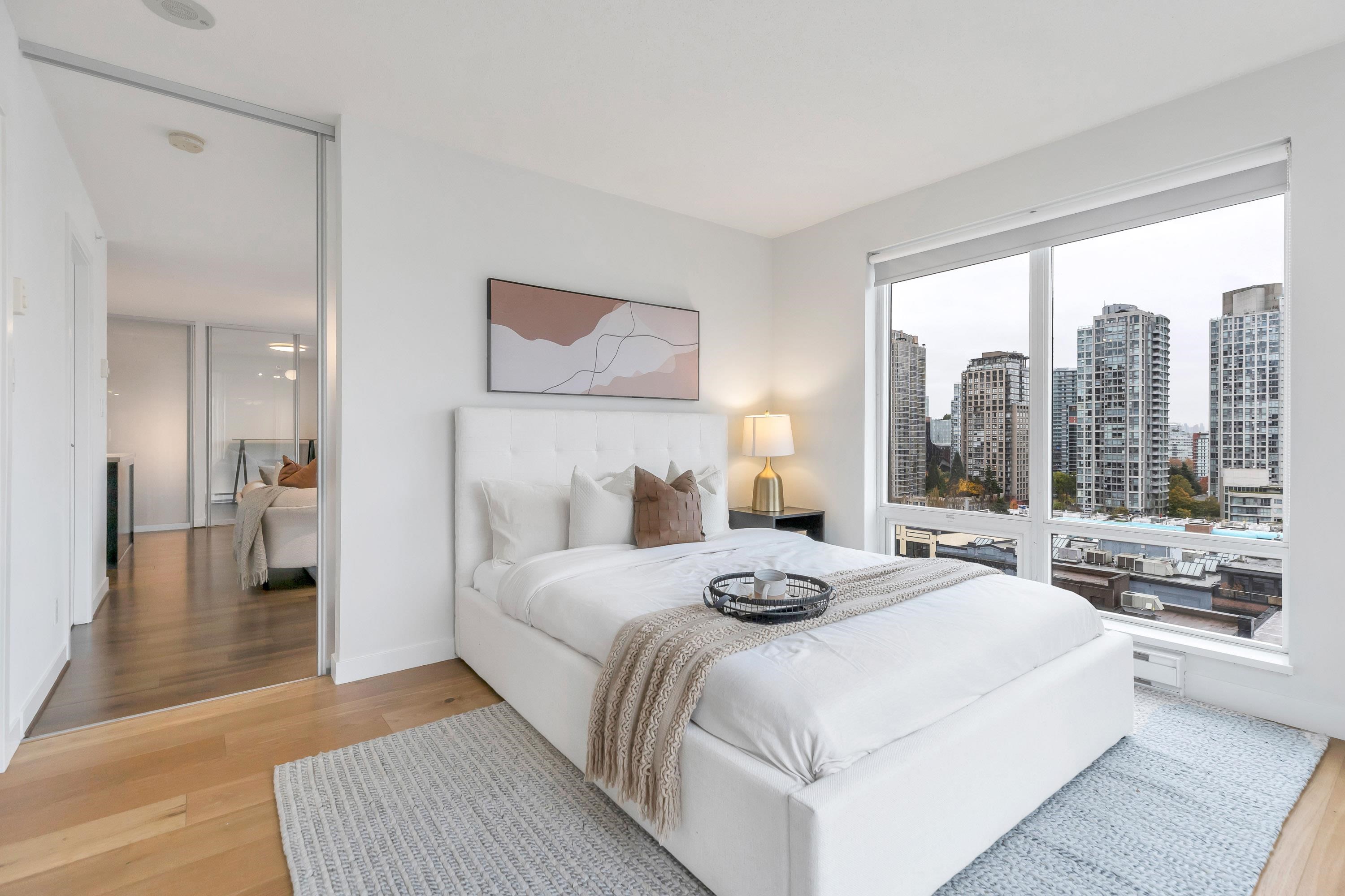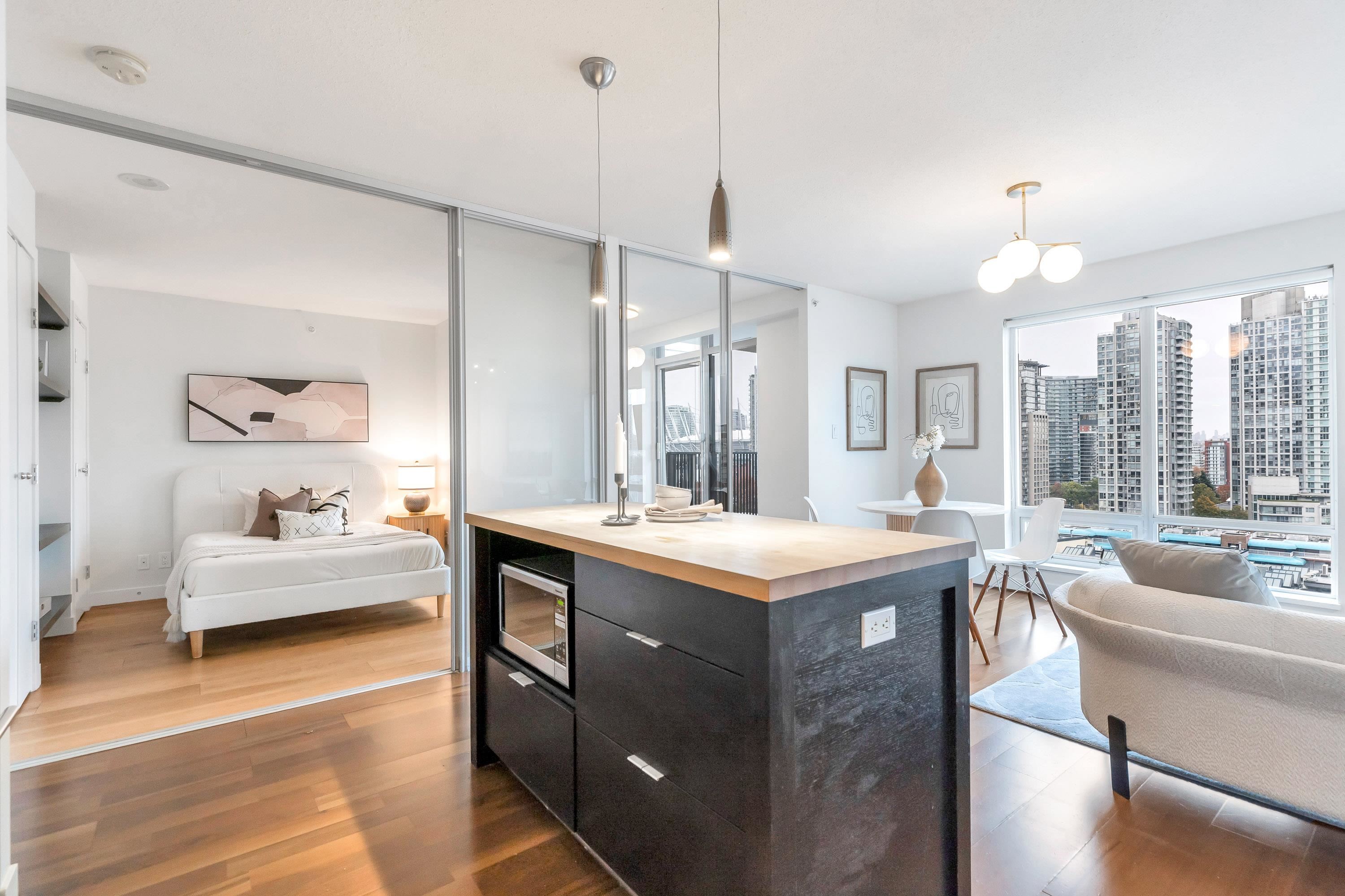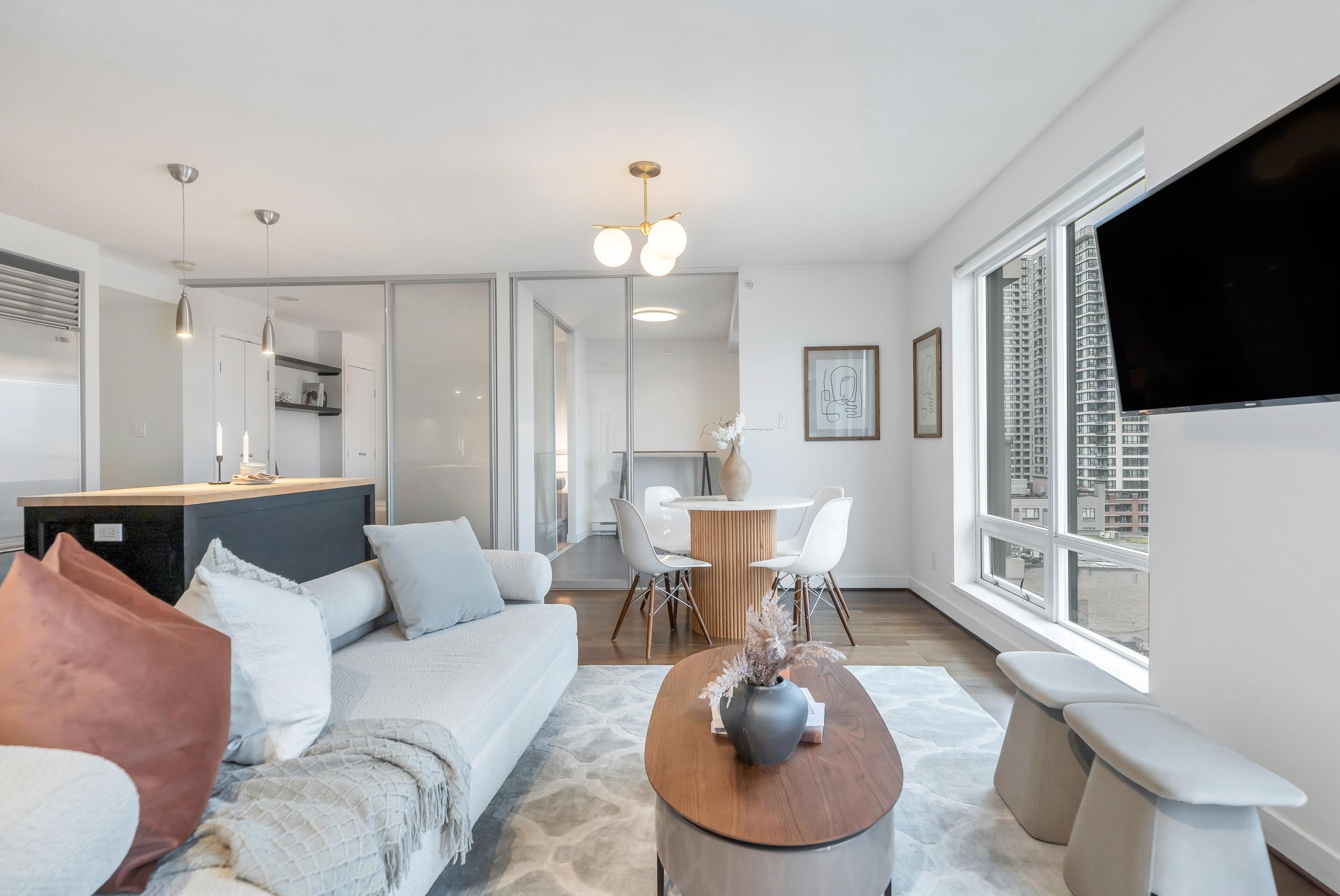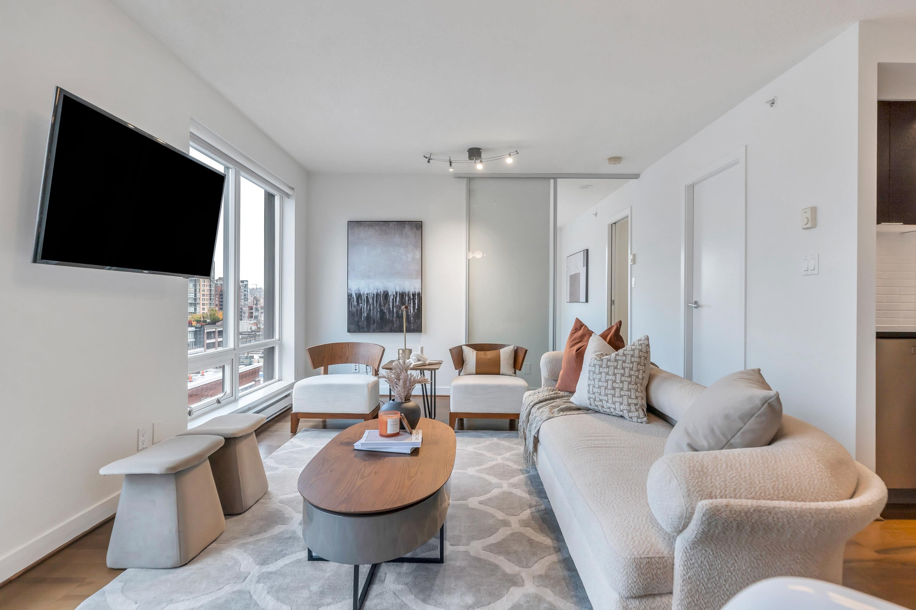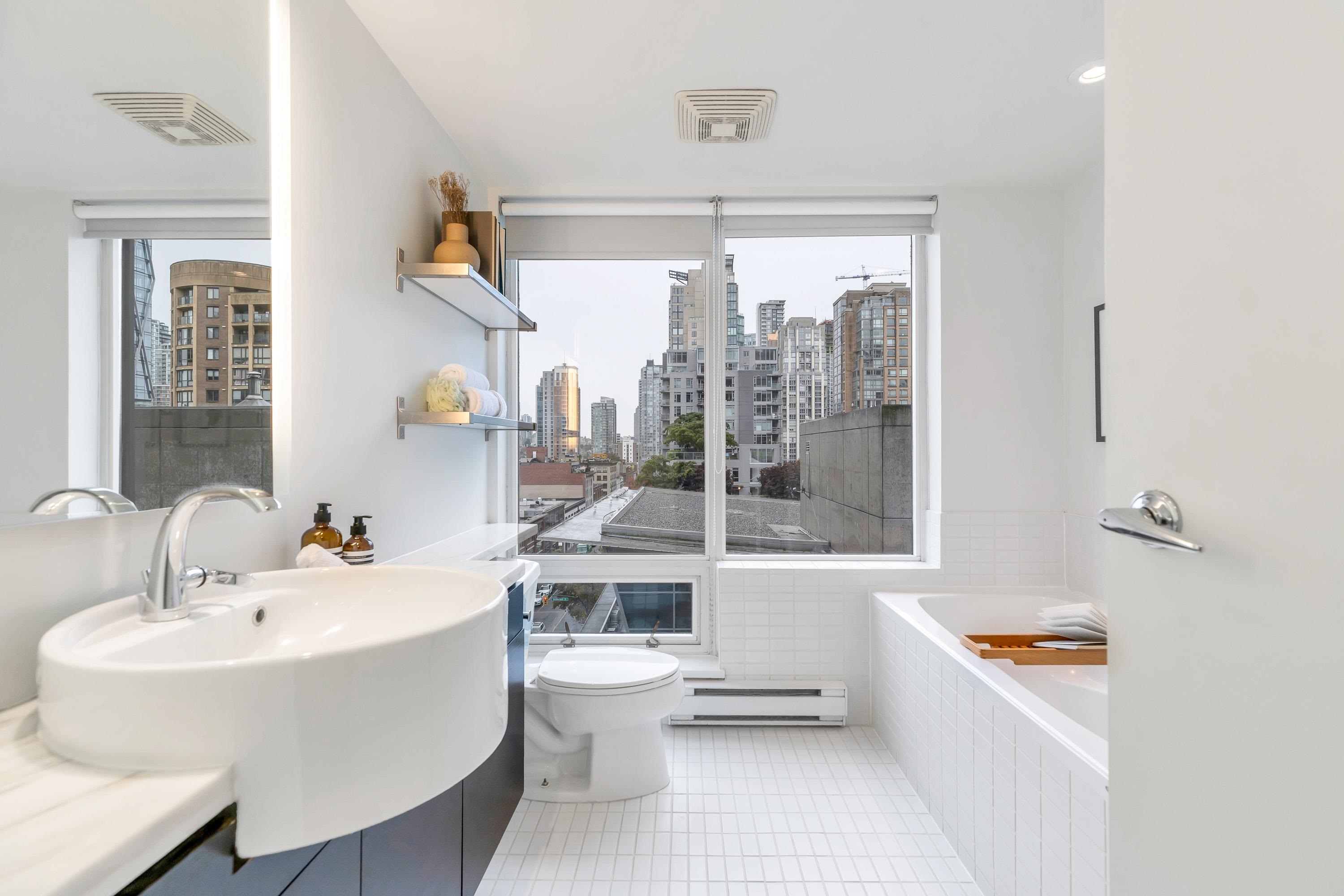 Stunning 2 bed, 2 bath executive condo in the sought-after Domus building with unobstructed views over height-restricted Yaletown to False Creek and the marina. This bright SE-facing home features the coveted 03 floor plan with spacious living/dining areas and an open gourmet kitchen with espresso stained cabinets, granite counters, high end appliances inc: wolf range and subzero fridge. The primary bedroom offers large walk through closet and spacious ensuite. Includes secure parking and access to premium ...