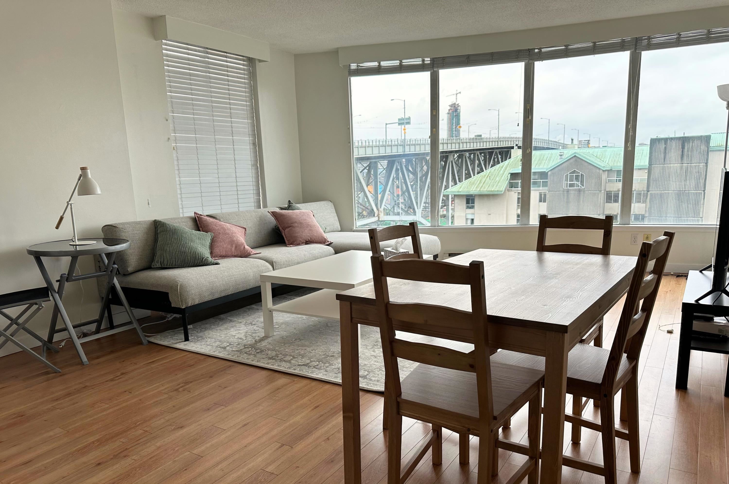 Discover the epitome of sophisticated urban living in this stunning 961 Sq.Ft 2 bedroom, 1.5 bathroom condo perched on the 10th floor and it comes FURNISHED! Unpack your suitcase and immerse yourself in this meticulously designed space. The kitchen is a culinary haven for creating delightful family meals. Entertain in style in the expansive living and dining area that boasts Southern views of False Creek and the iconic Vancouver skyline! This unit offers one designated underground parking stall. Internet an...