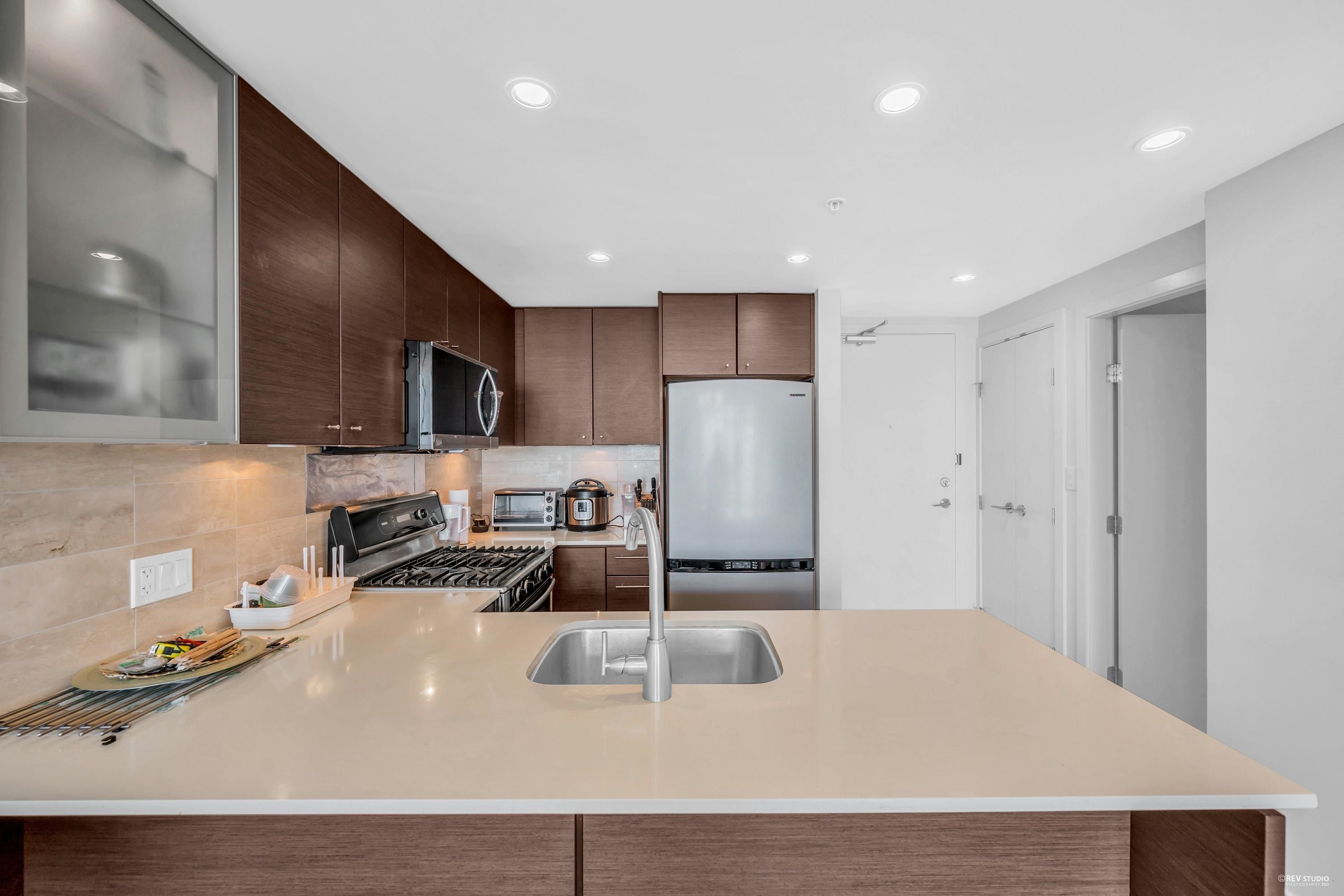 "Lotus" by Cressey in Central Richmond! Well-maintained & Functional 1 bed and 1 bath unit w/covered balcony. Quiet side of the building and facing courtyard, this home offers open floor plan, spacious living room, split ensuite bathroom design, energy efficient Geothermal heating & cooling, mountain views. Other features include open concept kitchen w/granite counters, gas range, stainless appliances & ample cabinets for storage. BRAND NEW flooring and paint. Fantastic amenities including indoor pool, hot ...