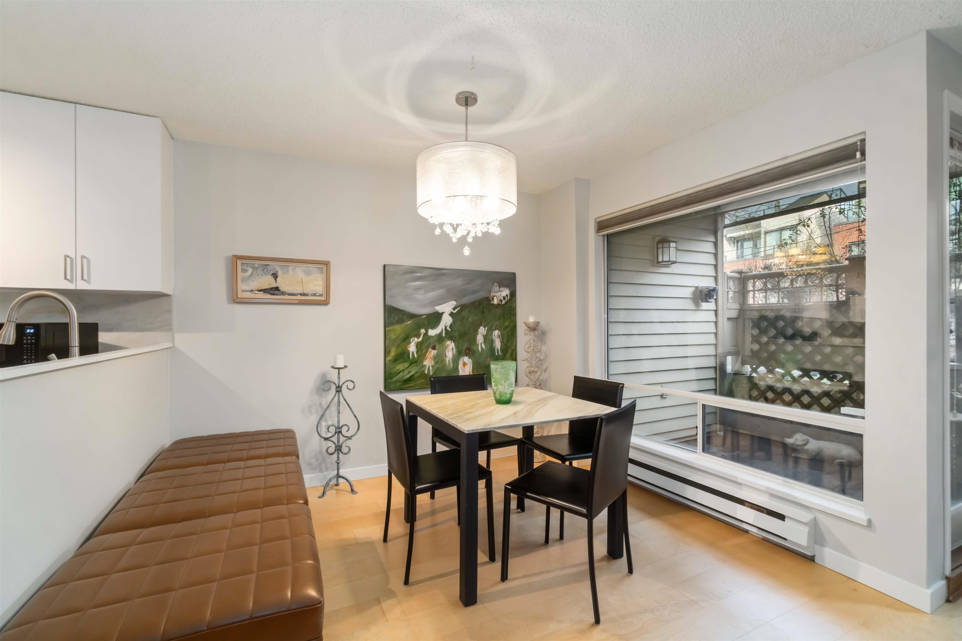Townhouse-style 1 bdrm condo offers exceptional privacy, a private courtyard & the direct patio access makes it feel like a true townhome. Move-in ready w/ new engineered HW floors, new quartz countertops, new kitchen cabinets, new fridge & stove + freshly painted! Well-planned living space includes large windows, fireplace, pantry, spacious bdrm that accommodates a king-size bed, updated semi-ensuite bathrm + a bright open layout ideal for both quiet evenings & entertaining. Secure parking + storage locker...