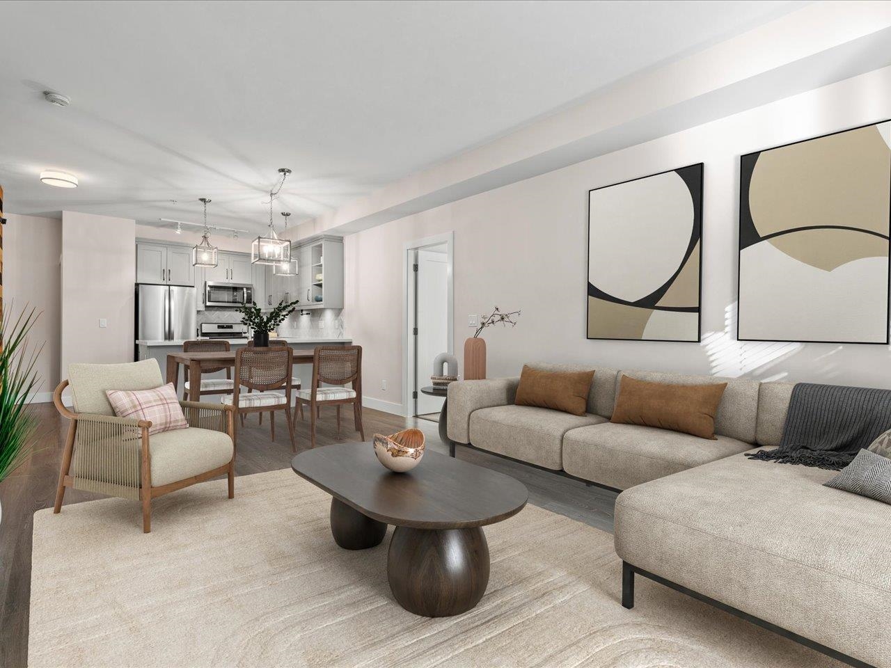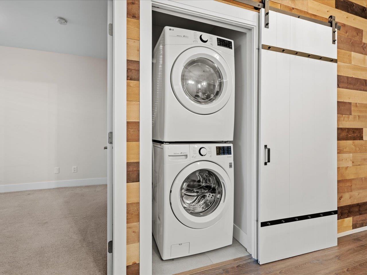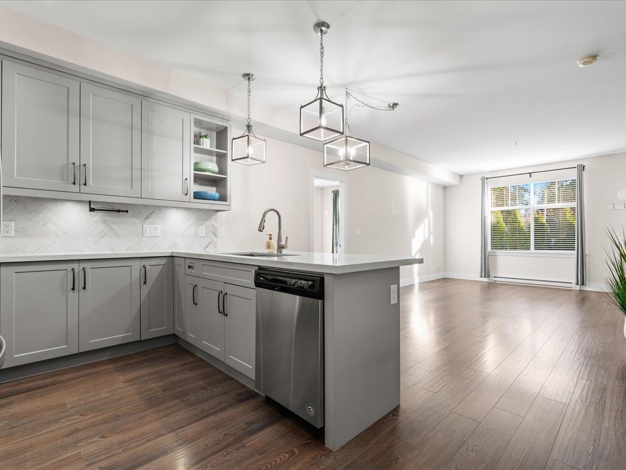 CRESCENDO - Welcome to this bright and modern 2 bed/2 bath ground-level corner suite offering 1010 sqft of spacious living in the heart of South Surrey. With direct outdoor access to the street and a fully fenced yard, this home offers a lifestyle ideal for those with children, pets or anyone seeking easy indoor-outdoor living. Two patios enhance the indoor-outdoor lifestyle, including one off the primary bedroom. Inside, enjoy a thoughtful layout with bedroom separation and an impressive reclaimed barn woo...