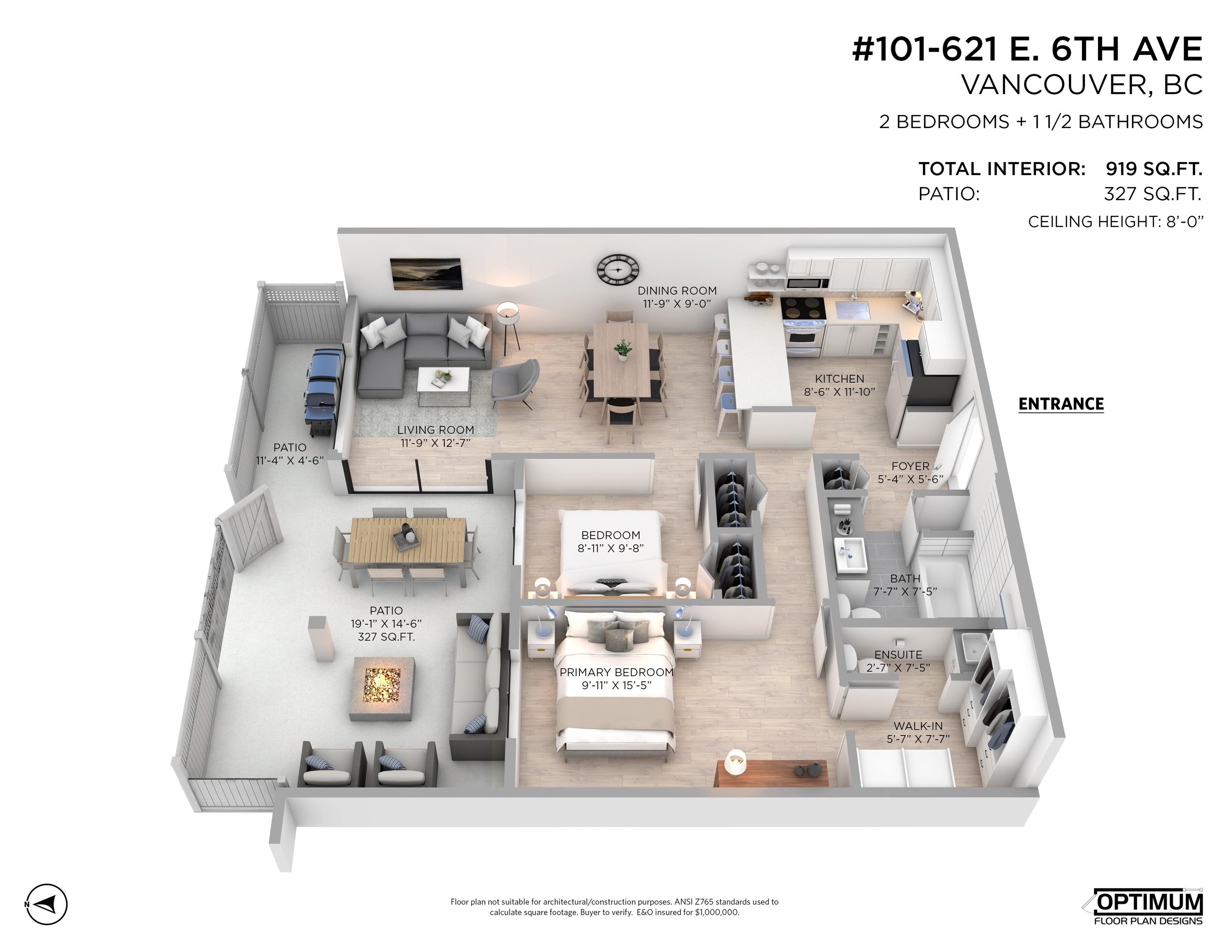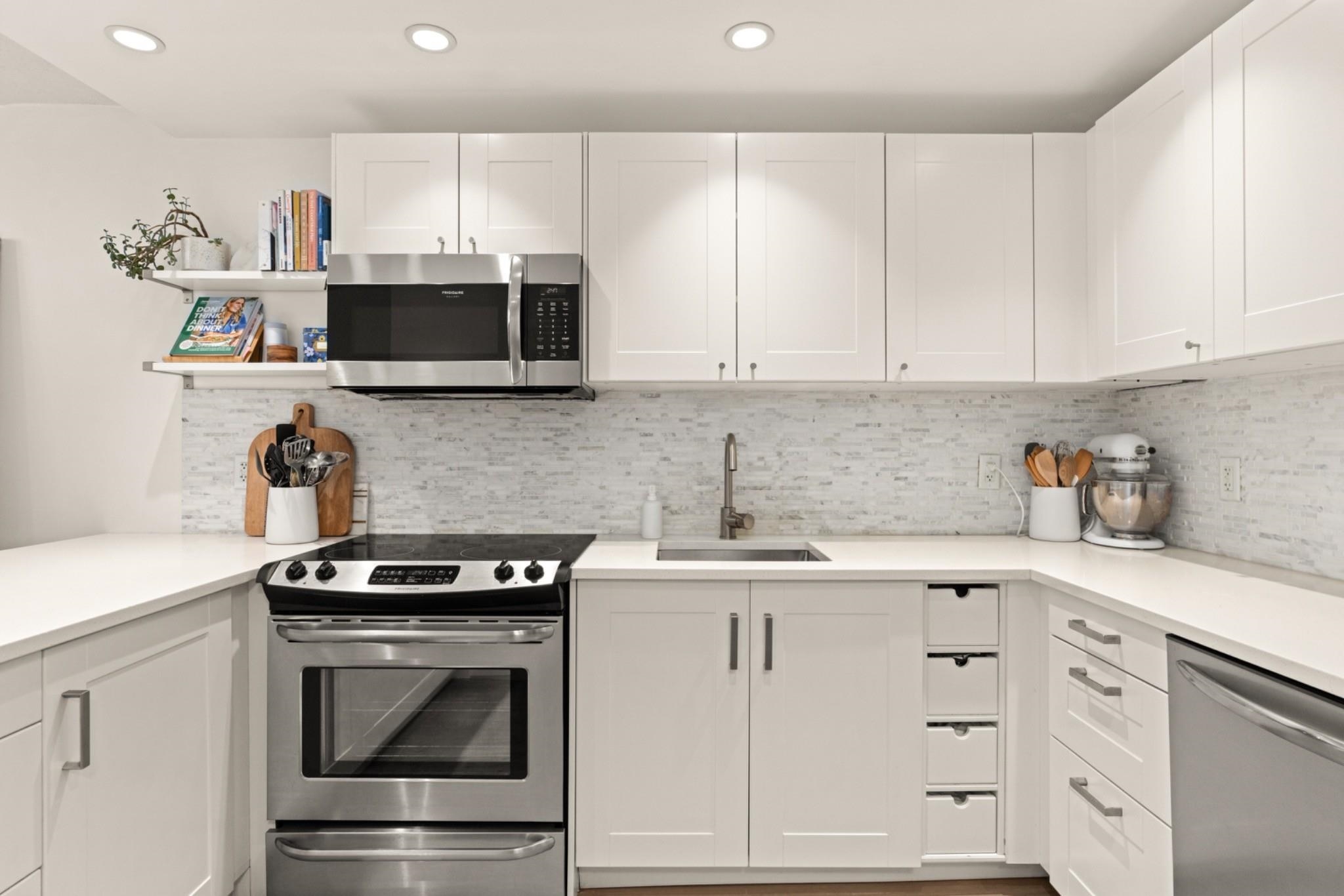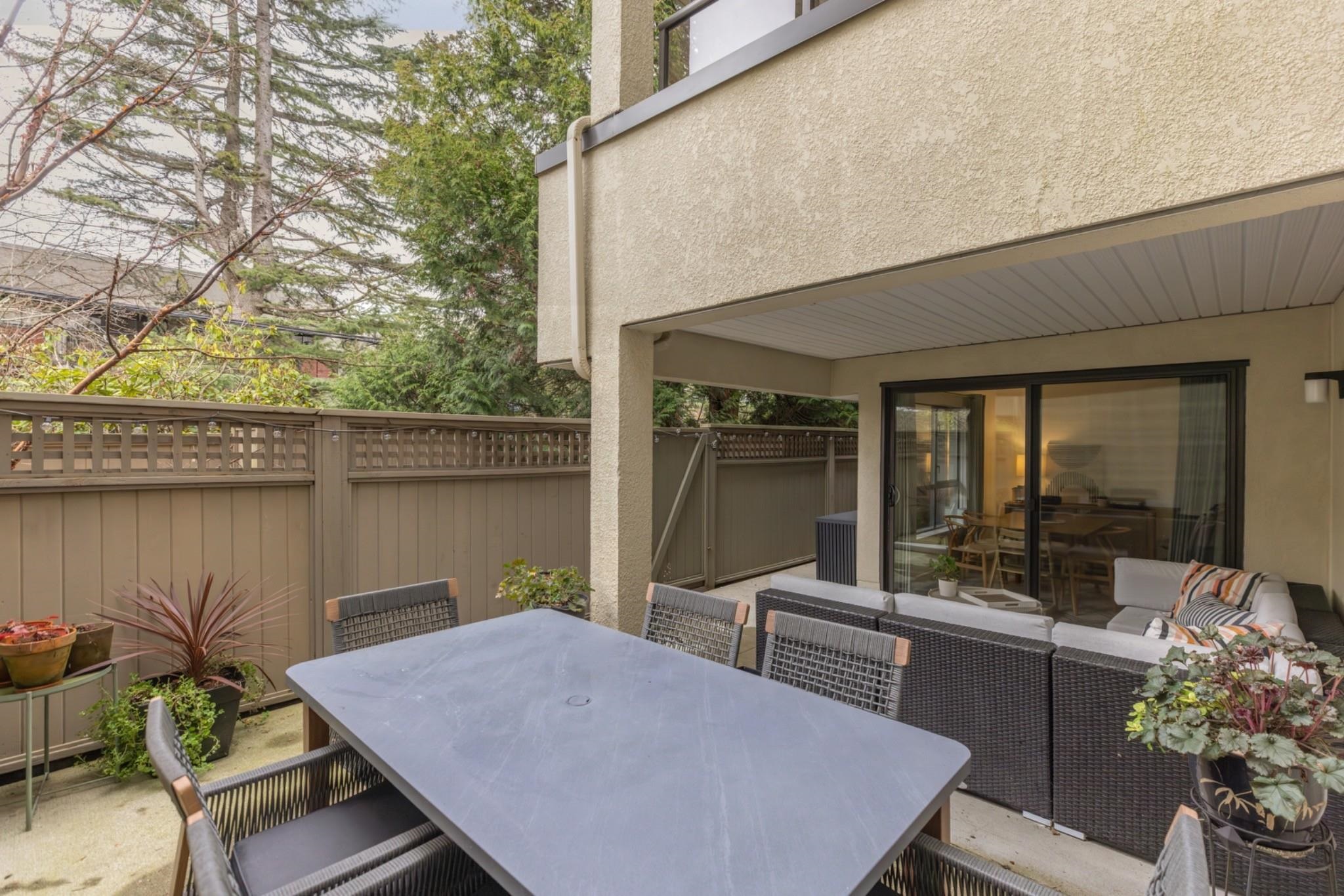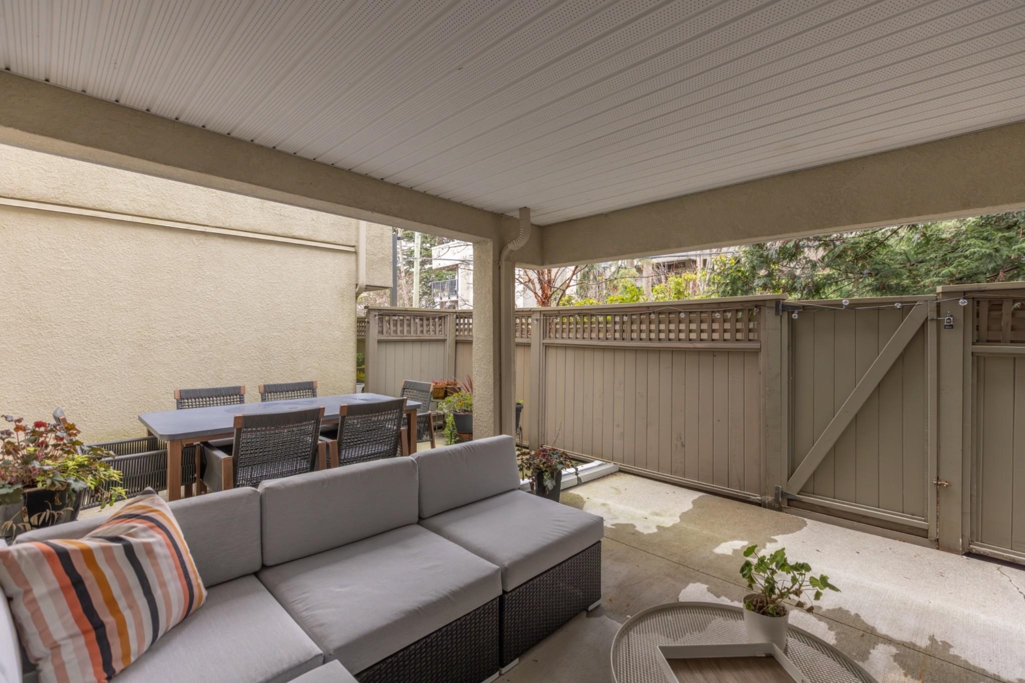 This fully updated unit provides 919 SqFt inside with 2 bedrooms & 2 bathrooms + 1 parking stall. Additionally this home comes with a highly coveted semi-covered patio space of 327 SqFt. From open concept living starting at the house-sized kitchen offering custom stone-work, stainless appliance package & an abundance of storage & counter space, through to the perfectly flowing living room then dining room. An extremely generously sized Primary suite with convenient walk-through closet to powder. Shared laun...