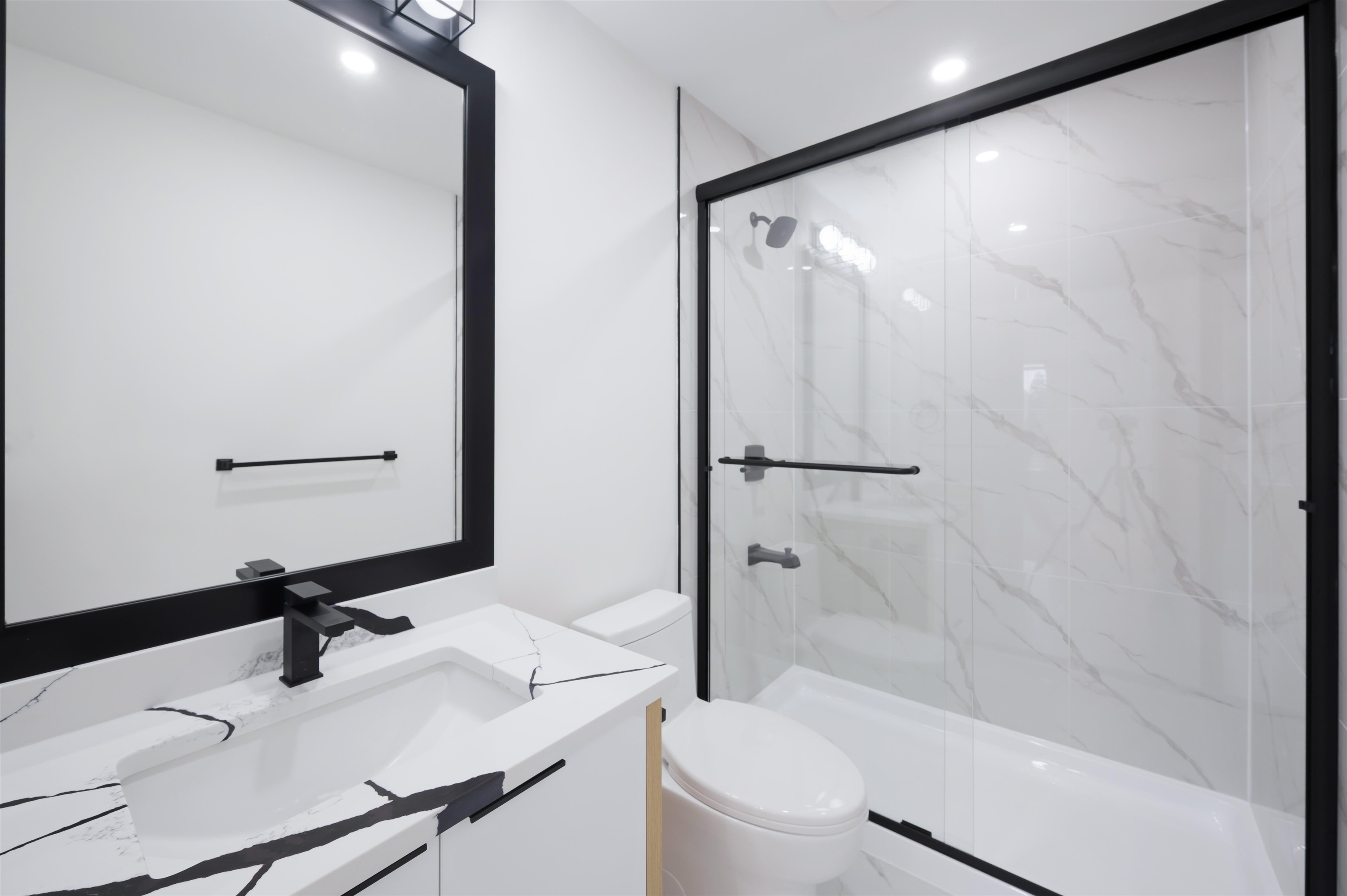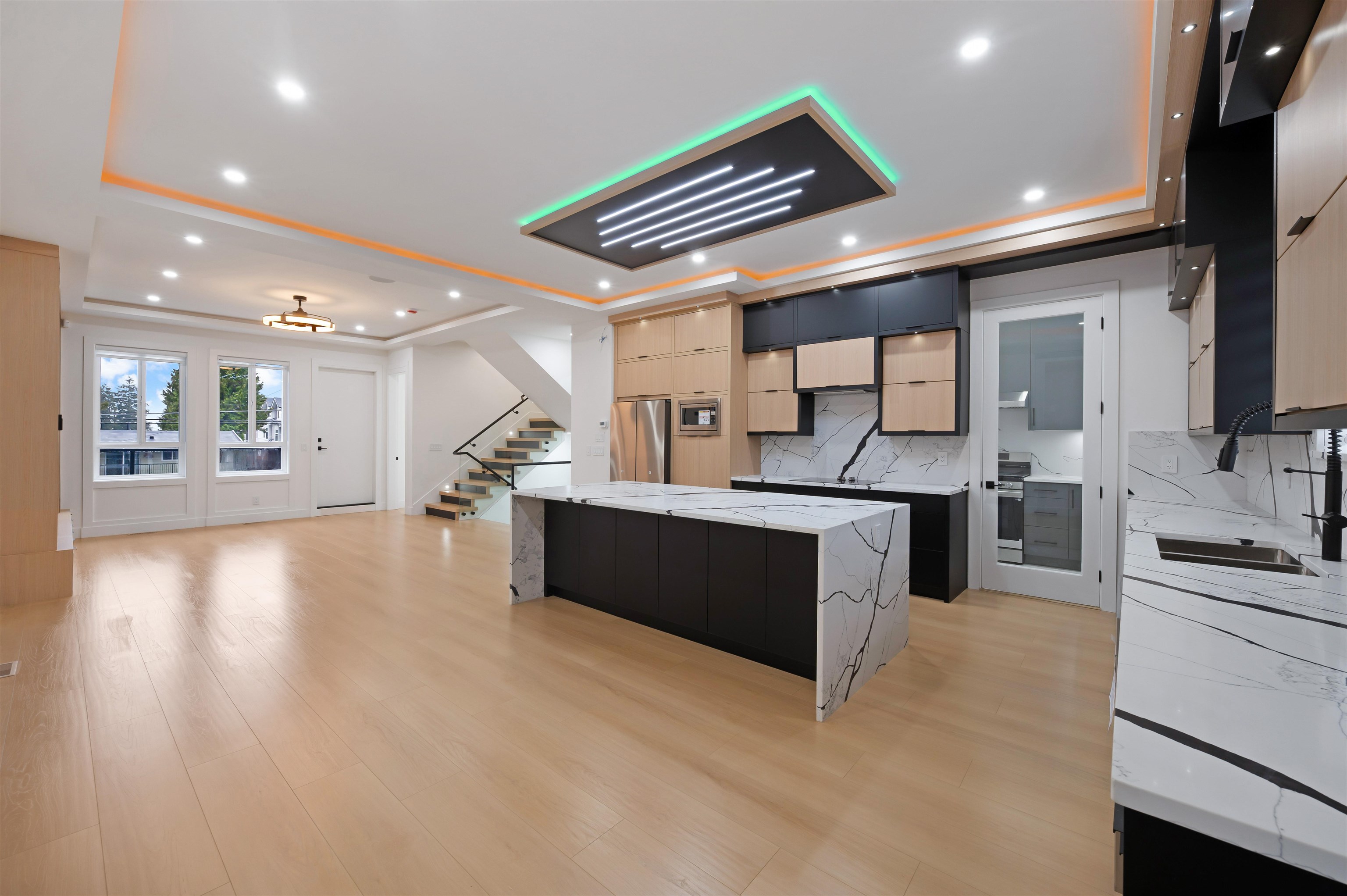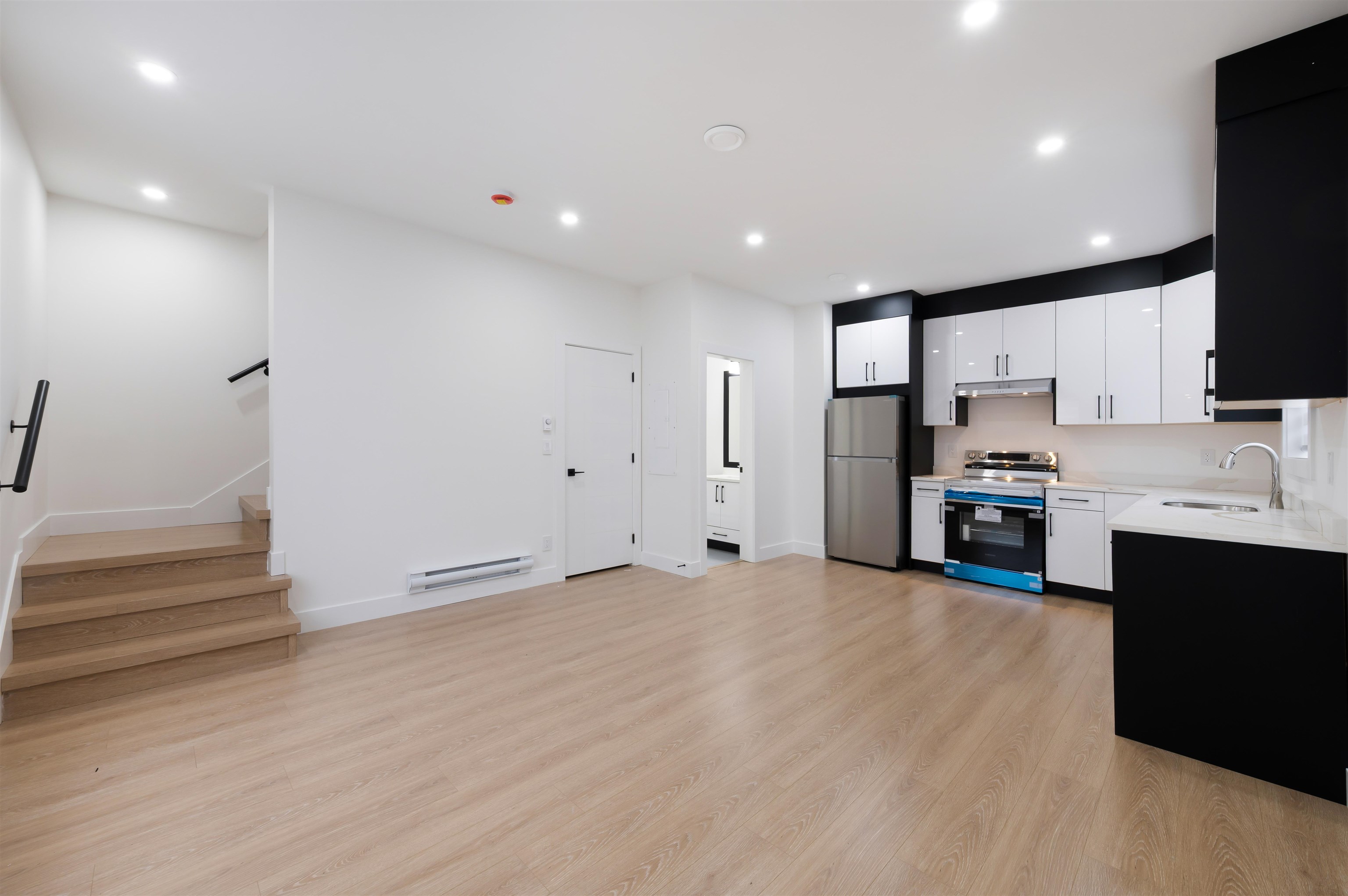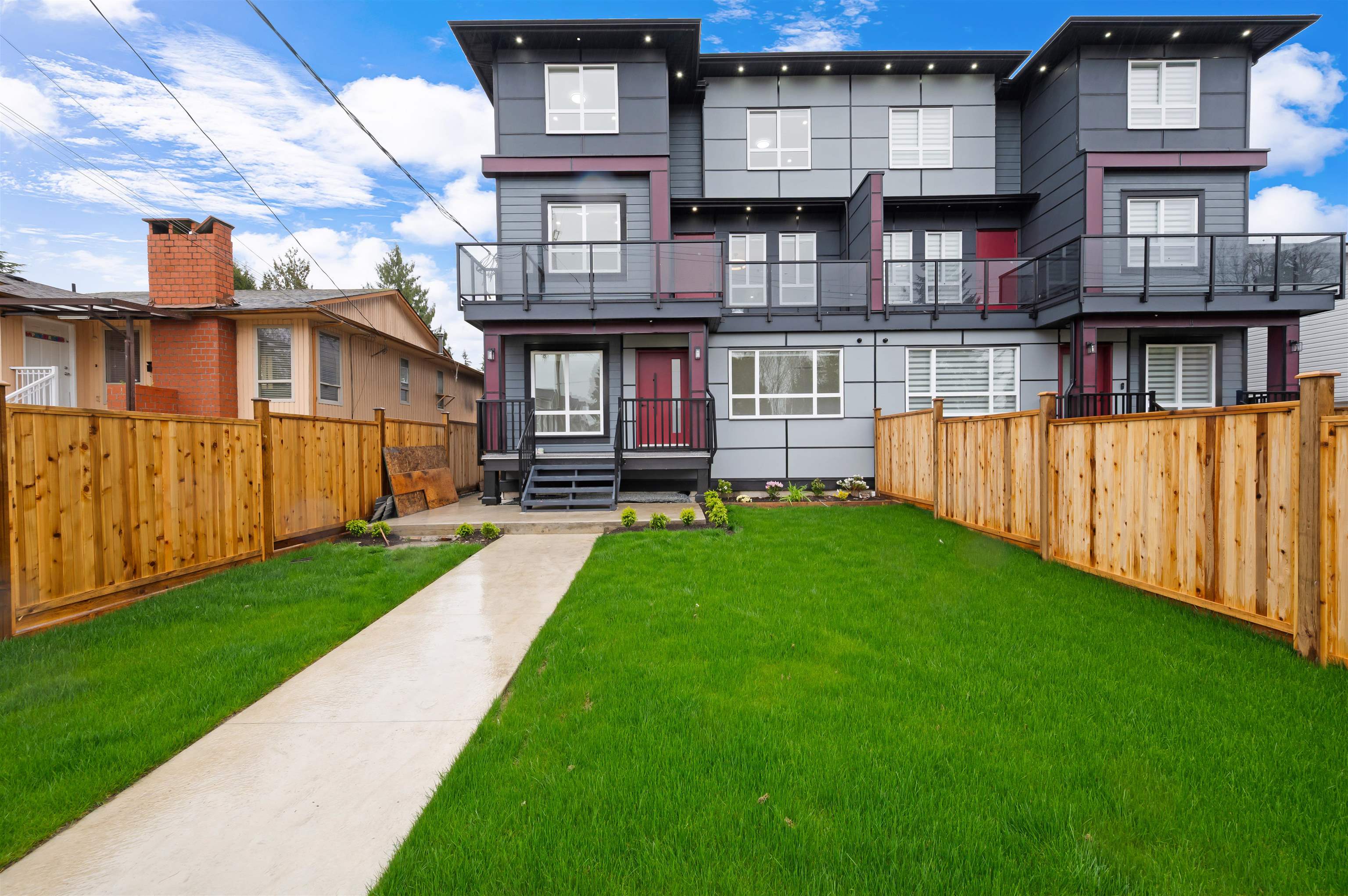 Brand new 3-level STRATA 3135 SQFT 1/2 duplex & 789 sqft Garden suite situated on 3595 sqft Lot with back lane access. 7-bed,6-bath with den on main level. Forced air heat with Air condition. bus stop at front of unit & Close to both schools, shopping and skytrain. Main floor features open concept living, dining, kitchen, spice kitchen with stainless steel appliances, bedroom with full bathroom. Top floor master bedroom with ensuite plus 3 other good size bedroom and 2-full bathroom and laundry. 2-bed legal...