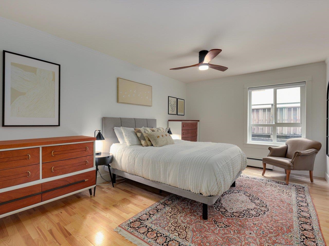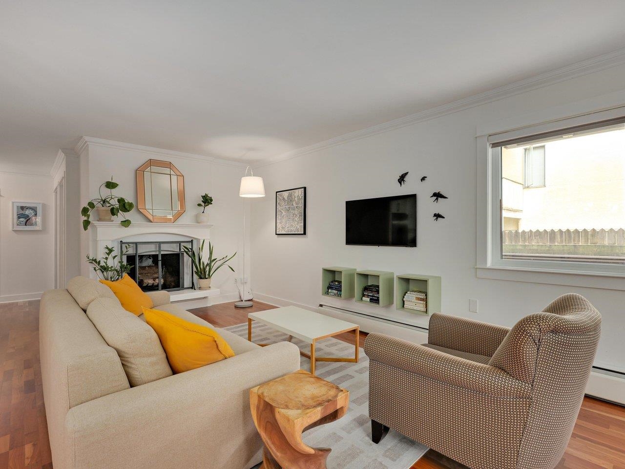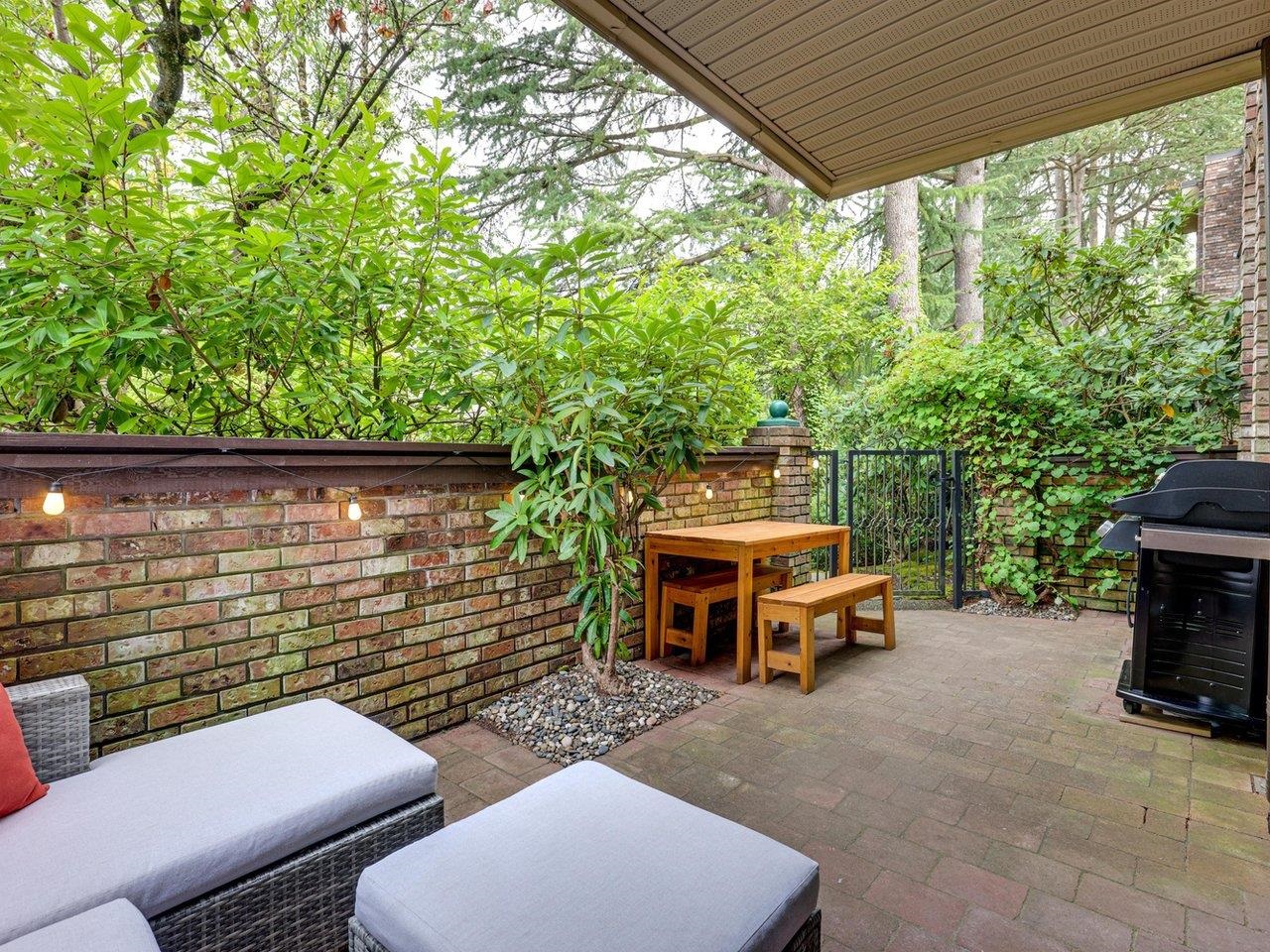 Private garden-level corner unit at the Landmark Shaughnessy. Renovated 2-bed, 2-bath home offers 1,132 sq.ft. of functional living space and a rare huge private patio with gated entry. Spacious living and dining area anchored by a wood-burning fireplace. Kitchen and bathrooms have been fully renovated. New hardwood flooring in both bedrooms (2024). Primary bedroom is exceptionally large—ideal as a serene retreat or a combined bedroom/home office. Custom closets throughout provide exceptional storage. Well-...