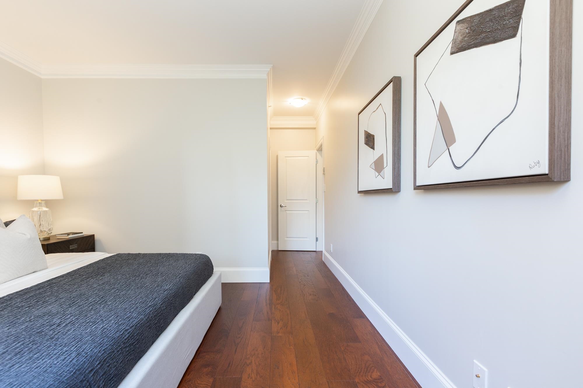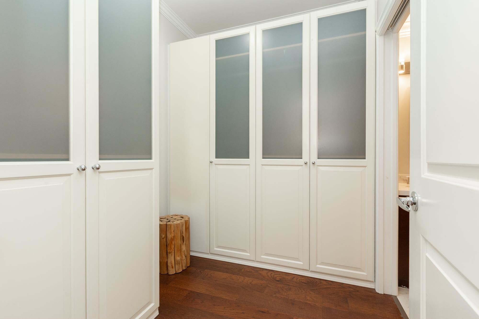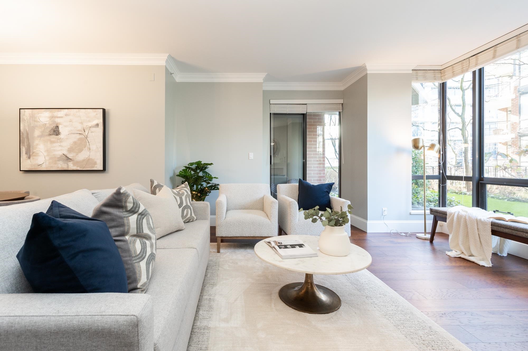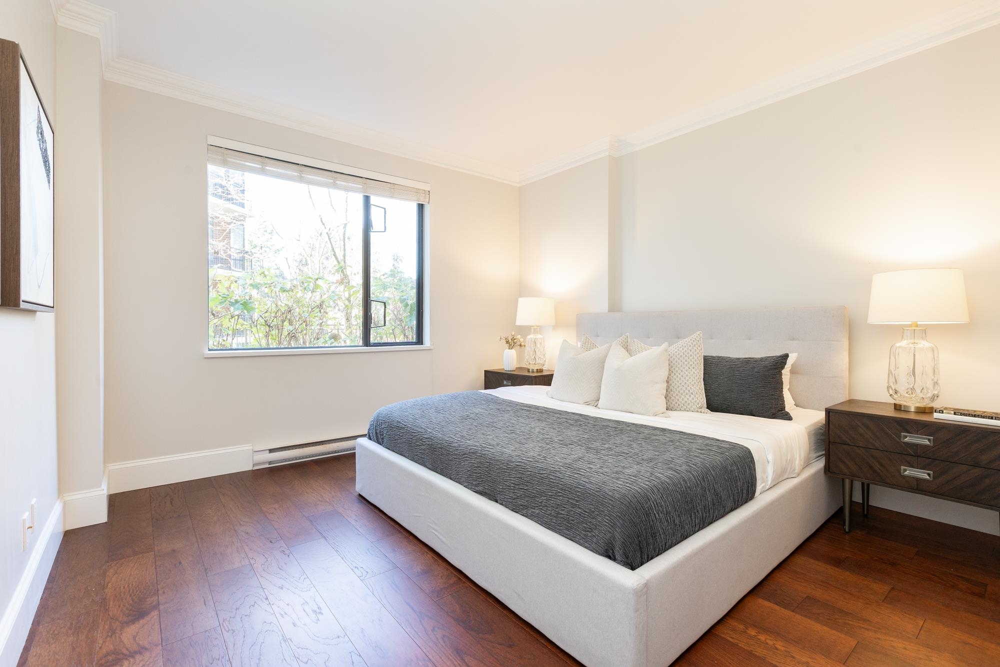 Welcome to Sussex House. This impeccably maintained and tastefully updated 2 bedroom + den, 2 bathroom residence offers 1,282 sq ft of refined living. The open-concept design features engineered hardwood floors, 9’ ceilings, and custom crown moulding throughout. A spacious in-suite storage room adds exceptional functionality. The primary suite boasts a beautifully designed walk-through closet with built-in cabinetry and a spa-inspired five-piece ensuite. Enjoy your private, BBQ-friendly patio surrounded by ...