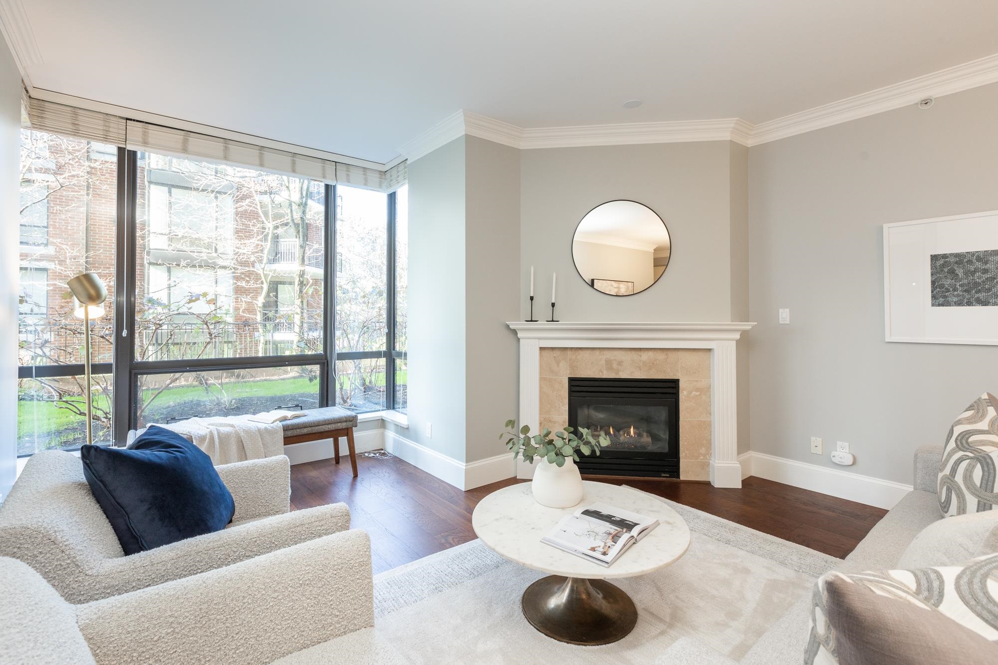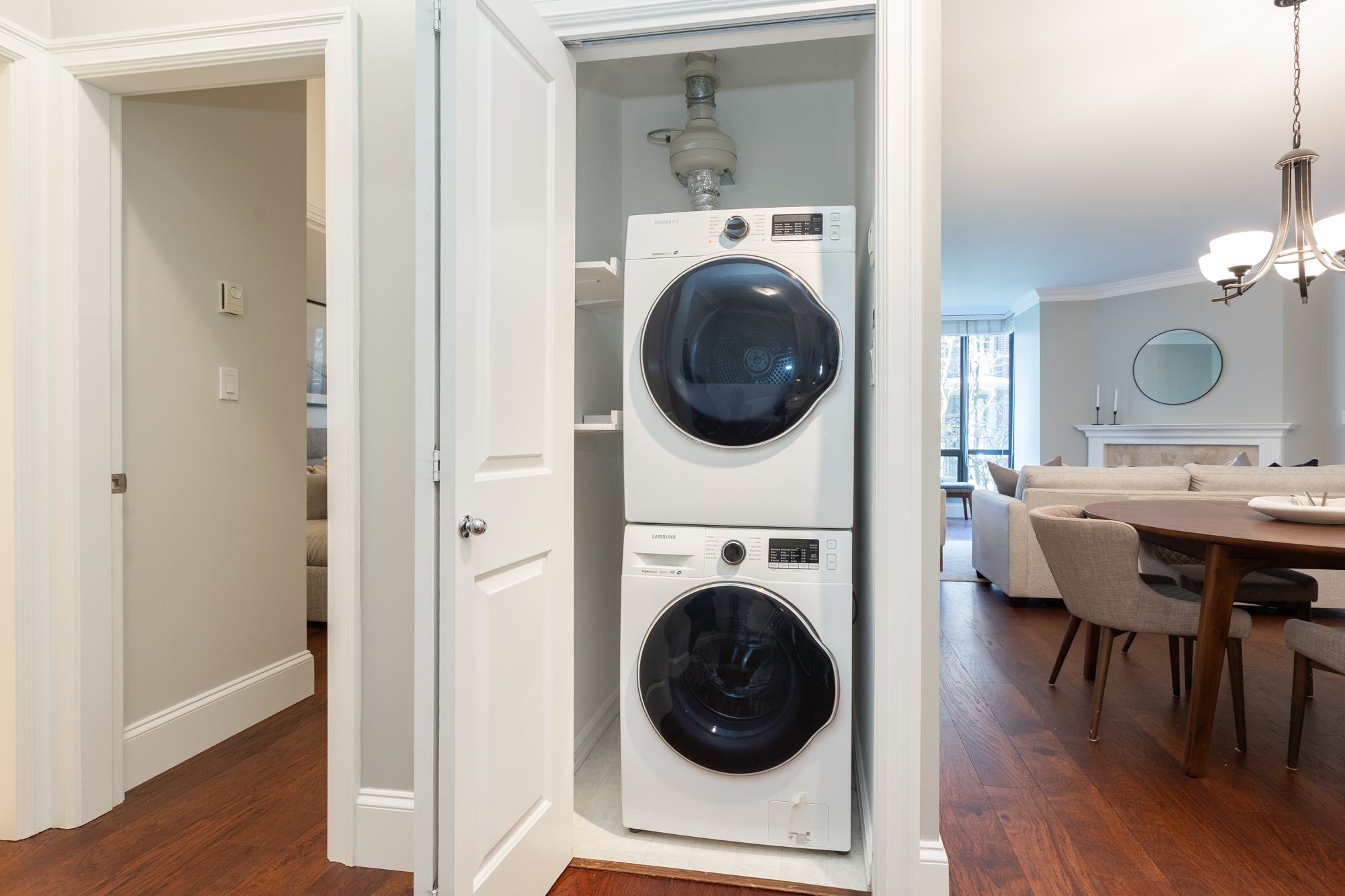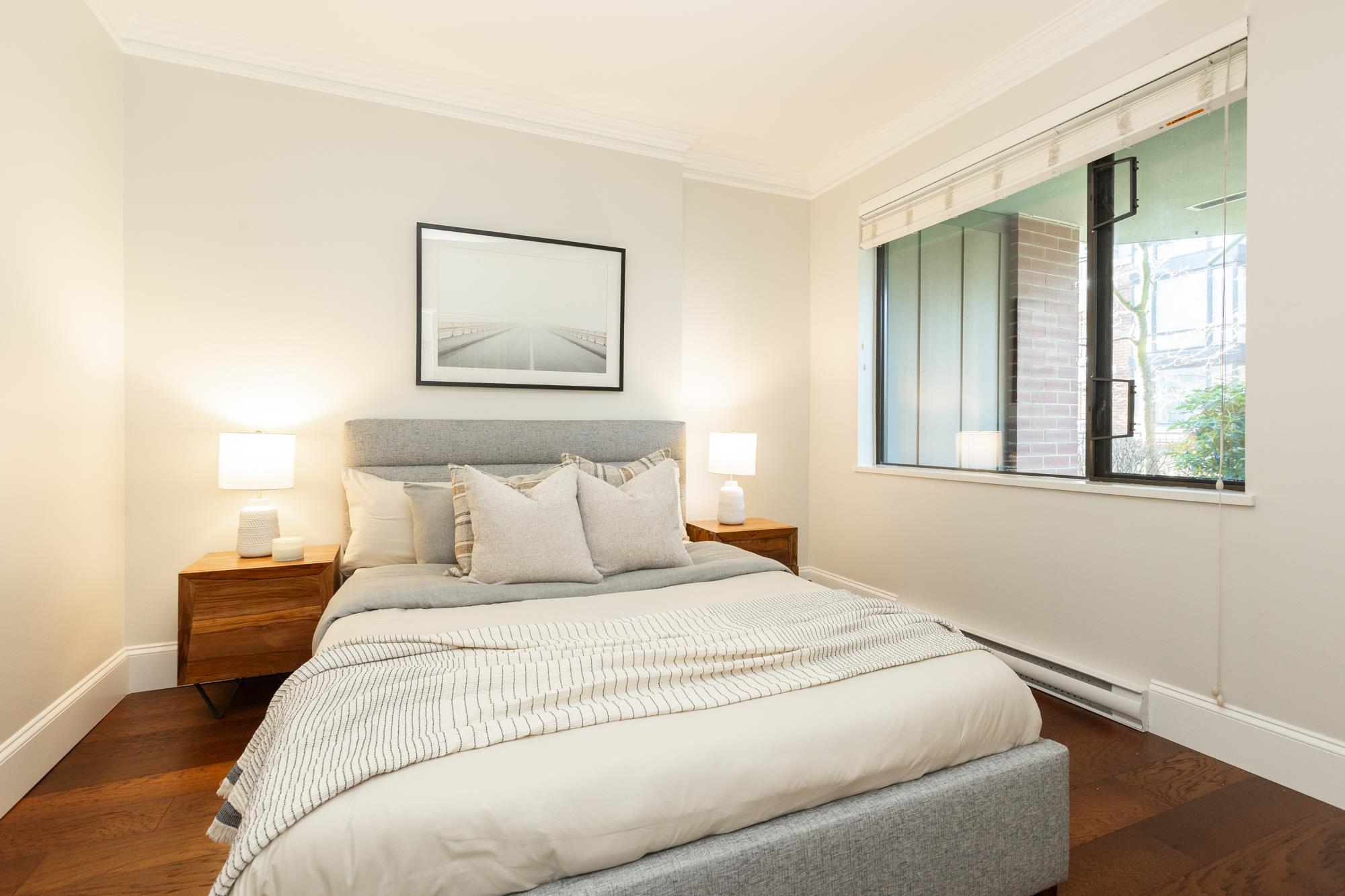 Welcome to Sussex House. This impeccably maintained and tastefully updated 2 bedroom + den, 2 bathroom residence offers 1,282 sq ft of refined living. The open-concept design features engineered hardwood floors, 9’ ceilings, and custom crown moulding throughout. A spacious in-suite storage room adds exceptional functionality. The primary suite boasts a beautifully designed walk-through closet with built-in cabinetry and a spa-inspired five-piece ensuite. Enjoy your private, BBQ-friendly patio surrounded by ...