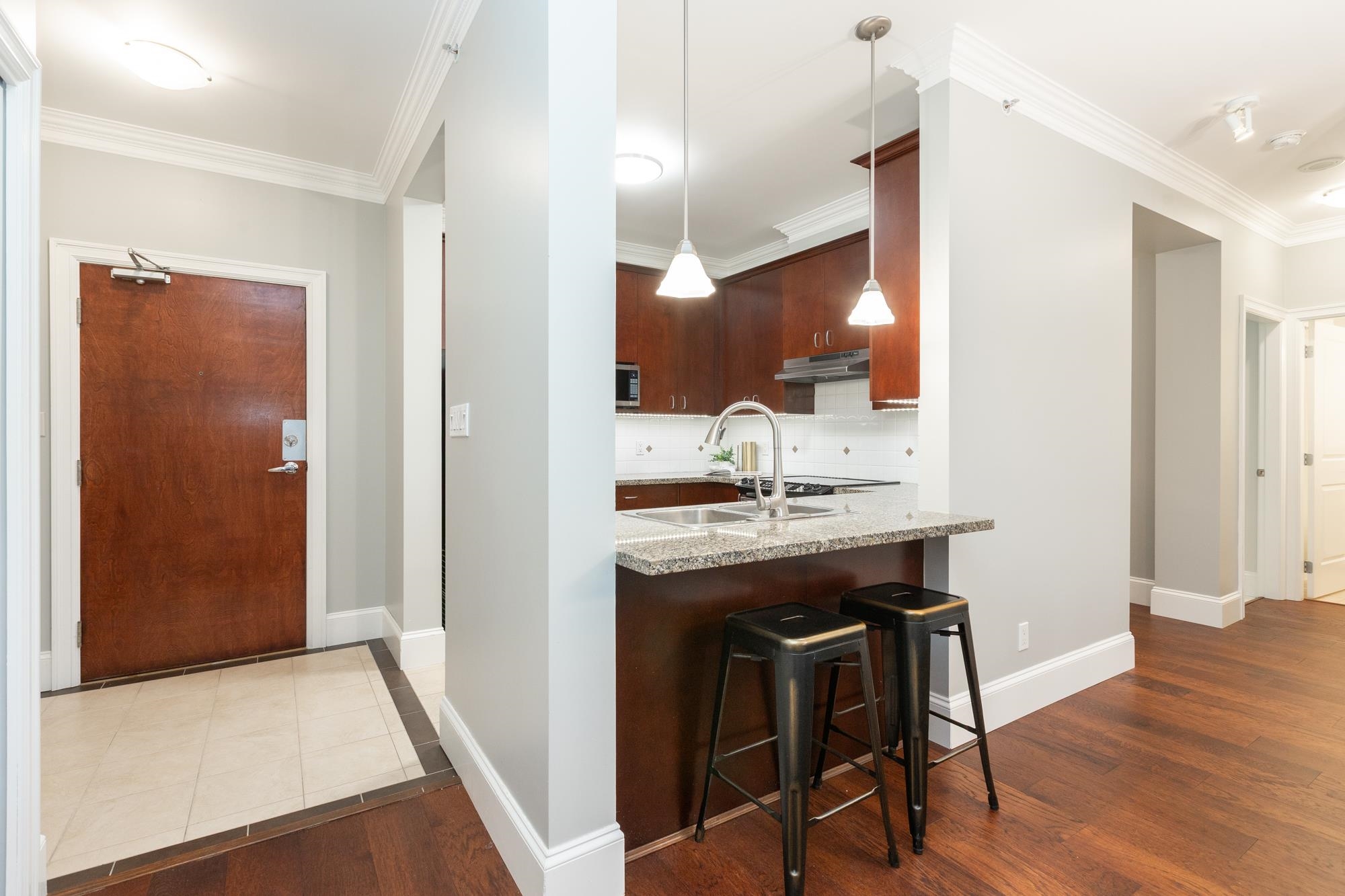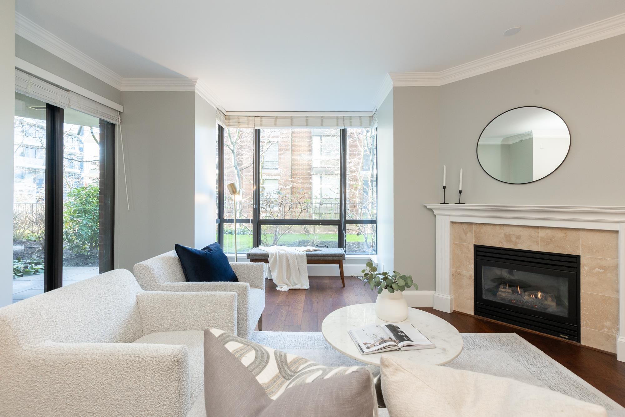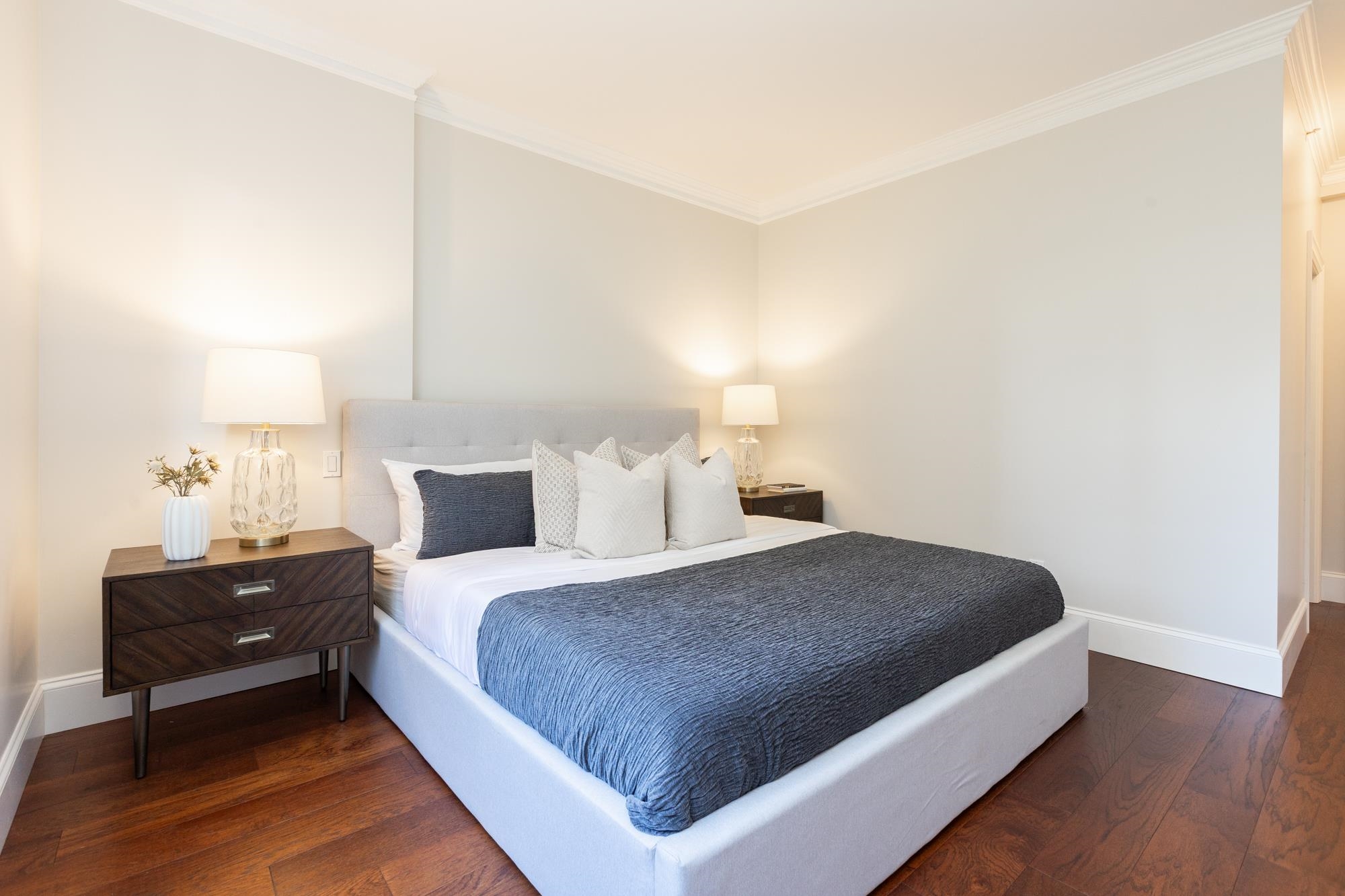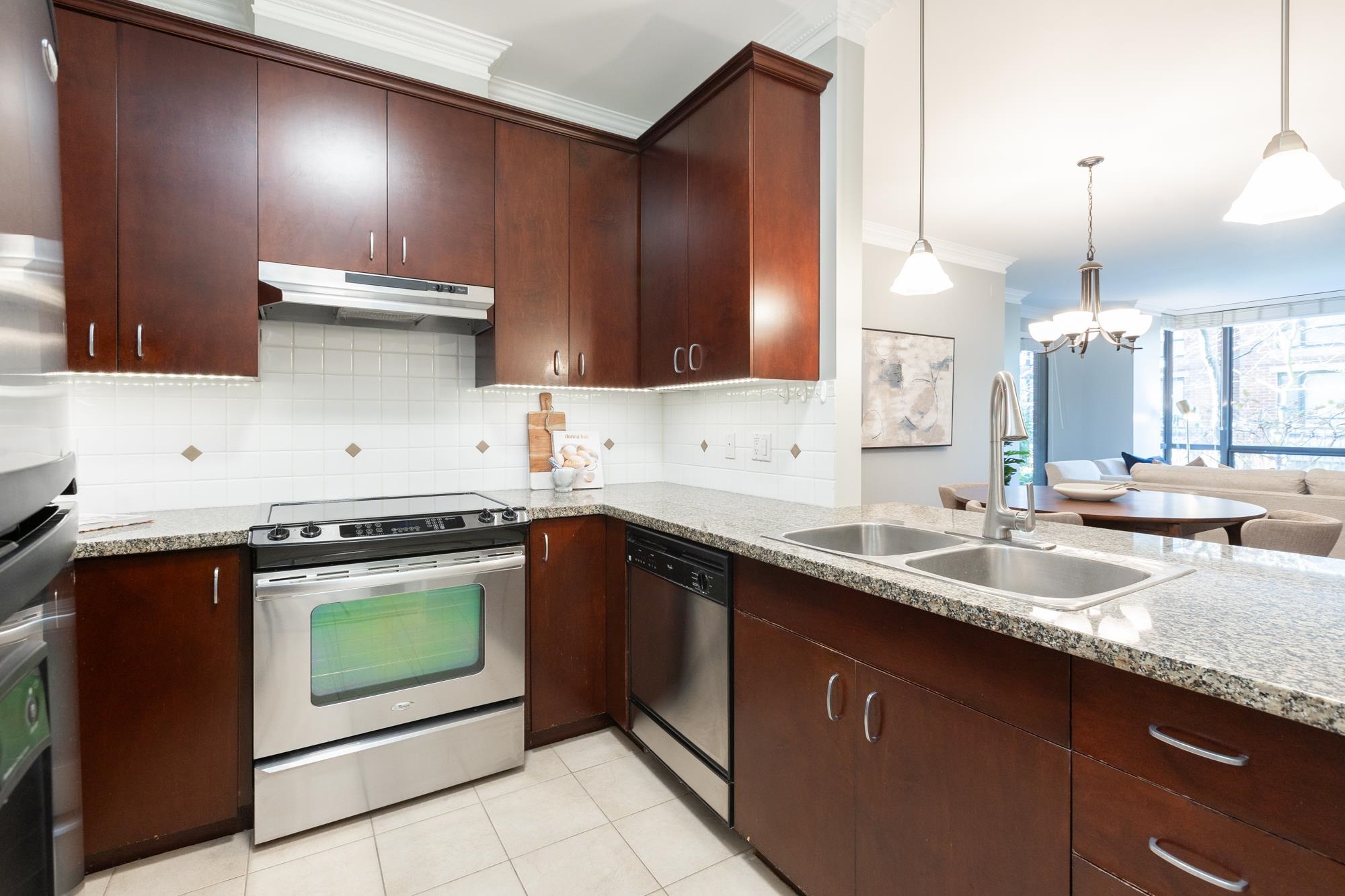 Welcome to Sussex House. This impeccably maintained and tastefully updated 2 bedroom + den, 2 bathroom residence offers 1,282 sq ft of refined living. The open-concept design features engineered hardwood floors, 9’ ceilings, and custom crown moulding throughout. A spacious in-suite storage room adds exceptional functionality. The primary suite boasts a beautifully designed walk-through closet with built-in cabinetry and a spa-inspired five-piece ensuite. Enjoy your private, BBQ-friendly patio surrounded by ...