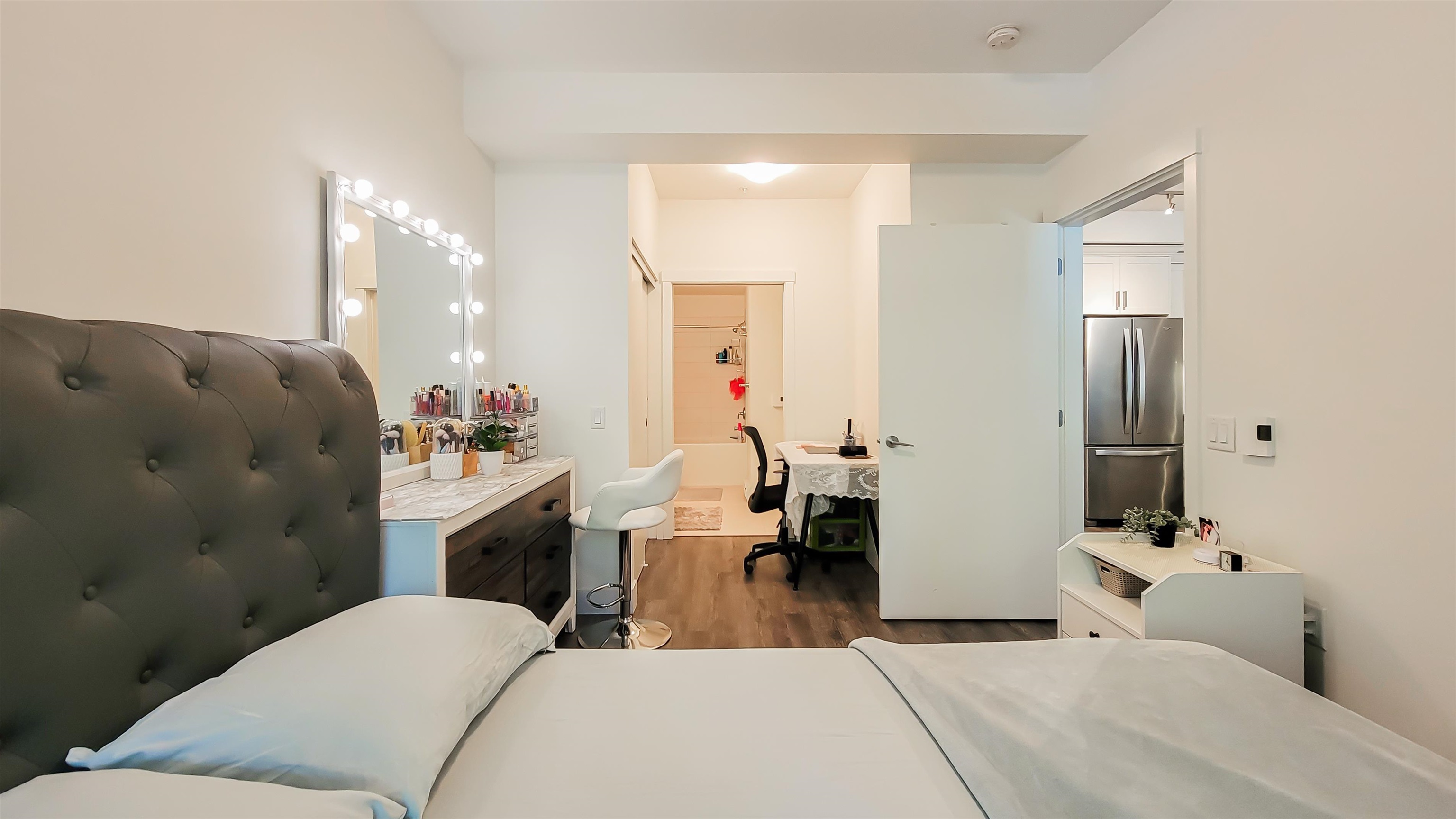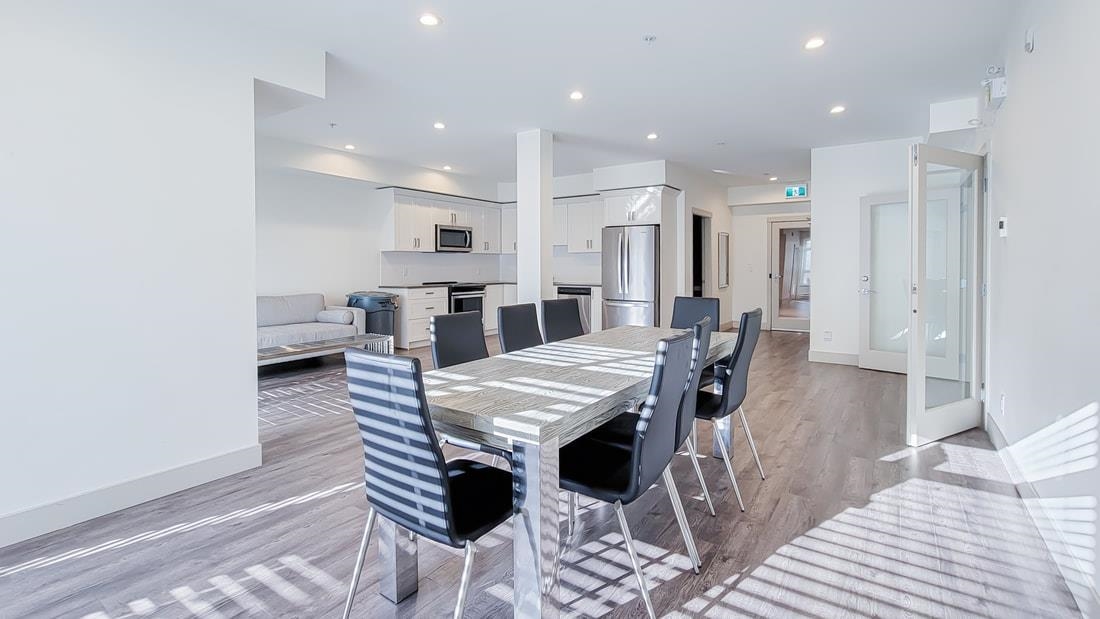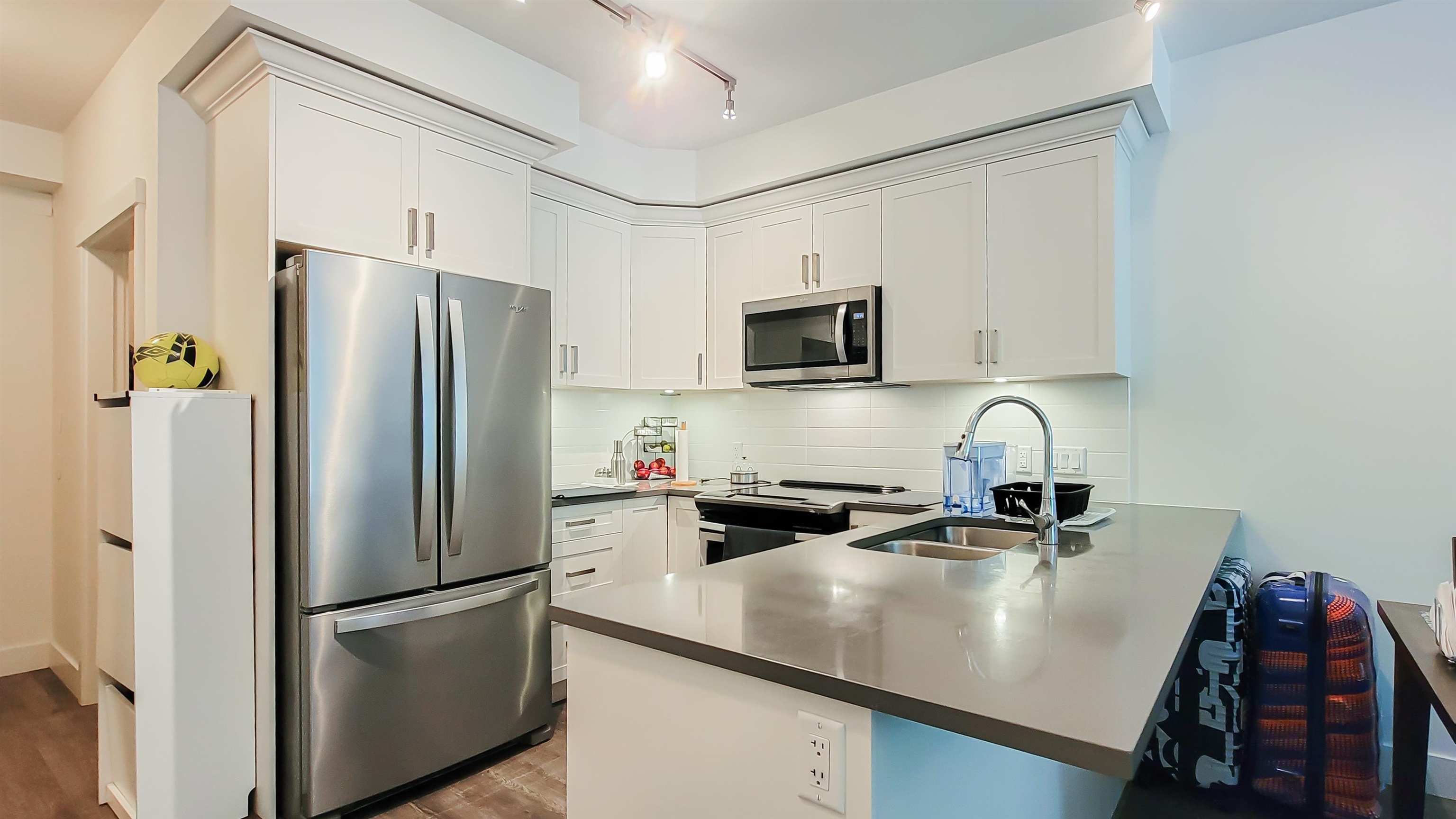 Welcome to LUMIERE, a NEWER DEVELOPMENT in the heart of Downtown Port Coquitlam!! Well laid out open concept 1 bedroom & den & 1 bathroom GROUND LEVEL unit!! Kitchen has quartz countertops, breakfast bar, stainless steel appliances & white shaker cabinetry w/under mounted lighting. Beautiful 12mm laminate flooring throughout with TJI silent floor system. 9' ceilings throughout for an open & airy feeling. Roughed In Central Vacuum, Smart Thermostat. Large 96sf covered PATIO for your entertaining. Close to tr...