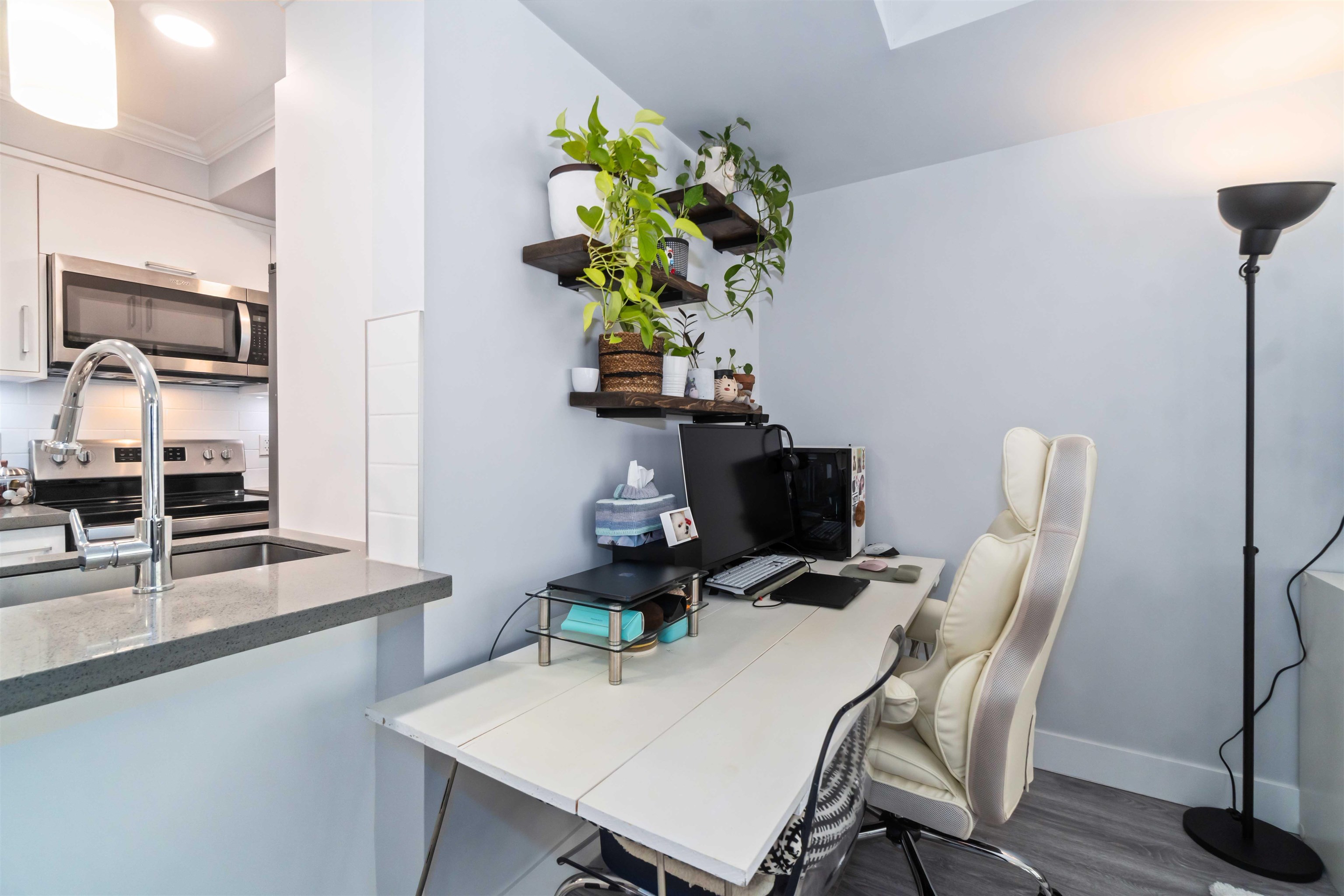Discover the best of urban living in this spacious ground-level corner unit with direct entry from the street and your own charming front yard. This beautifully maintained 1-bedroom plus bath features sleek quartz countertops, modern laminate floors, and an abundance of natural light throughout. With 1 parking space and a storage locker, this pet-friendly and rental-friendly home offers exceptional flexibility. Enjoy unbeatable convenience in the heart of Port Coquitlam—just steps from the historic downtown...