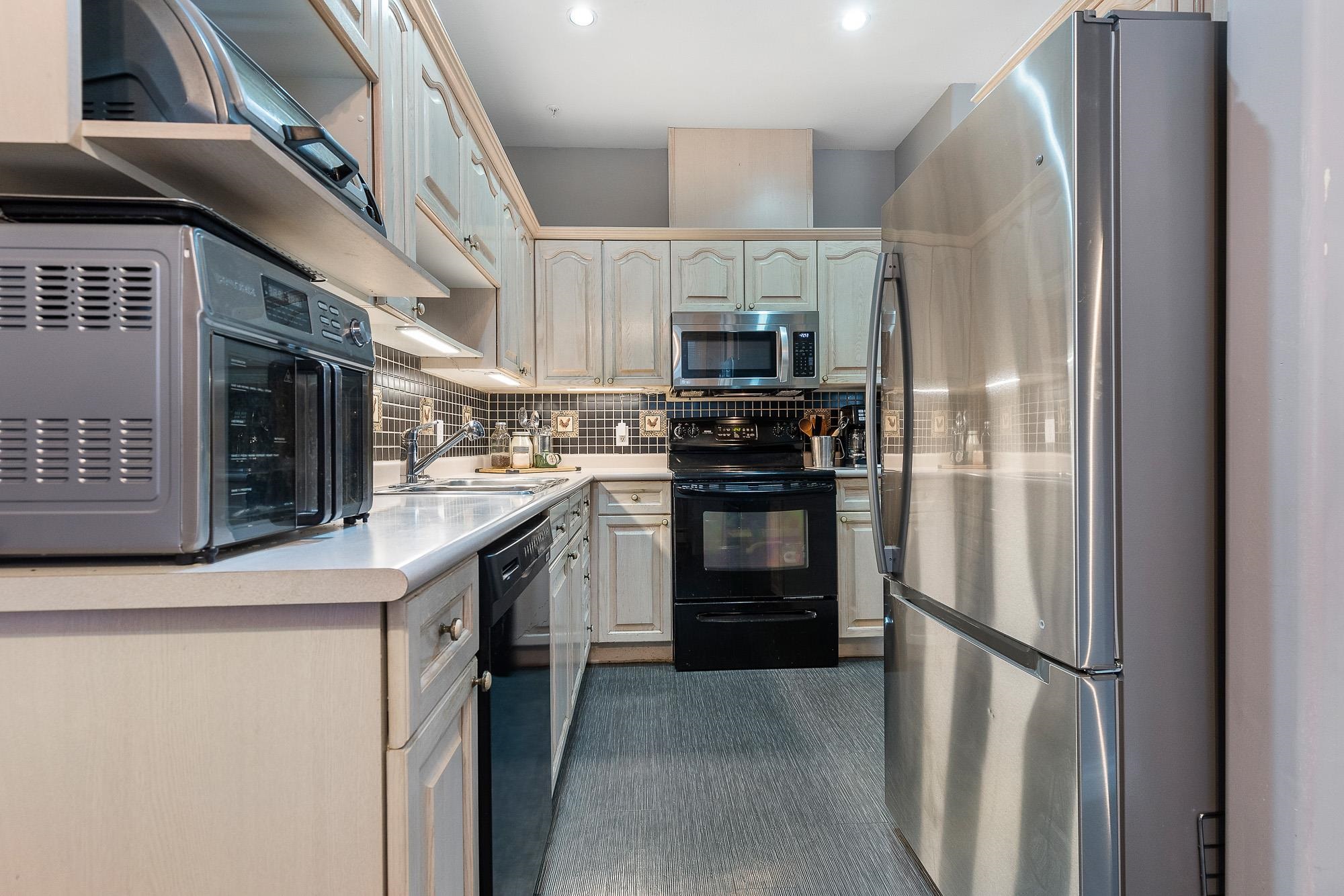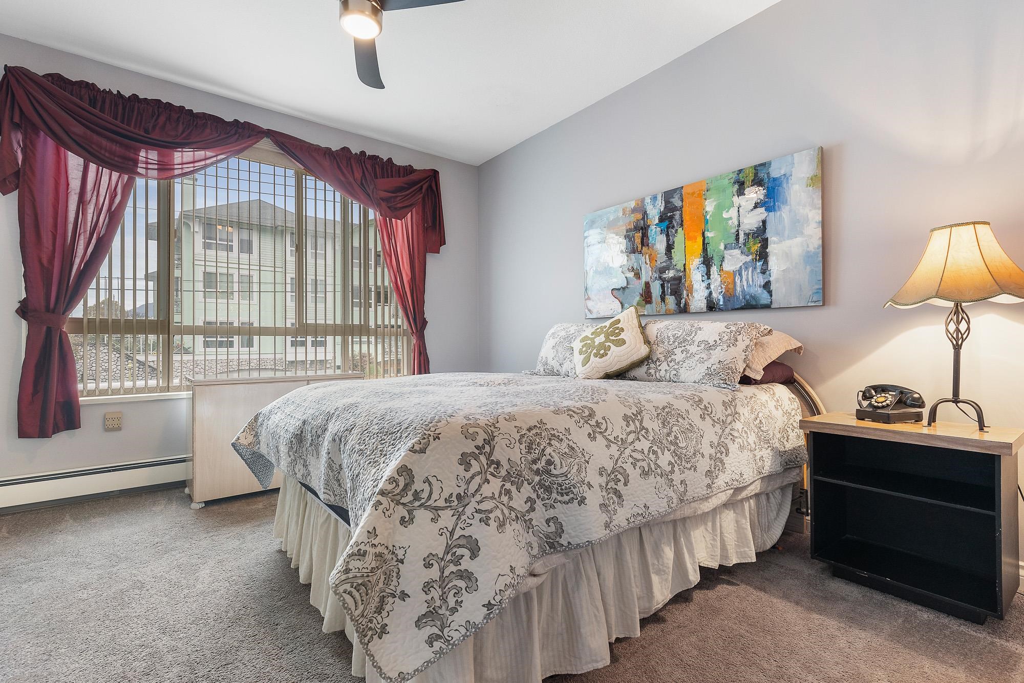 Arbour House in downtown Chilliwack offers an UNBEATABLE location for retirement living! Close to shopping, recreation, District 1881, doctors office's & the hospital, everything you need is within walking distance! This SPACIOUS nearly 1,300 sq.ft unit with 2 beds and 2 FULL baths is one of the BIGGEST units in the building. Some notable features are the updated laundry, bathrooms, carpets and kitchen w/SS fridge. The Master bedroom boasts a sizable w.i.c. & ENSUITE for comfort & ease. Unwind on your ENCLO...