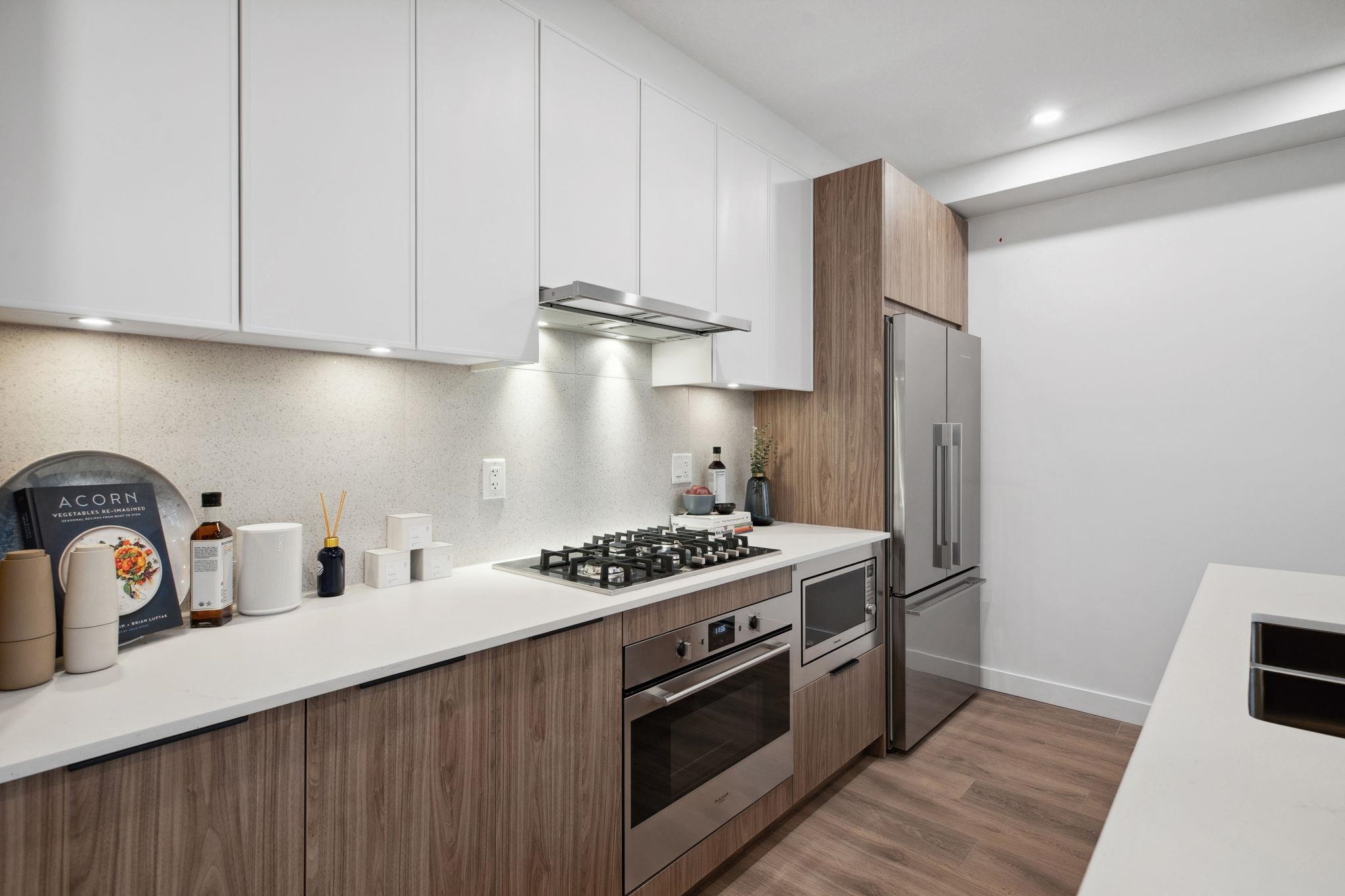 Welcome home to Dwell by Anthem. Located in a peaceful, family-oriented neighbourhood an 8 mins walk to the Burquitlam Skytrain, restaurants, shopping, parks, the new YMCA, and Mtn View Elementary School. Enjoy hosting gatherings with friends and family in your own club house and watch your children play in the playground. Step in from your very own front door! This spacious 708 sqft corner 1 Bed garden flat home with direct access to parking offers your dream kitchen with designer appliances and 36" fridge...