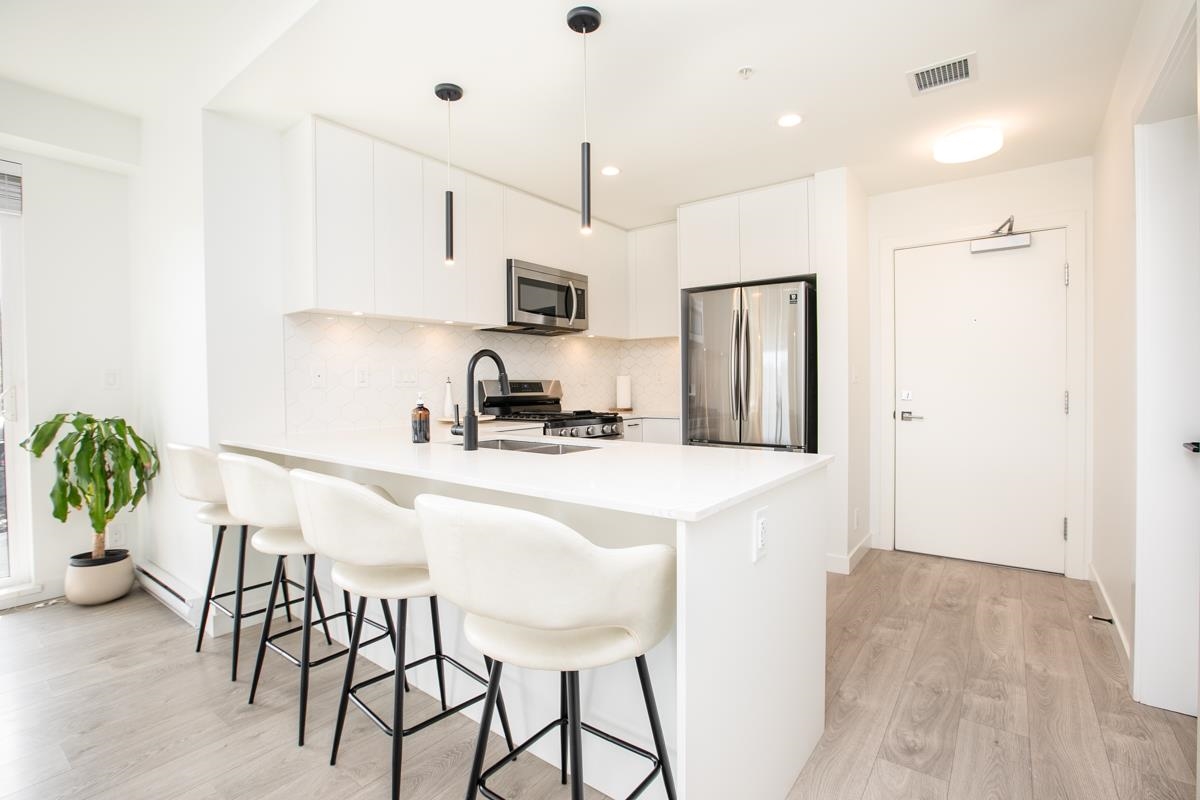 S/E Corner Unit at Latimer Heights, Freshly painted with almost 9 foot ceilings except the kitchen and bathrooms. 2 parking stalls 203 and 204, and 1 storage Locker #4 with 18 visitor parking stalls. This corner suite is very bright with easy access and no use for elevator. Across the street from Josette Dandurand Elem school and big open park. Lots of shops in the Latimer Village plus Sidebar Grill, Kai Japanese Rest, Pizza Garden, Bakery and grocery store. First Open House Sunday March 29 from 2-4 pm