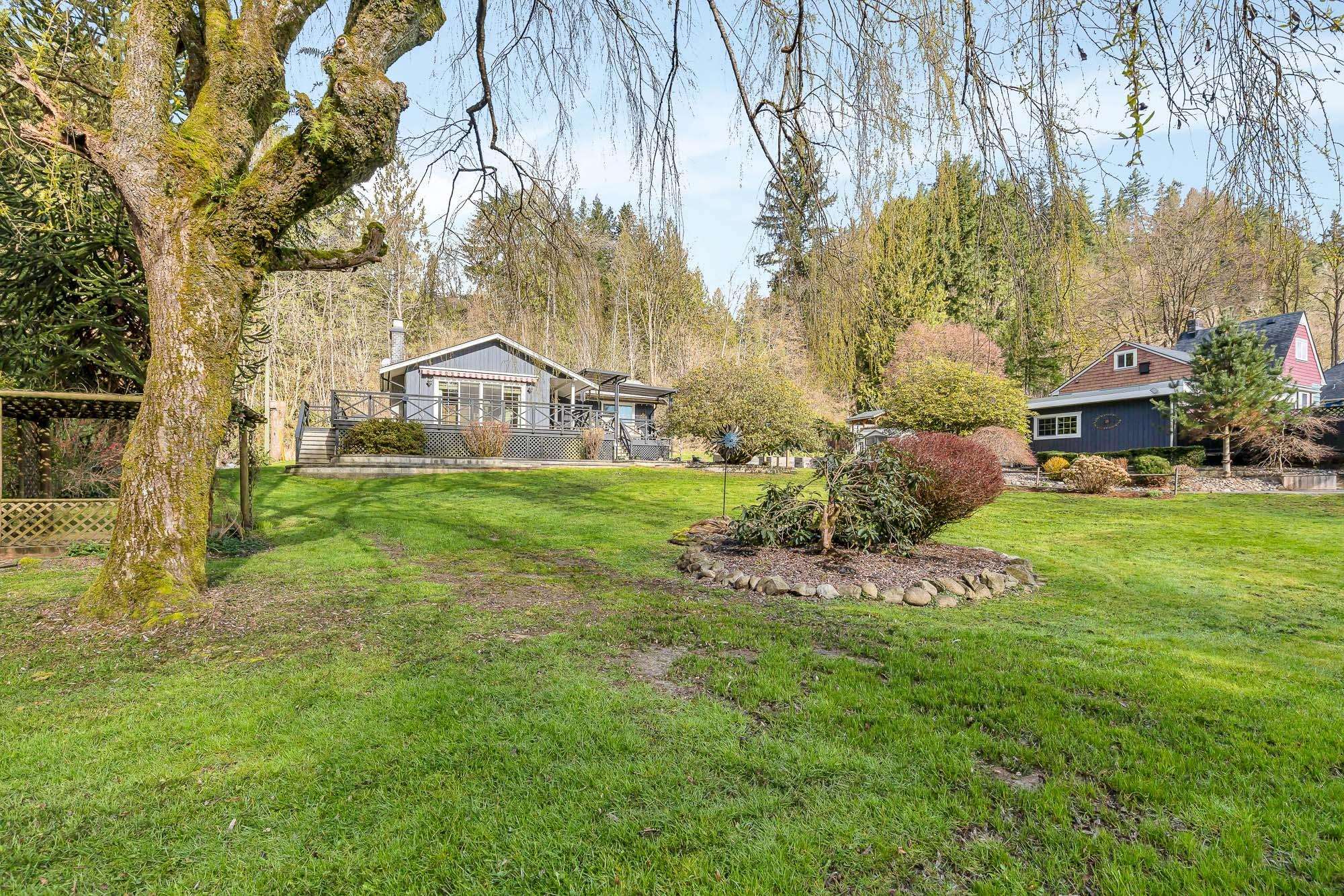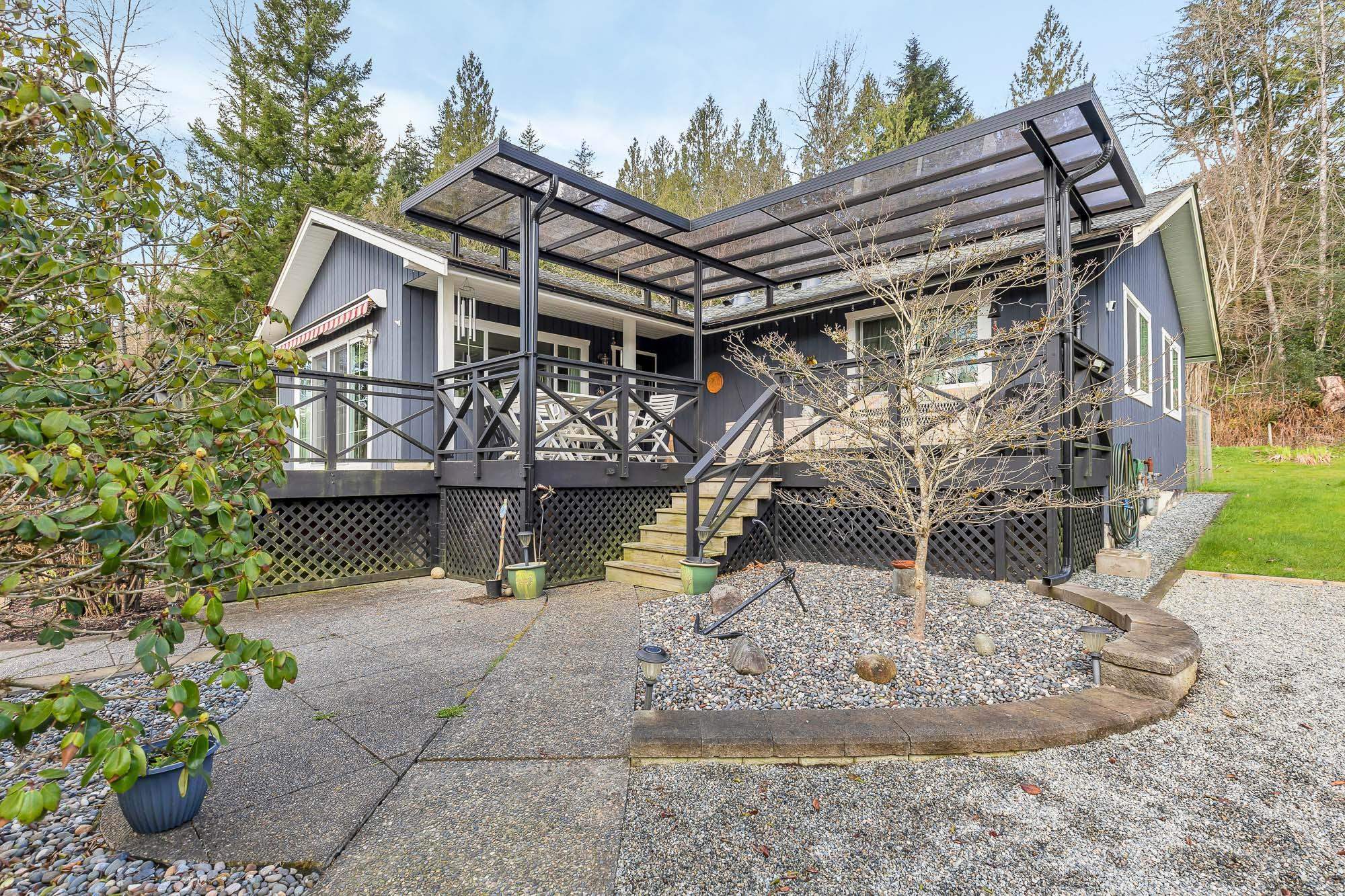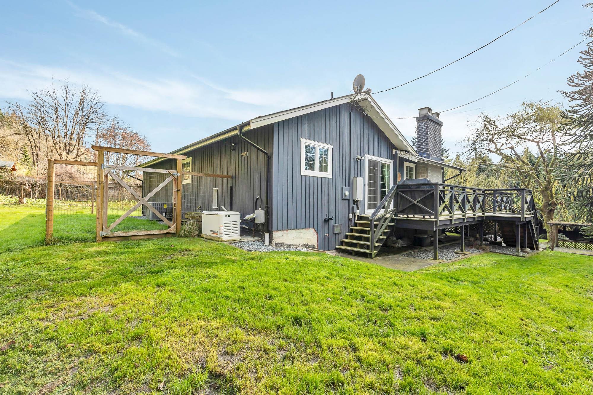 Escape to your private 1.05 ACRE sanctuary with CITY WATER in serene Stave Falls! This fully renovated RANCHER boasts a completely RENOVATED modern kitchen & bathrooms with heated floors & towel racks, three bedrooms, 2 baths & thoughtful upgrades throughout - roof, windows, A/C, high-efficiency furnace, on-demand hot water, gas fireplace & 22kw generator. Imagine mornings on your extensive 670 sq ft deck, listening to the gentle flow of your year-round fish-spawning creek, surrounded by trees & natural gre...