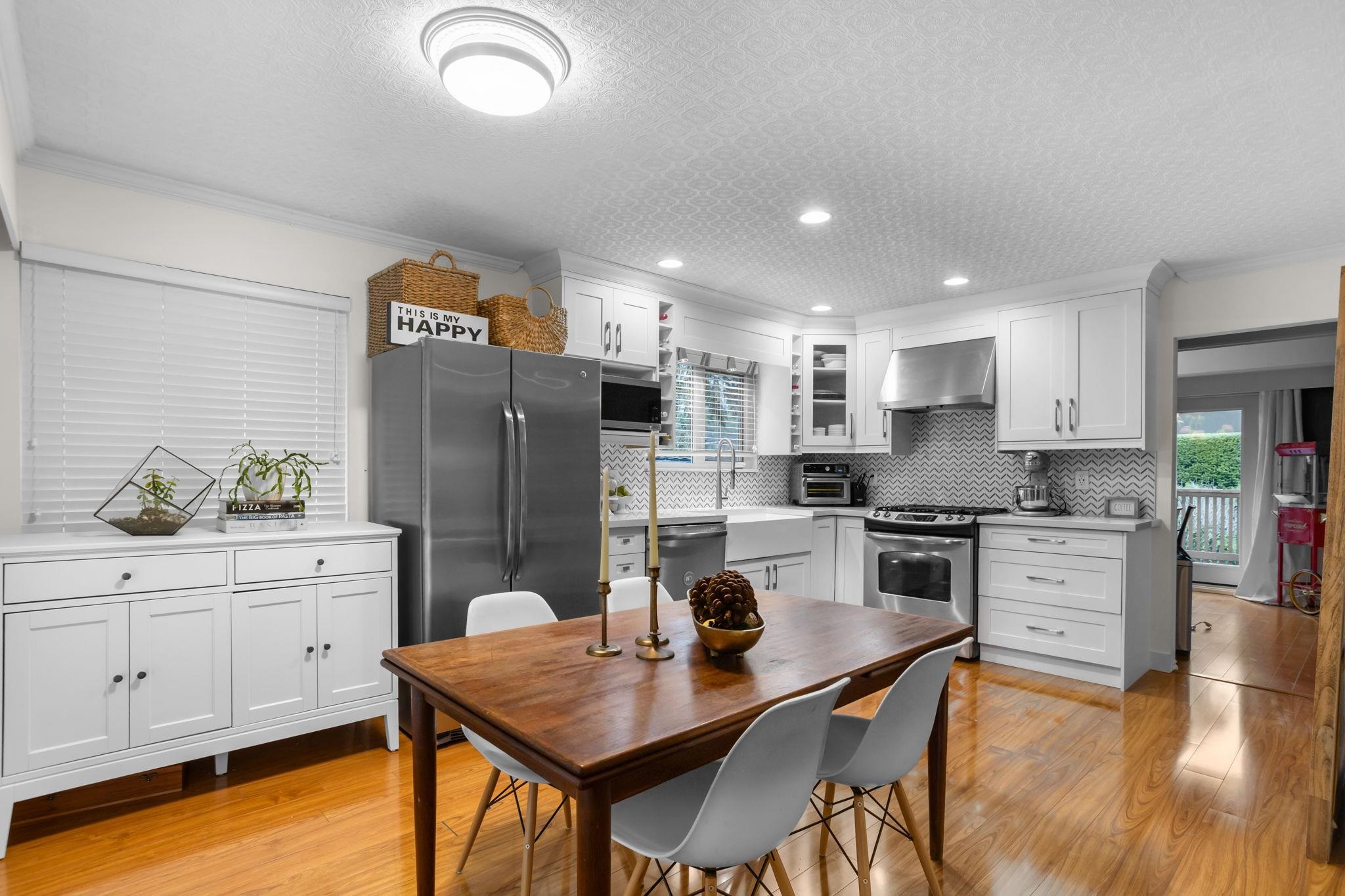 Welcome to this charming family home on a quiet street in the desirable Canterbury Heights neighbourhood of North Delta. The elegant white exterior and brick-paved driveway set the tone for this home’s upscale street presence. With ~2537 sqft of living space this home offers 4 bedrooms and 3 bathrooms. Bright living and dining areas flow nicely for everyday living and entertaining, while the lower level offers flexible space with a separate entry and convenient wet bar area. Updates include a metal roof, re...