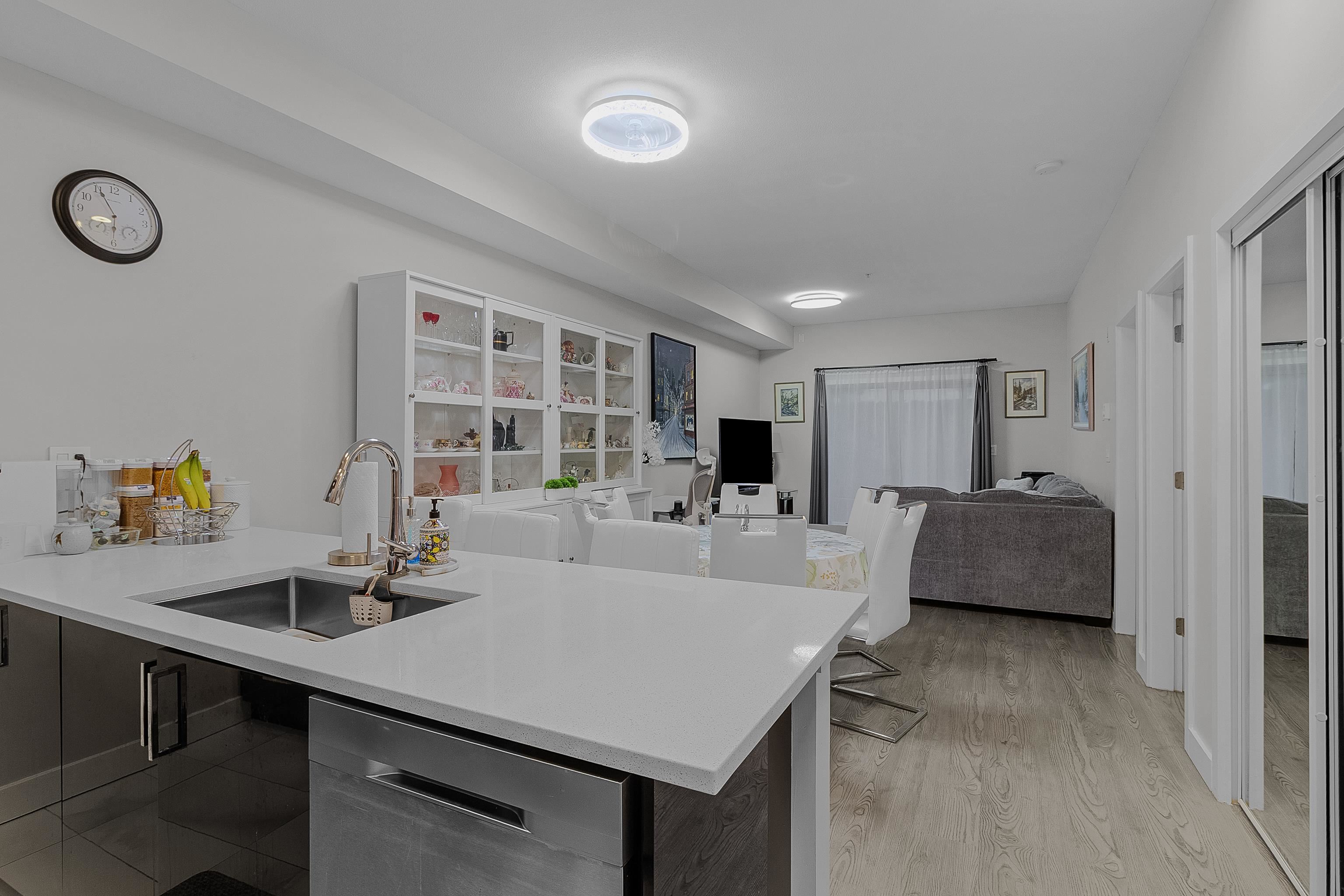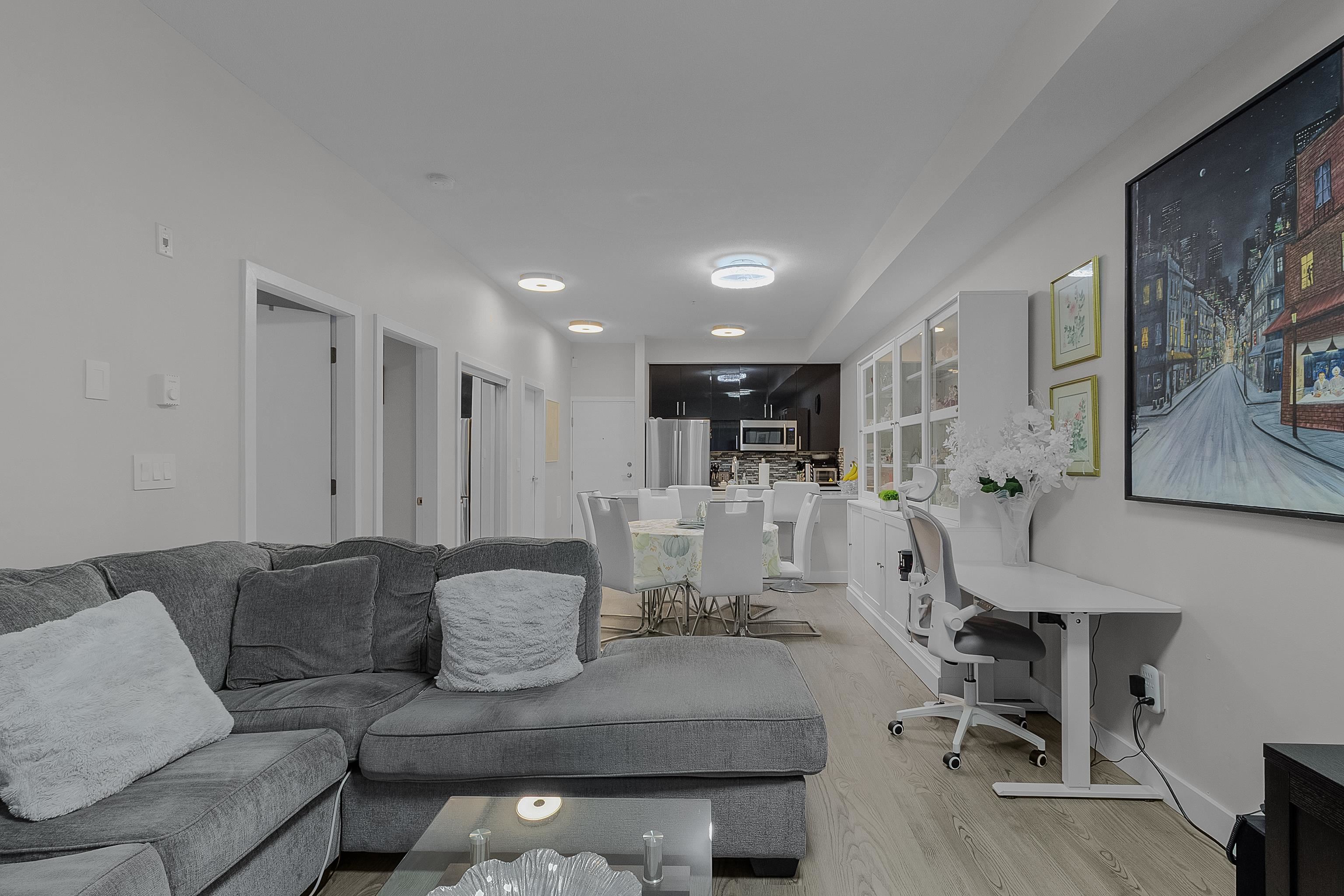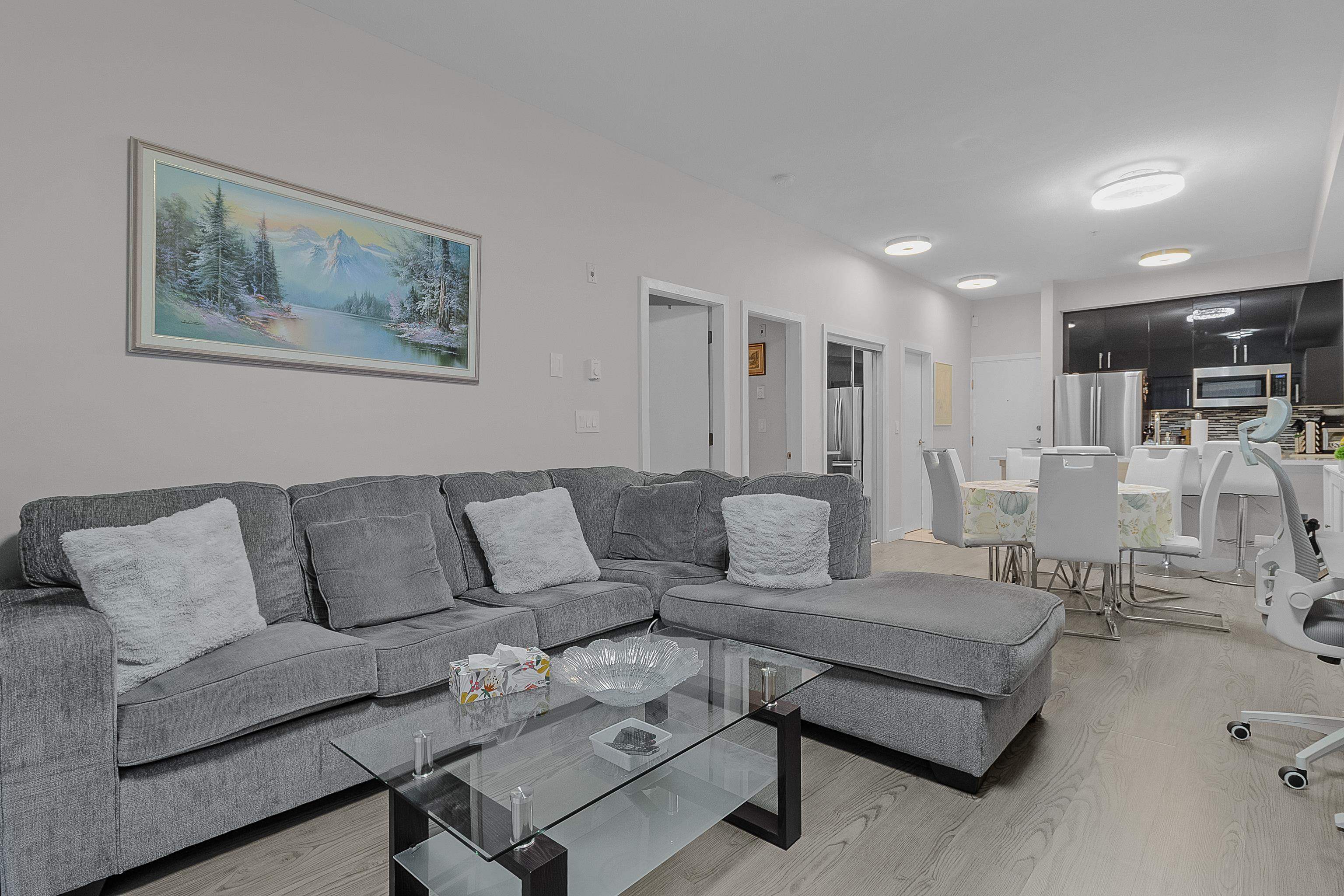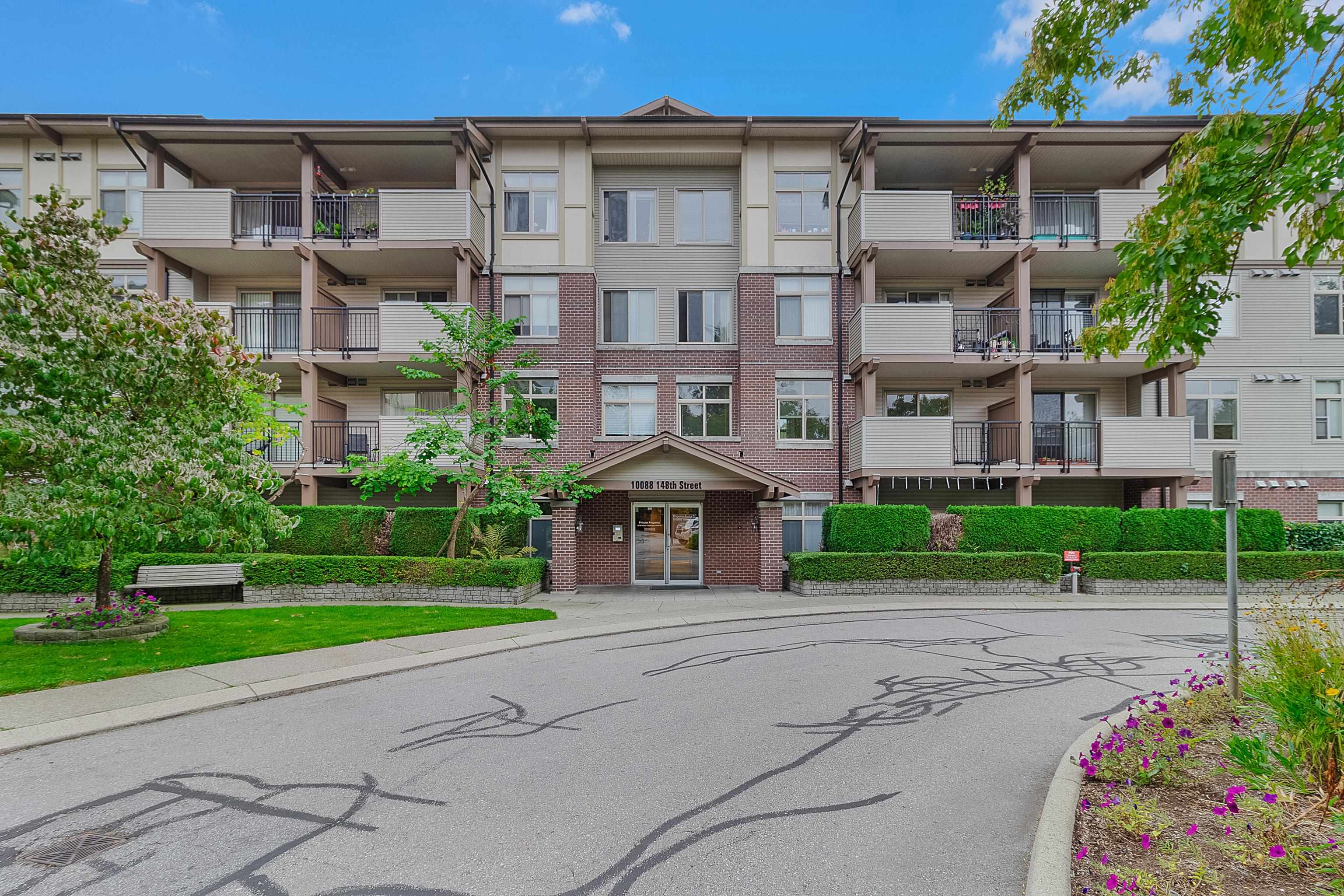 Spacious and updated condo in Guildford! Features a large deck, soaring 9'7 ceilings, a chef-inspired kitchen with quartz countertops and stainless steel appliances, bright open layout, large primary bedroom, a versatile den and 2 parking stalls. Conveniently located near Guildford Town Centre, transit, parks, restaurants, and quick Hwy 1 access. Move-in-ready and perfect for first-time buyers, downsizers, or investors!