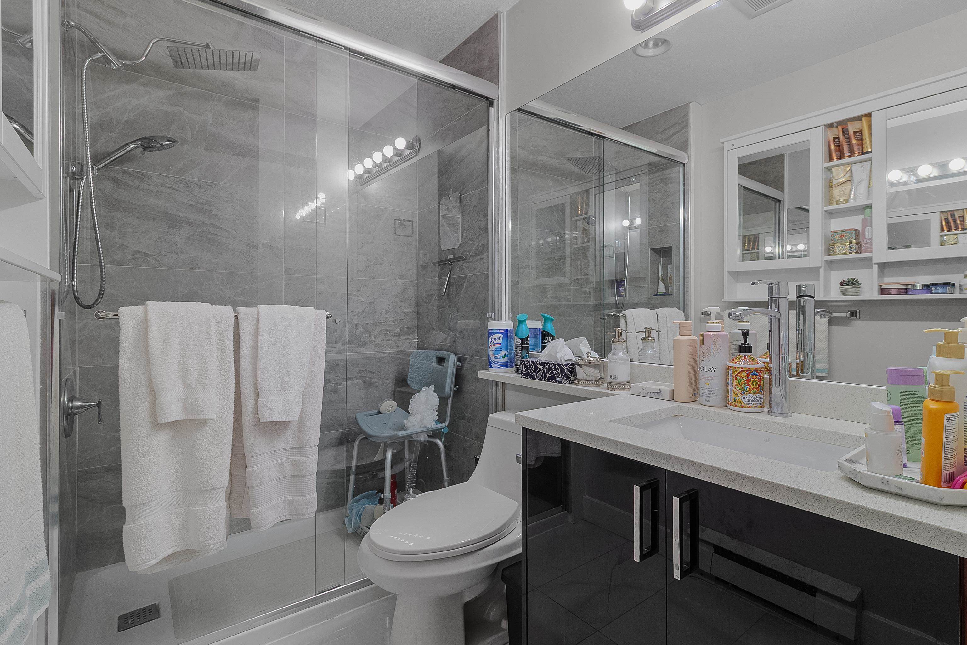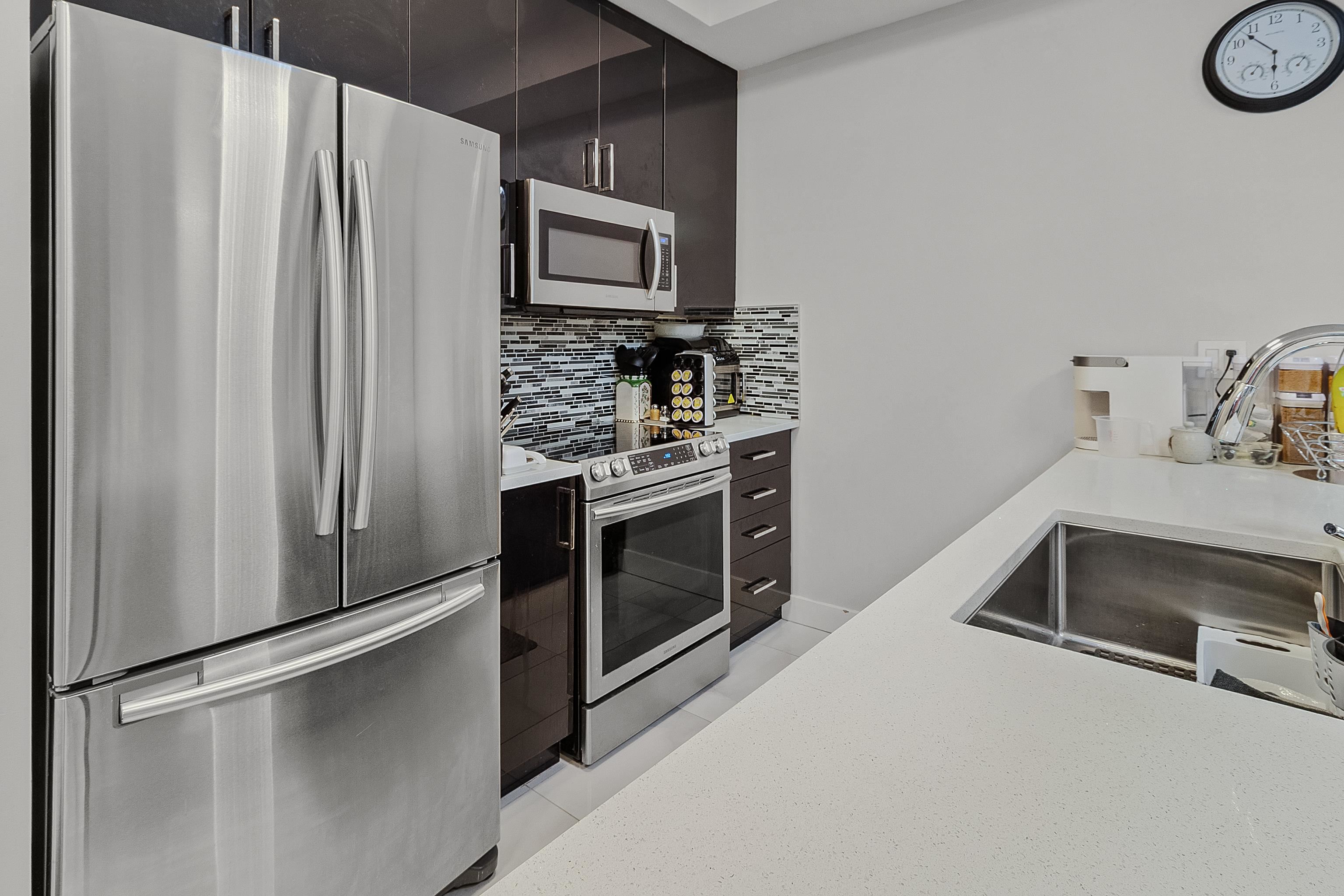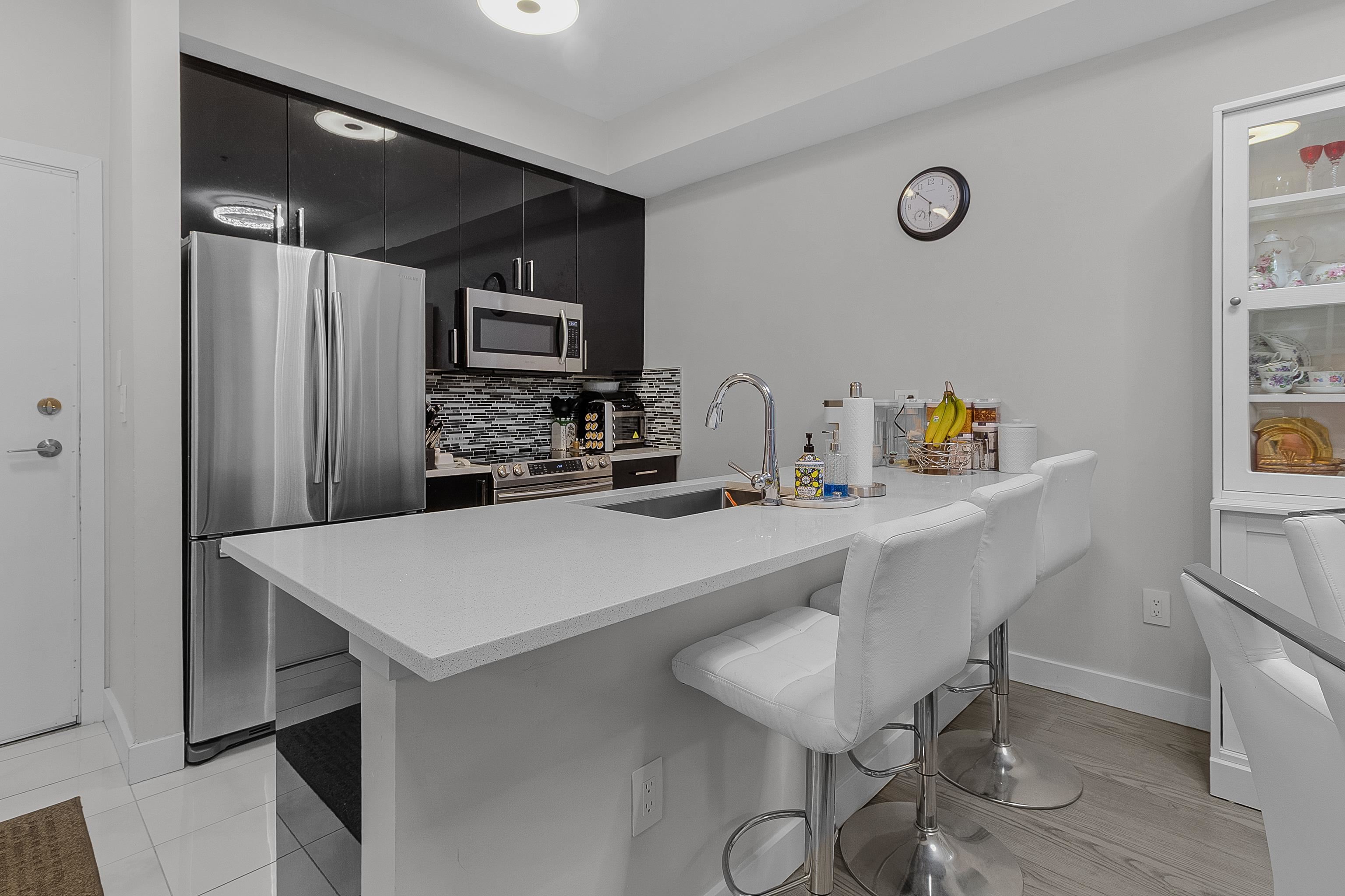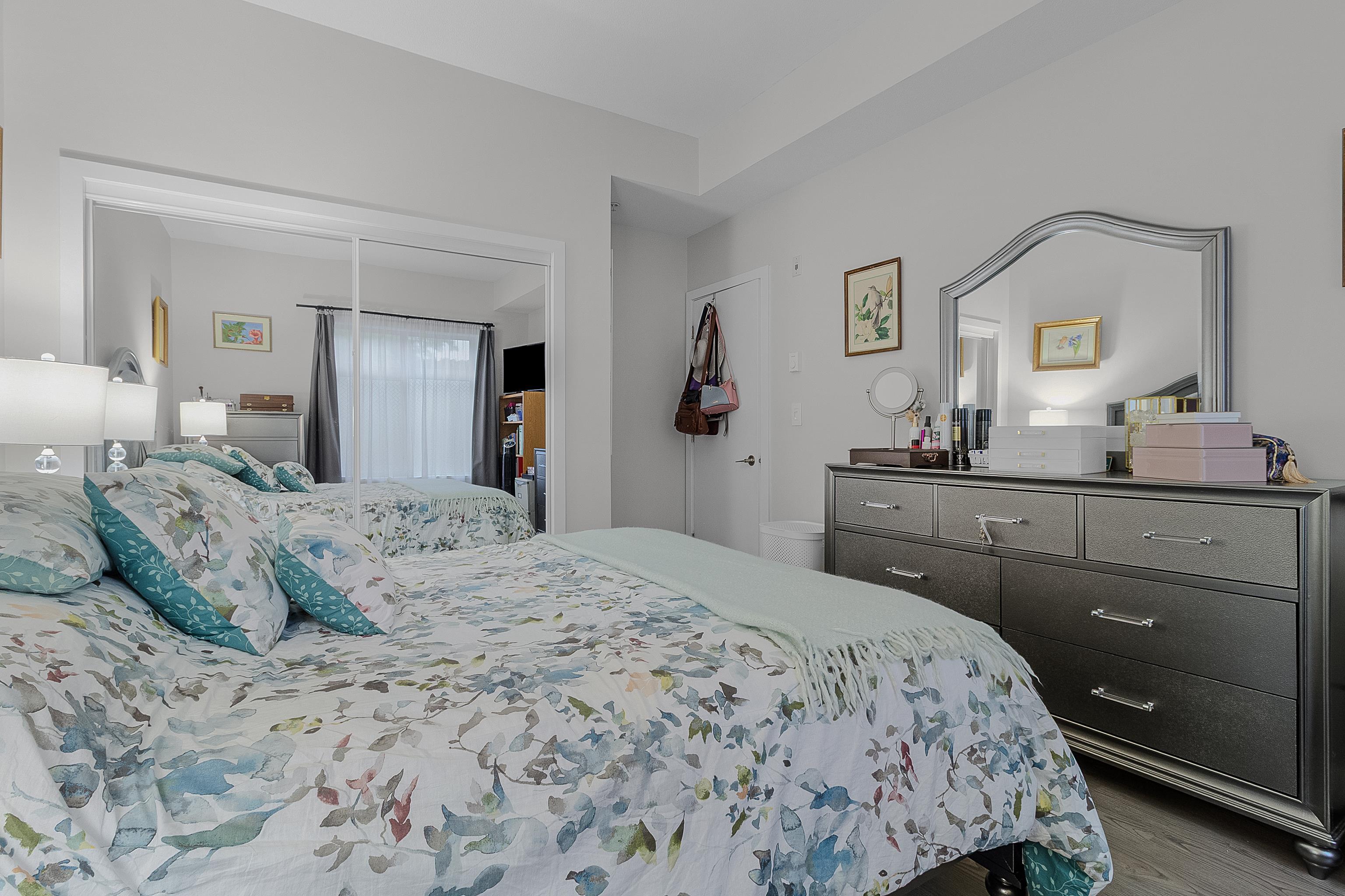 Spacious and updated condo in Guildford! Features a large deck, soaring 9'7 ceilings, a chef-inspired kitchen with quartz countertops and stainless steel appliances, bright open layout, large primary bedroom, a versatile den and 2 parking stalls. Conveniently located near Guildford Town Centre, transit, parks, restaurants, and quick Hwy 1 access. Move-in-ready and perfect for first-time buyers, downsizers, or investors!