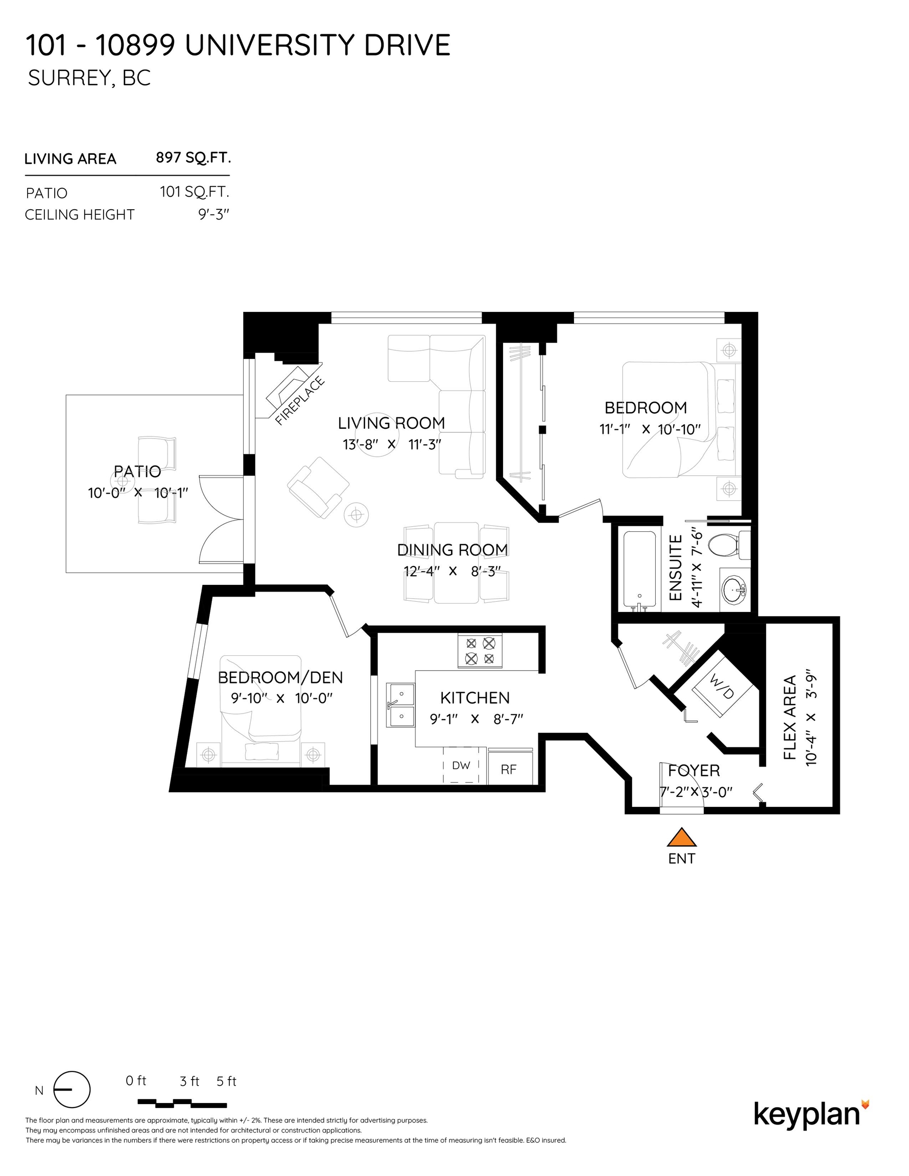ONE OF A KIND recently updated and painted ground-floor corner 1 bed + den home in a solid concrete building. The spacious den is large enough to be used as a second bedroom or home office. Inside, you’ll find new flooring, updated kitchen cabinets, oversized in-suite storage, and a private walk-out patio perfect for entertaining or relaxing. Building amenities include a clubhouse, fitness centre, sauna and hot tub. All in a super convenient location just steps to Gateway SkyTrain, shopping and Whalley Athl...