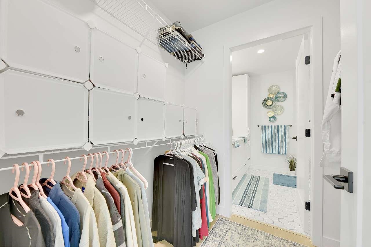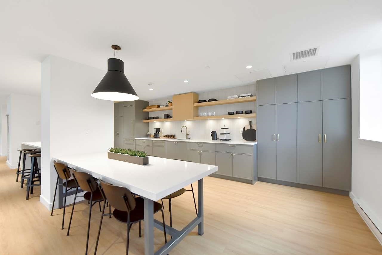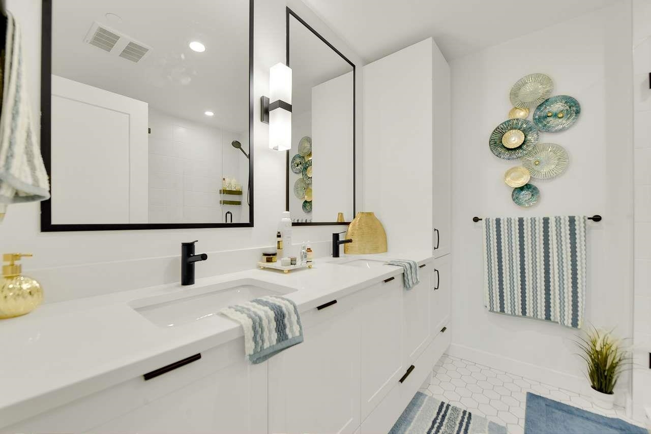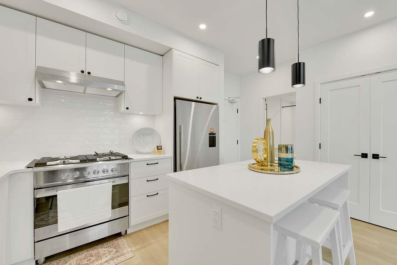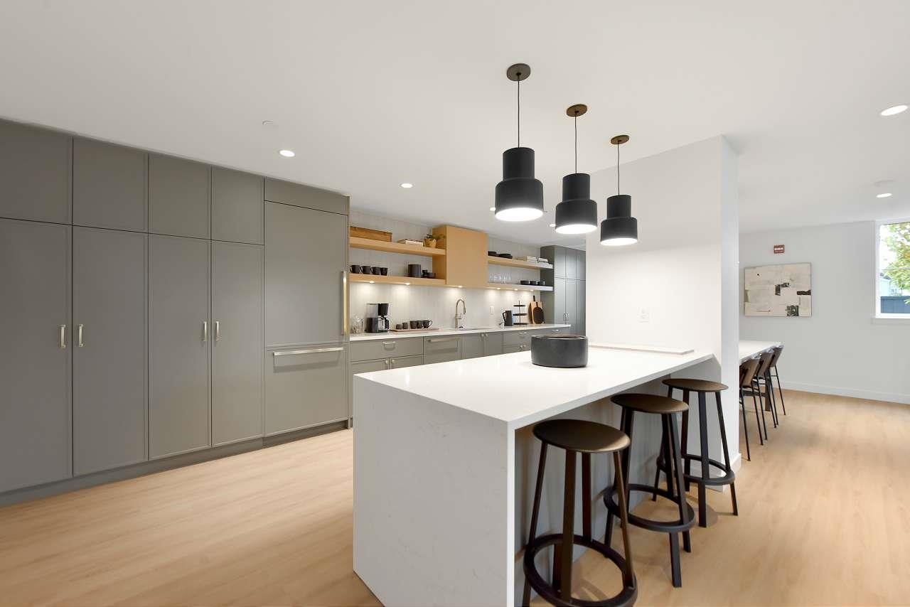Welcome to Holden Residences, 2-bed/2-bath , 900SQFT Home features an open concept with 9' ceilings. Situated on the ground, Both bedrooms with a walk-in closet and ensuite . Finishes include polished quartz countertops with full height tile backsplash, stainless steel kitchen appliances by Fisher & Paykel including an industrial-style gas range and double-drawer dishwasher. Offers rough-ins for A/C and a gas BBQ outlet on the deck. one parking stall, one storage locker .Roughed in for...A/C, future EV Char...
