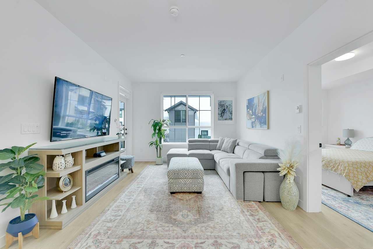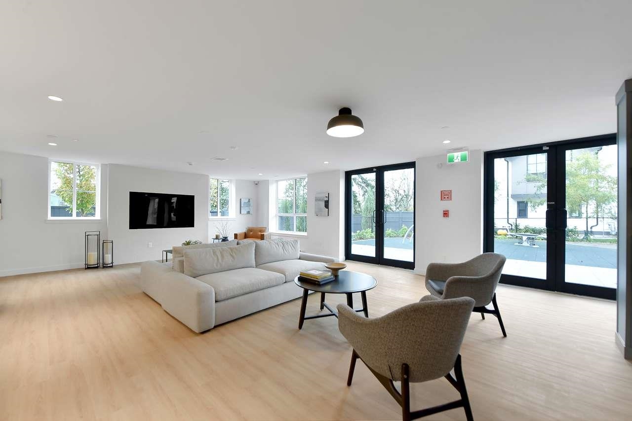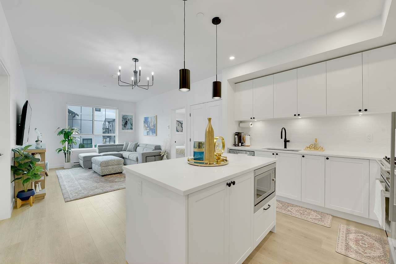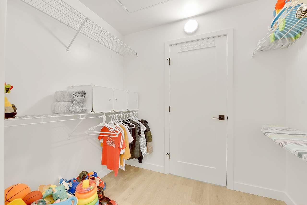 Welcome to Holden Residences, 2-bed/2-bath , 900SQFT Home features an open concept with 9' ceilings. Situated on the ground, Both bedrooms with a walk-in closet and ensuite . Finishes include polished quartz countertops with full height tile backsplash, stainless steel kitchen appliances by Fisher & Paykel including an industrial-style gas range and double-drawer dishwasher. Offers rough-ins for A/C and a gas BBQ outlet on the deck. one parking stall, one storage locker .Roughed in for...A/C, future EV Char...