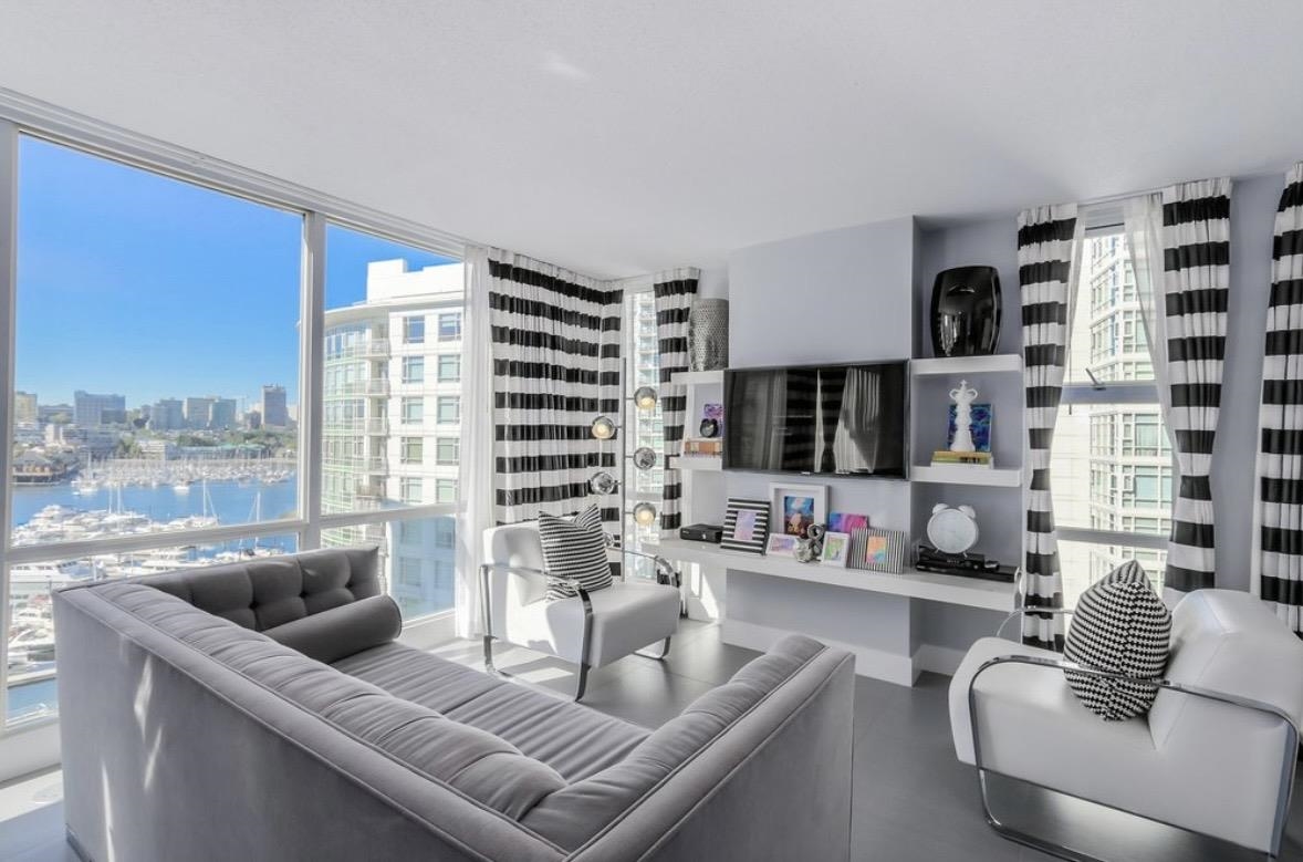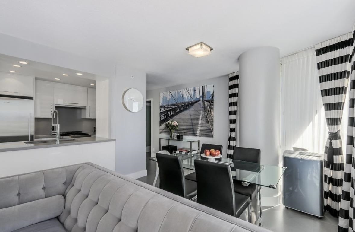 Fully furnished 2 bed + den, 2 bath waterfront residence at Marinaside in the heart of Yaletown. This bright 1,050 sq ft home features an open-concept layout, large windows, and a private balcony with marina and city views. The gourmet kitchen offers a full appliance package and the suite includes in-suite laundry, portable A/C, and one secure underground parking stall. Well-maintained building with concierge, indoor pool, and fitness centre. Just steps to the Seawall, Urban Fare, SkyTrain, cafés, and Yalet...
