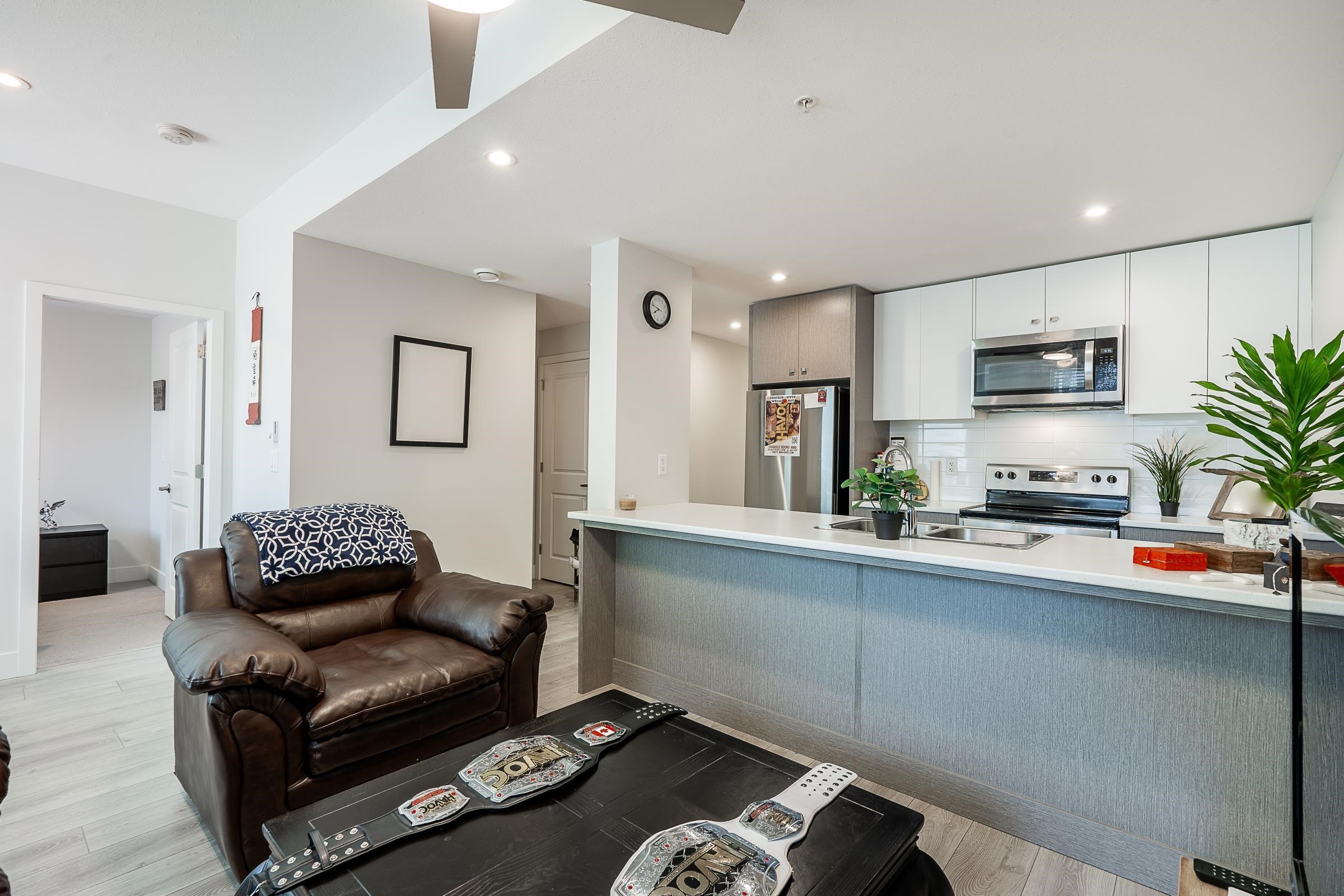 Modern ground-floor 1 bed, 1 bath condo offering a bright and spacious layout in a prime location. Just steps to public transit and the UFV campus, this home includes 1 parking stall and 1 storage locker. Large windows flood the space with natural light, while the generously sized bedroom features a walk-through closet with ample storage. The thoughtfully designed community provides green space ideal for pet walks and outdoor enjoyment. Situated in a quiet neighbourhood yet conveniently close to shopping, ...