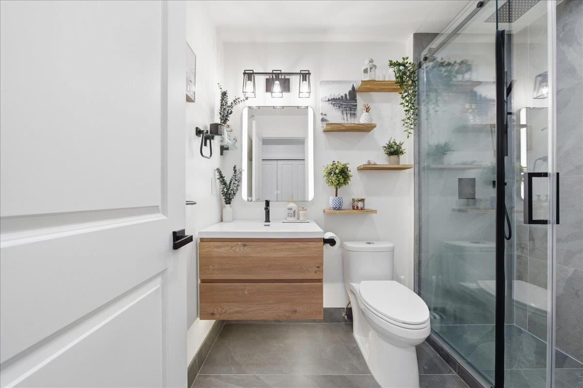 Step into this fully renovated 2025 home that offers the comfort and privacy of a townhouse-style layout with the convenience of condo living. Every detail has been thoughtfully upgraded, including new flooring, fresh paint, updated electrical and plumbing, and a stunning modern kitchen with quartz countertops, new cabinetry, under-cabinet lighting, and stainless-steel smart appliances. Both bathrooms are completely redone with spa-inspired finishes, heated floors, custom glass showers, and backlit mirror...