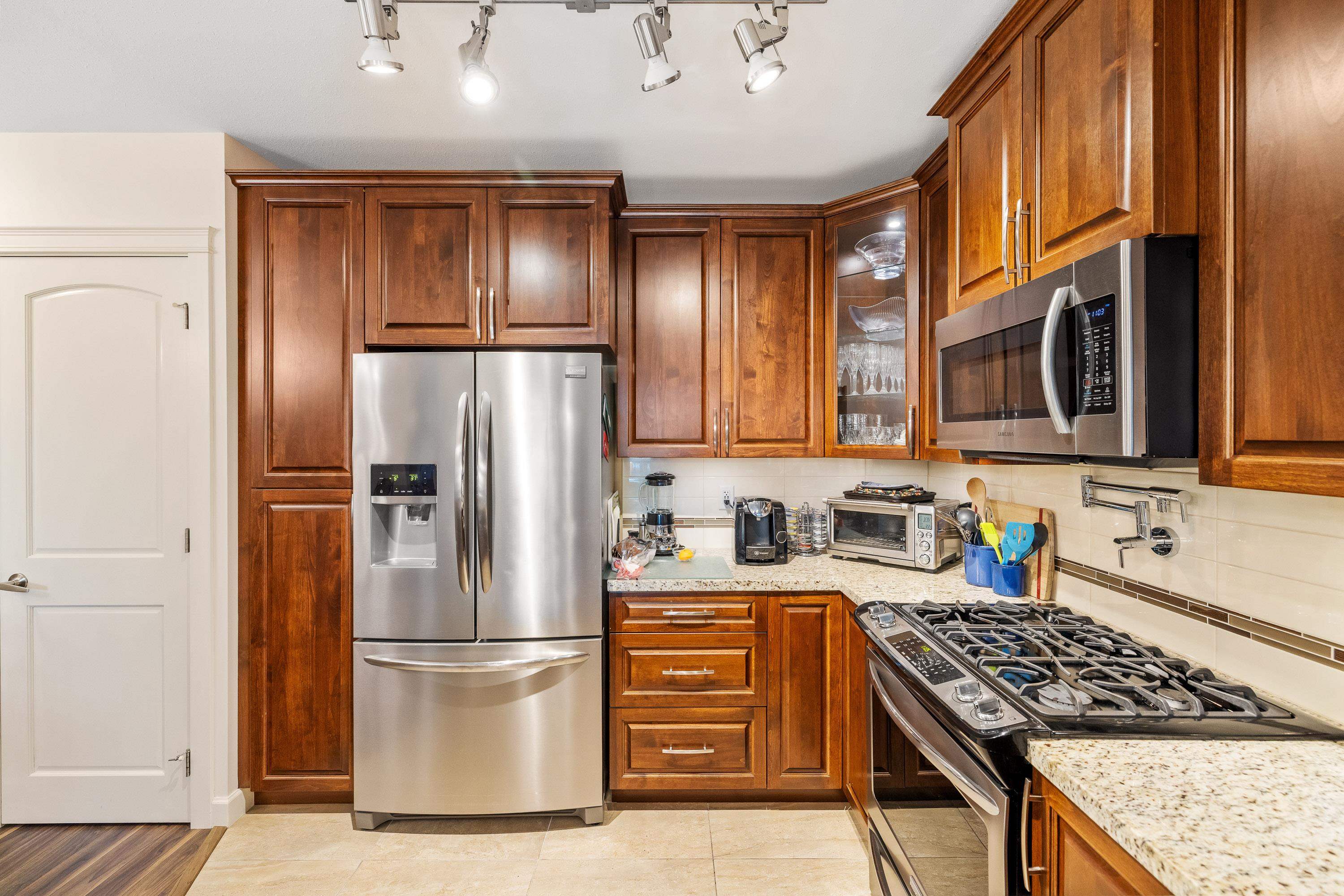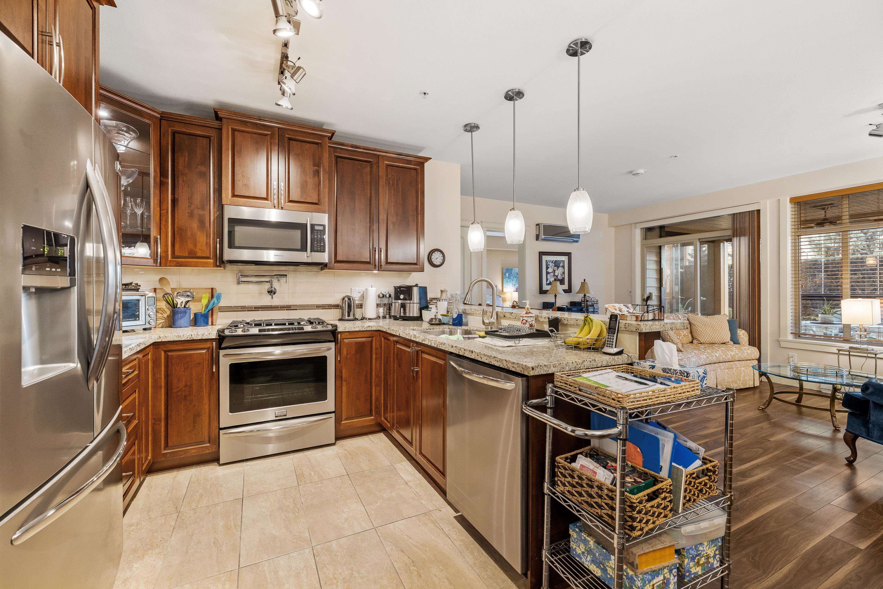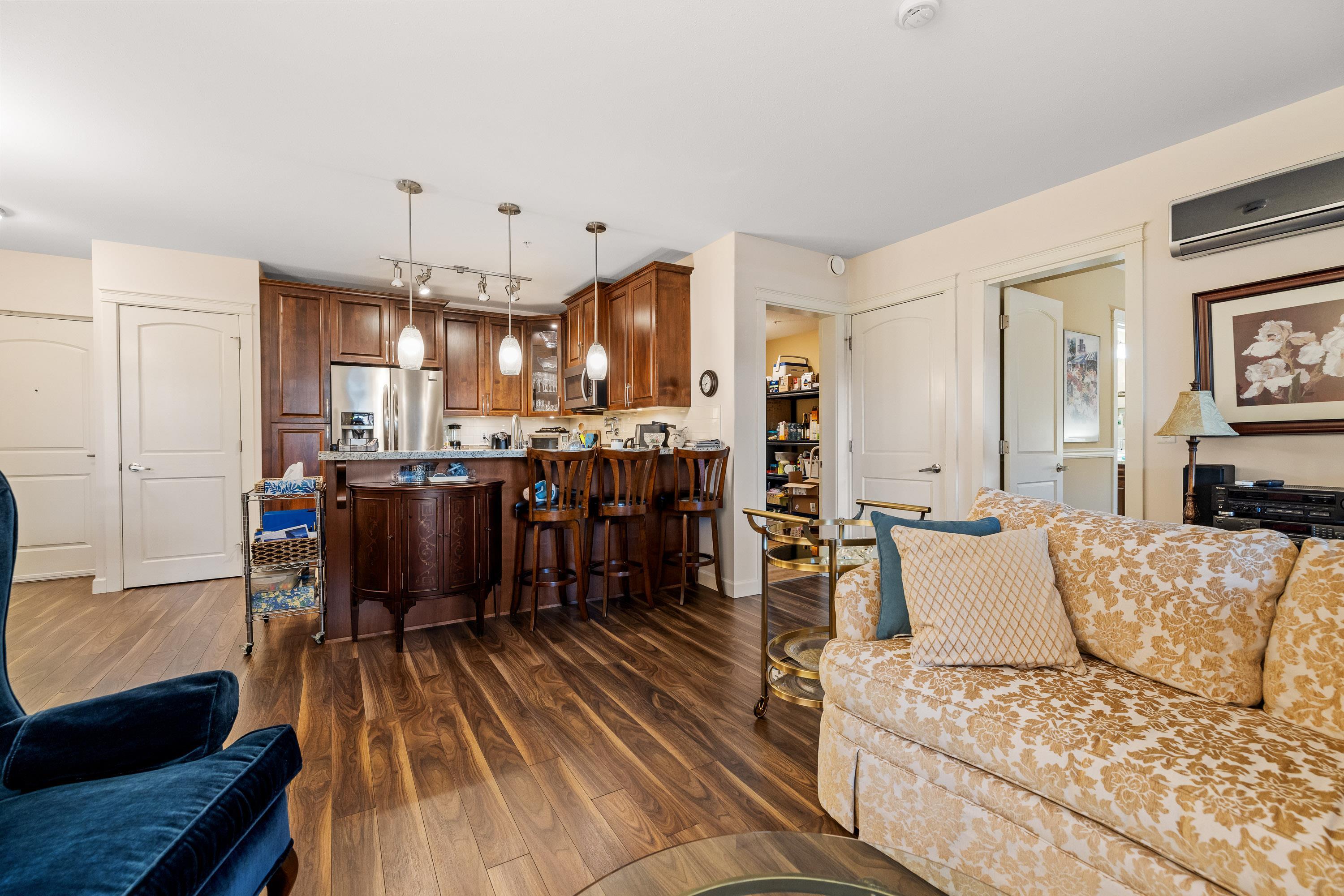La Galleria. Gorgeous ground floor unit. Most popular "A" plan. Located off court yard with unique private patio, entrance off enclosed solarium. Easy for quests & walking your pets. 2 bedrooms plus den. 2 full bathrooms. Gourmet kitchen with all stainless steel appliances, granite countertops and eating bar. 1,069 s/f plus 218 s/f solarium with BBQ area. 9' ceilings. Beautiful laminate floors thru out. Air conditioning. 2 parking spots & storage with power. Pets & rentals OK.