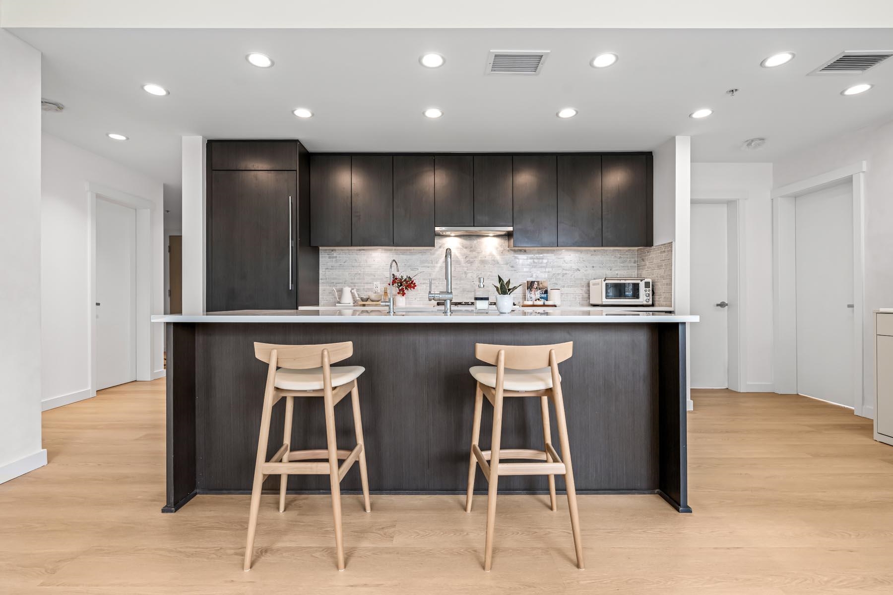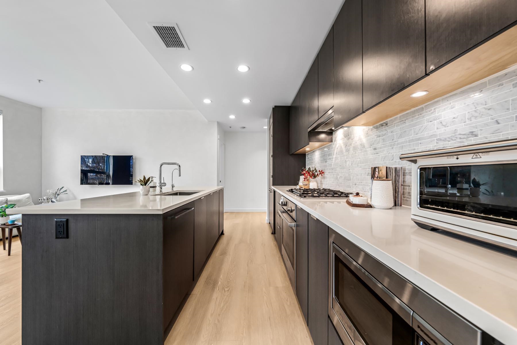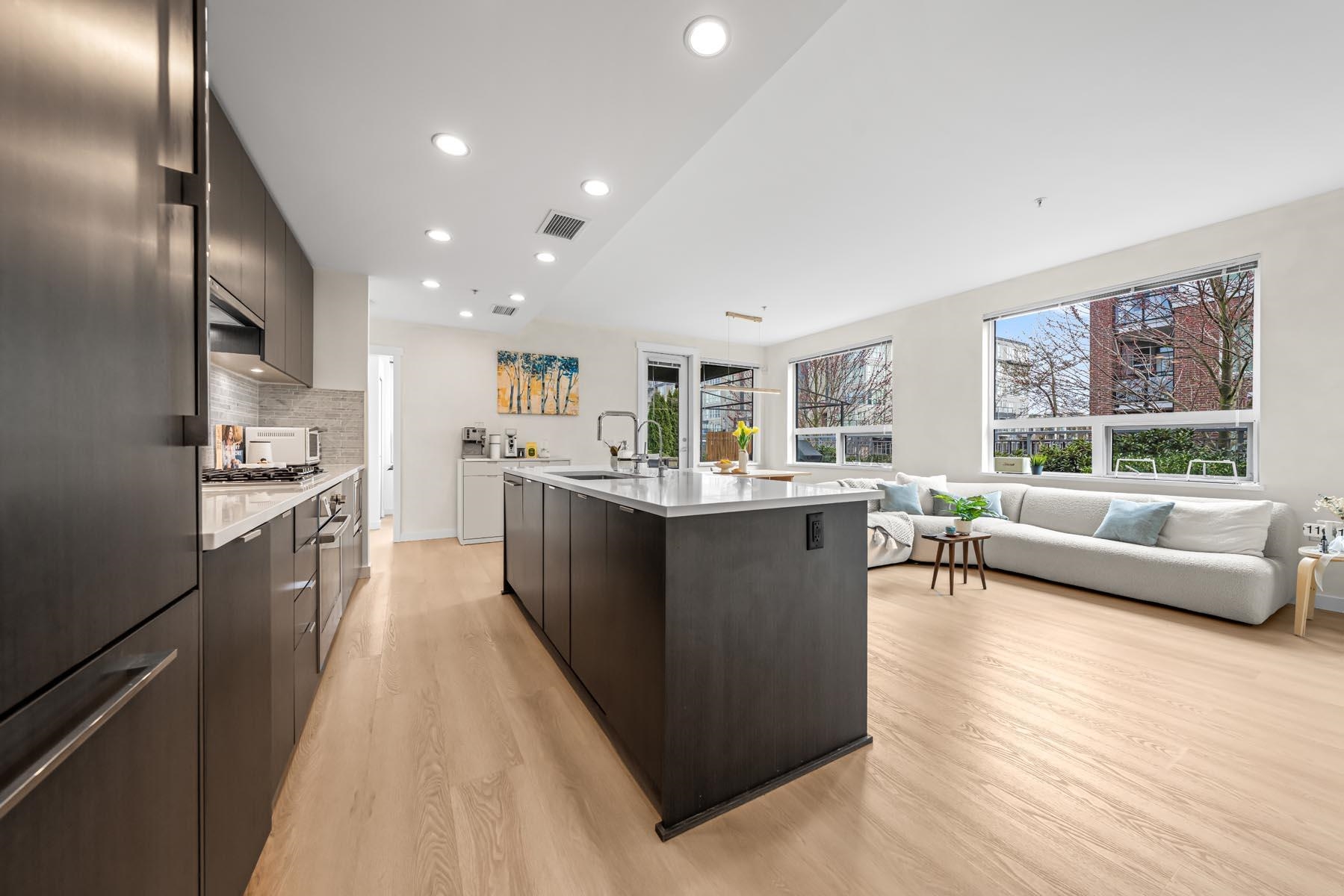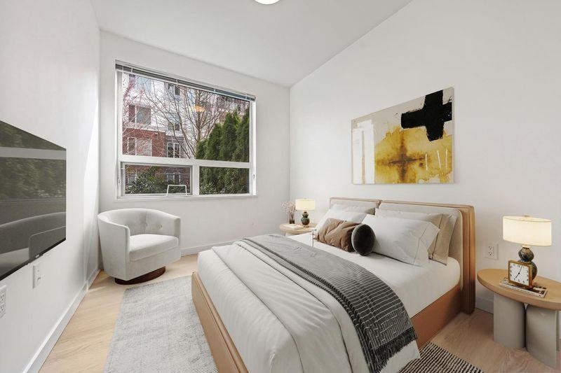 Berkeley House by Polygon— Rare air-conditioned CORNER Garden Home featuring 1600+sqft of private outdoor space & 2 side-by-side EV parking steps from the elevator. This spacious 3-bedroom home offers a bright open layout w/ 9ft ceilings & a gourmet kitchen w/ quartz counters, sleek integrated appliances, gas stove, & a large entertaining island. Bedrooms are generously sized w/ spa-inspired bathrooms & elegant fixtures + a soaker tub. Upgraded w/ palettable neutral tones, waterproof durable flooring throug...