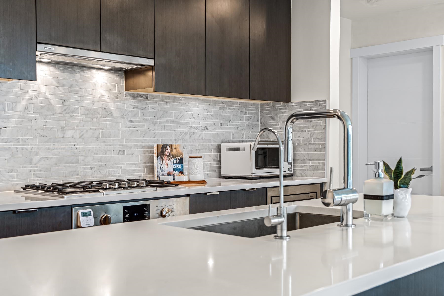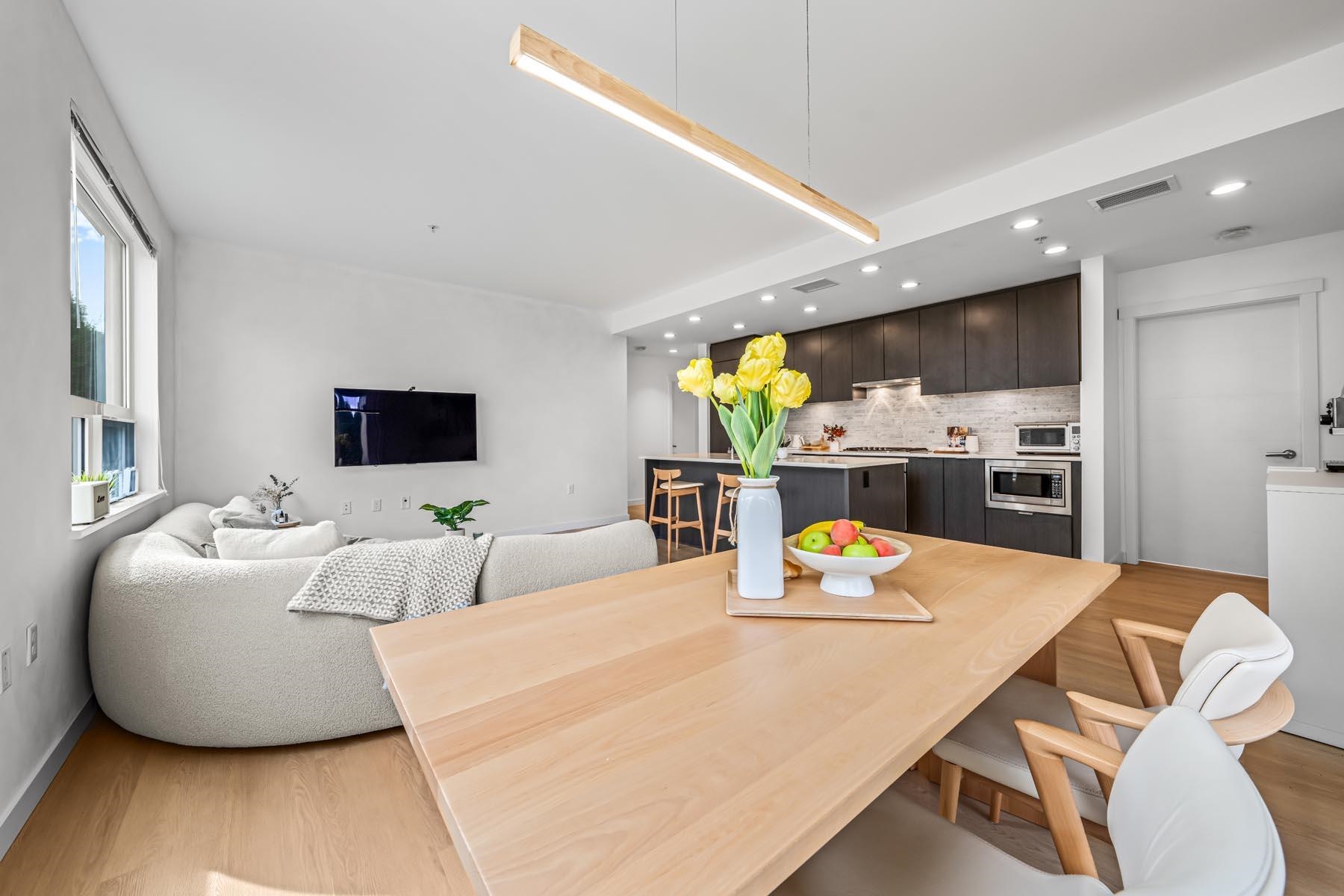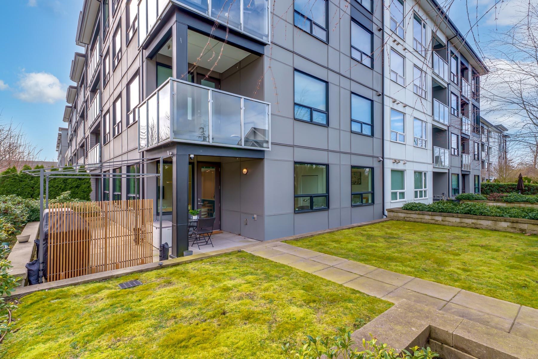 Berkeley House by Polygon— Rare air-conditioned CORNER Garden Home featuring 1600+sqft of private outdoor space & 2 side-by-side EV parking steps from the elevator. This spacious 3-bedroom home offers a bright open layout w/ 9ft ceilings & a gourmet kitchen w/ quartz counters, sleek integrated appliances, gas stove, & a large entertaining island. Bedrooms are generously sized w/ spa-inspired bathrooms & elegant fixtures + a soaker tub. Upgraded w/ palettable neutral tones, waterproof durable flooring throug...