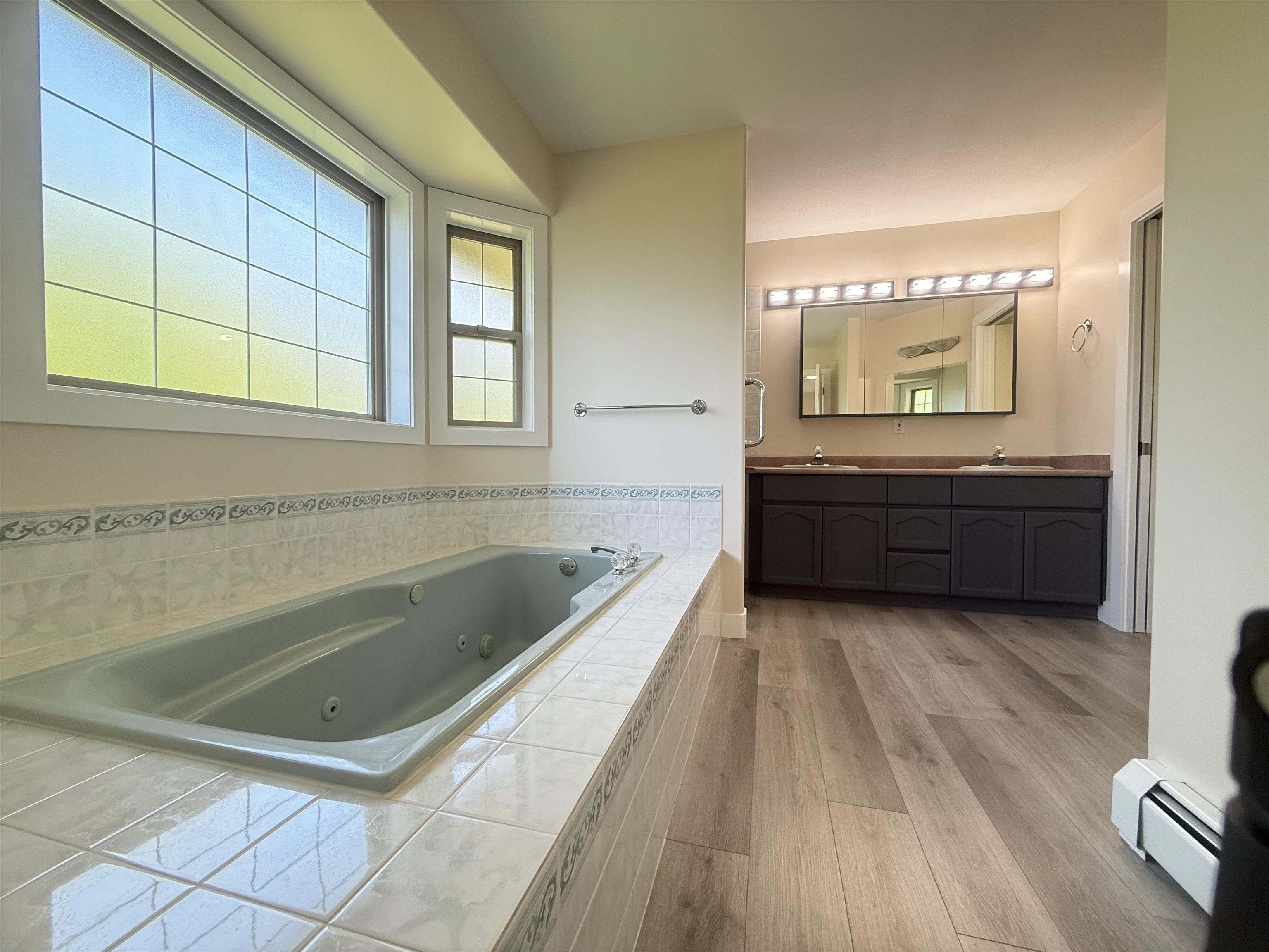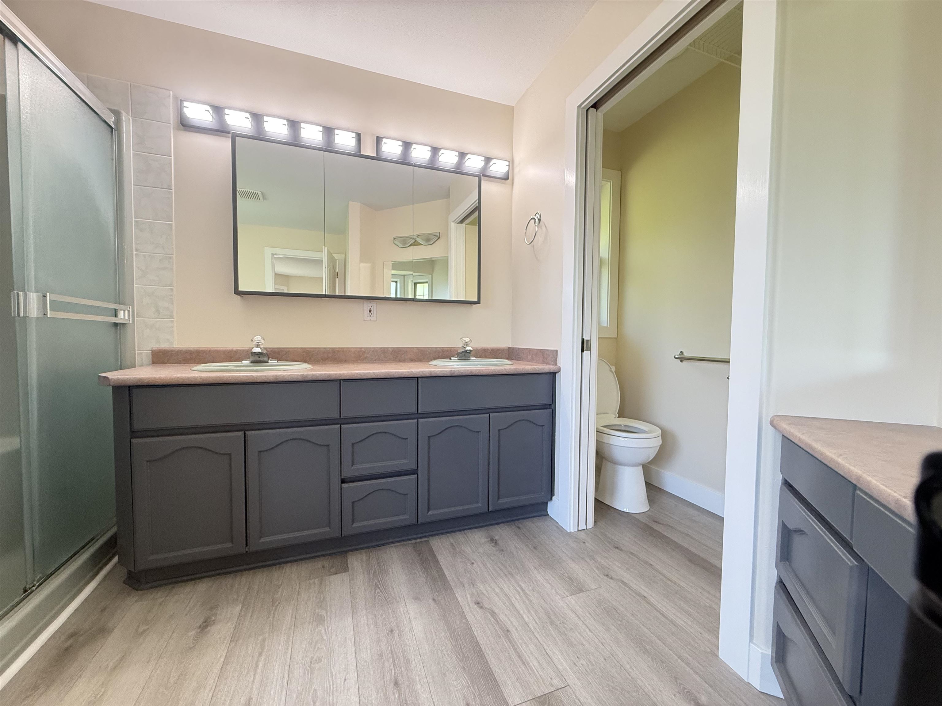 HOME WITH WATER & MOUNTAIN VIEW! Professionally renovated $100K spent. South facing 5 beds, 3 baths. Brand new washer/dryer, dishwasher, fridge, window blinds, pot lights, hot water on demand, paint, laminate floors, and much more. Family room and kitchen opens onto a private deck with fabulous unobstructed mountain and water views. Walking distance to Chilliwack Creek. 2 gas fire places, 3 beds, 2 full bath on the main including huge master bedroom with large en-suite with a soaker tub & separate shower. L...
