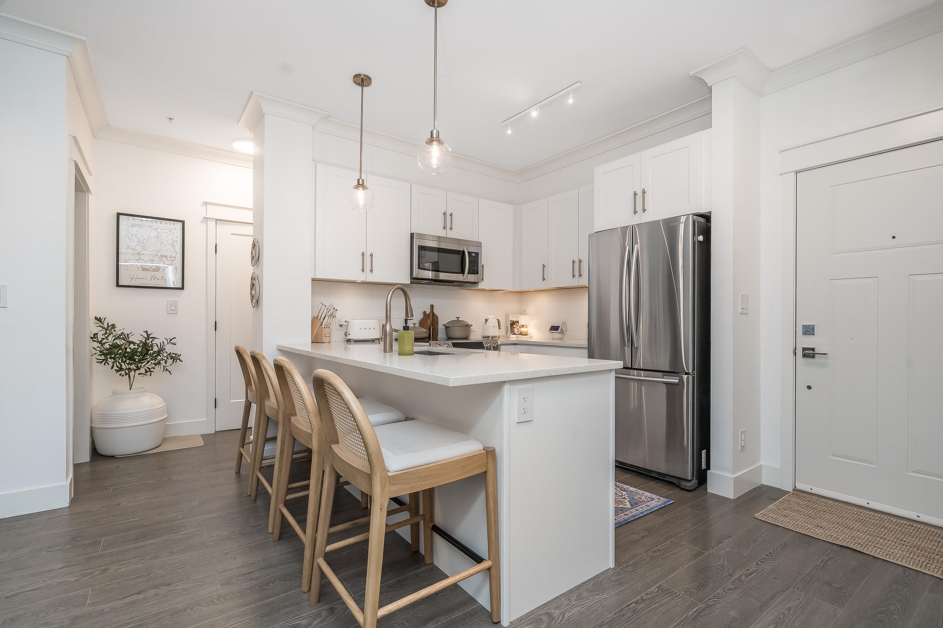 The epitome of comfort and elegance. Nestled in the heart of Murrayville, this stunning 2 bedroom 2 bath condo is a true gem that seamlessly combines modern luxury with cozy warmth. As you step inside this beautiful condo, you'll be greeted by a spacious floor plan that effortlessly flows from room to room. The Master bedroom is a true sanctuary. Not only does it boast ample space, but it also features heated floors that ensure you're nice and comfy! Beautiful Kitchen featuring quartz counter tops. Outdoor ...