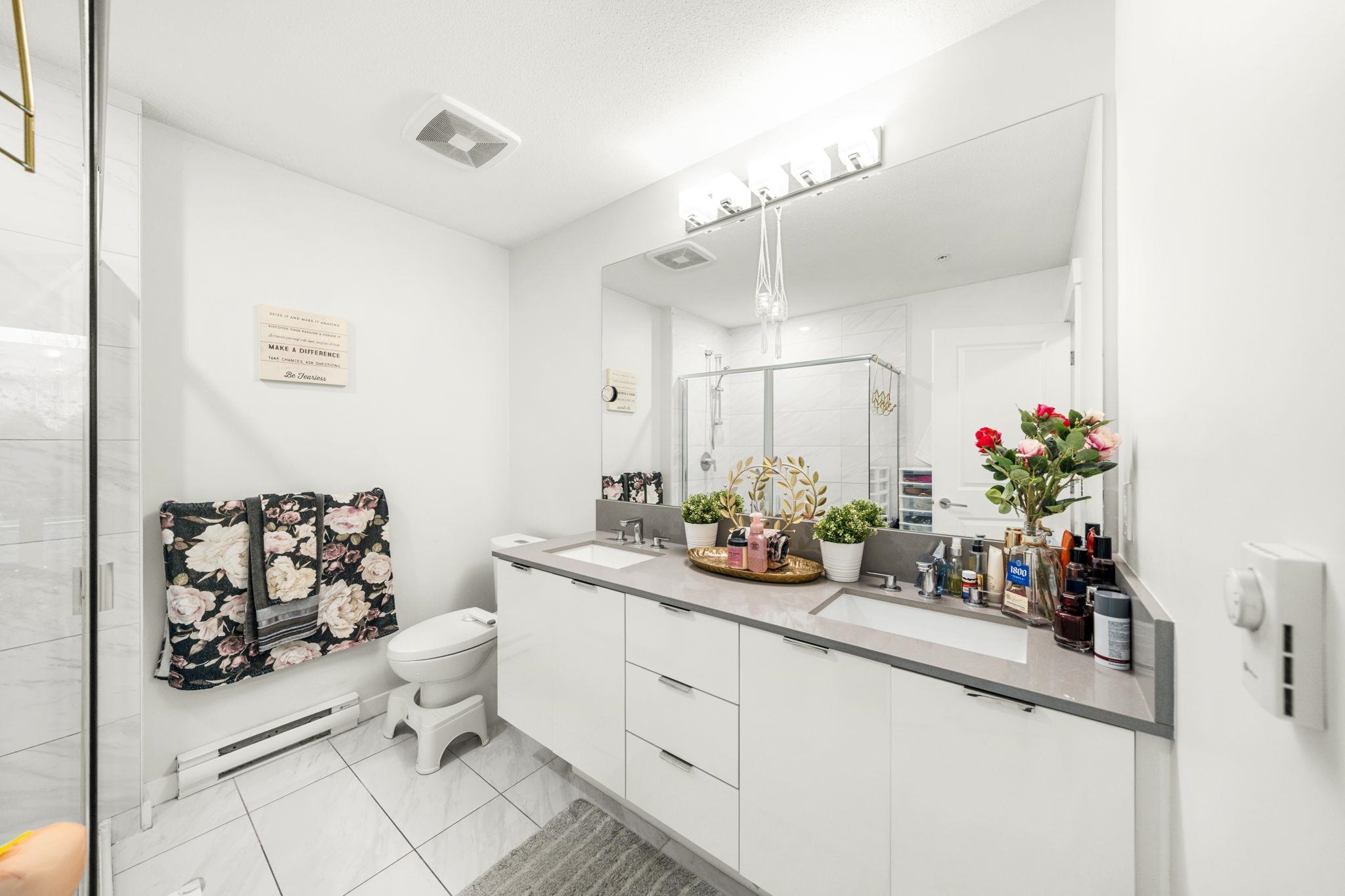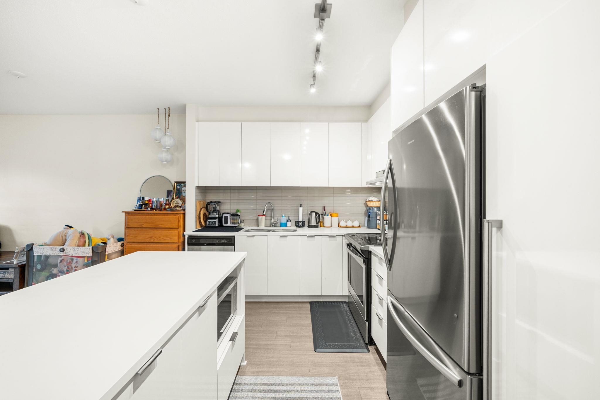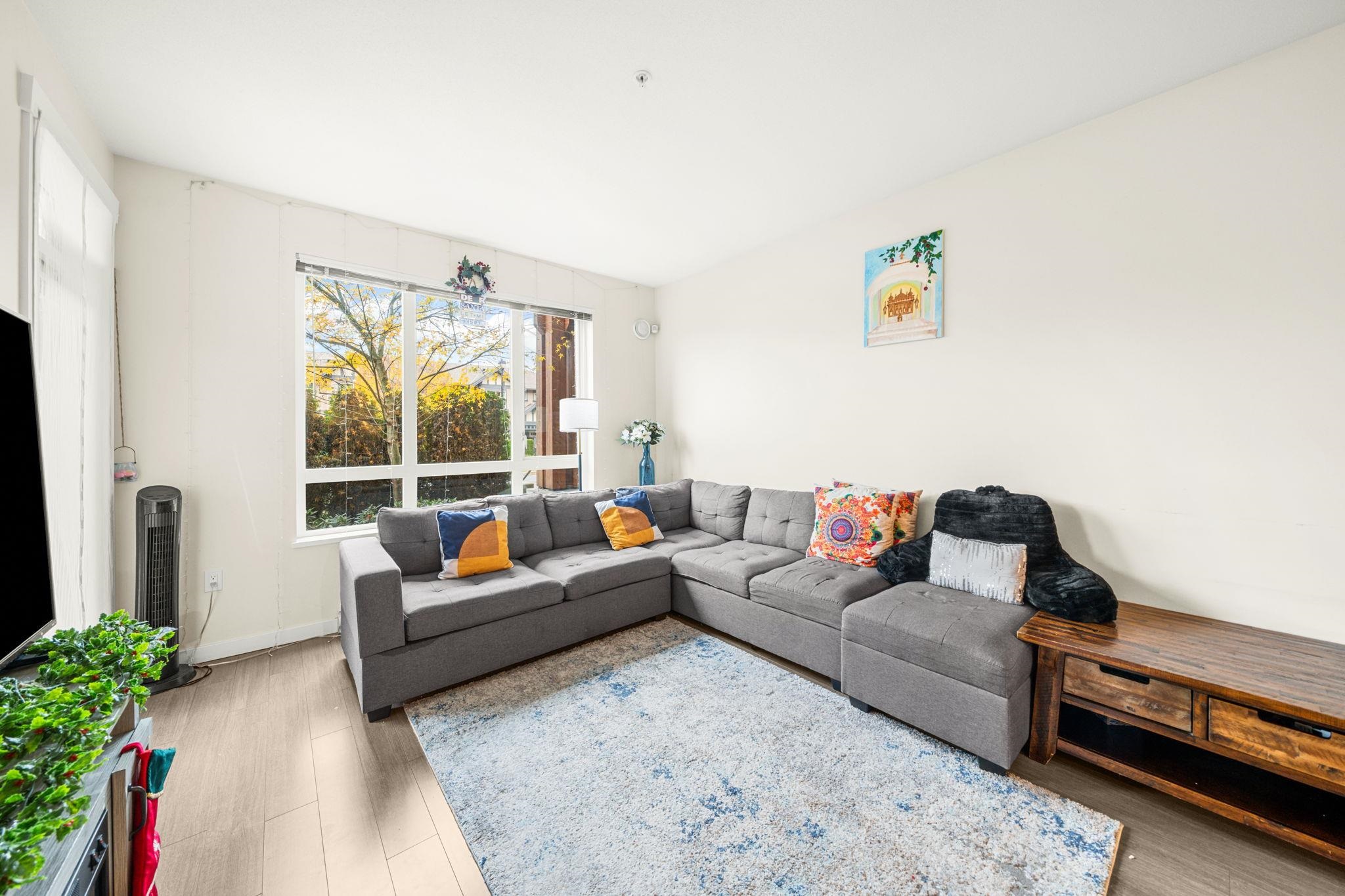 Welcome to Elmstone by Polygon in the master-planned Westerleigh community. This bright 2 bed, 2 bath ground-floor home offers a large private patio with fenced yard, perfect for easy outdoor living. The open layout features 9 ft ceilings, laminate flooring, and a stylish kitchen with a full-size island, stainless steel appliances, engineered stone counters, and soft-close cabinetry. The primary suite includes a walk-in closet and a spa-inspired ensuite with double sinks and a spacious shower. Enjoy resort-...