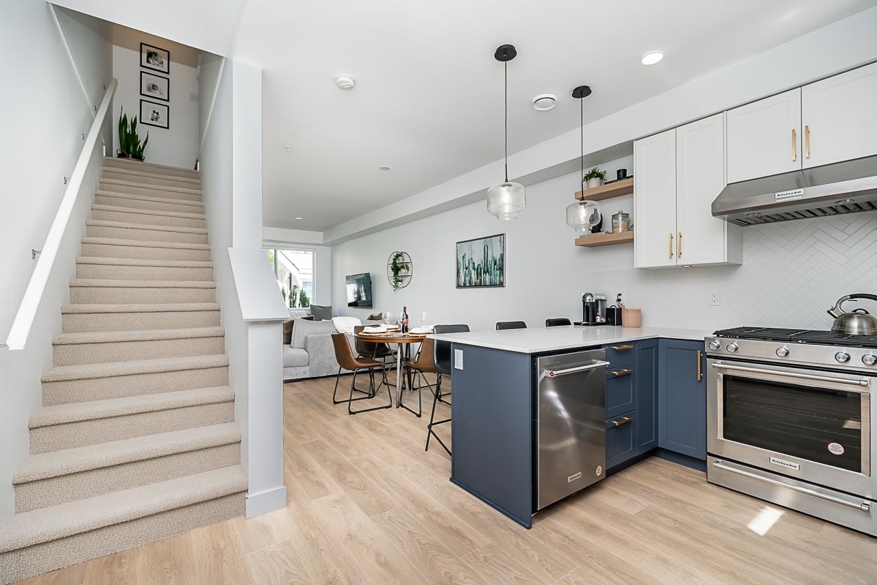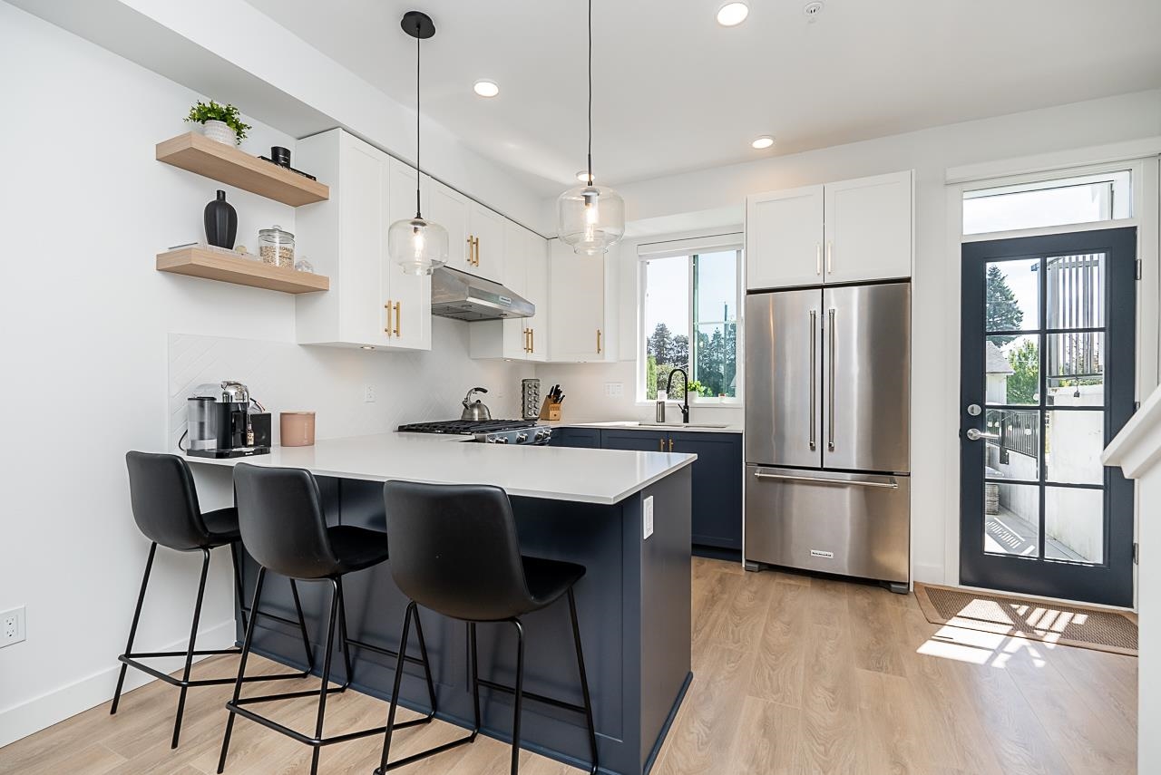 Welcome to "The Robinson"! A boutique collection of 34 West Coast contemporary townhomes in prime West Coquitlam. This home offers over 1,360 sq ft, 3 BED + 3 BATH across 3 levels with open-concept living and sleek modern design. Wide-plank eng. laminate spans the main level, leading to a gourmet kitchen with QUARTZ countertops, S/S appliances, GAS range-oven, herringbone tile backsplash & brushed brass fixtures. The 2nd level features 2 LARGE bdrms with a shared 4-piece bath. The top level is a private pri...