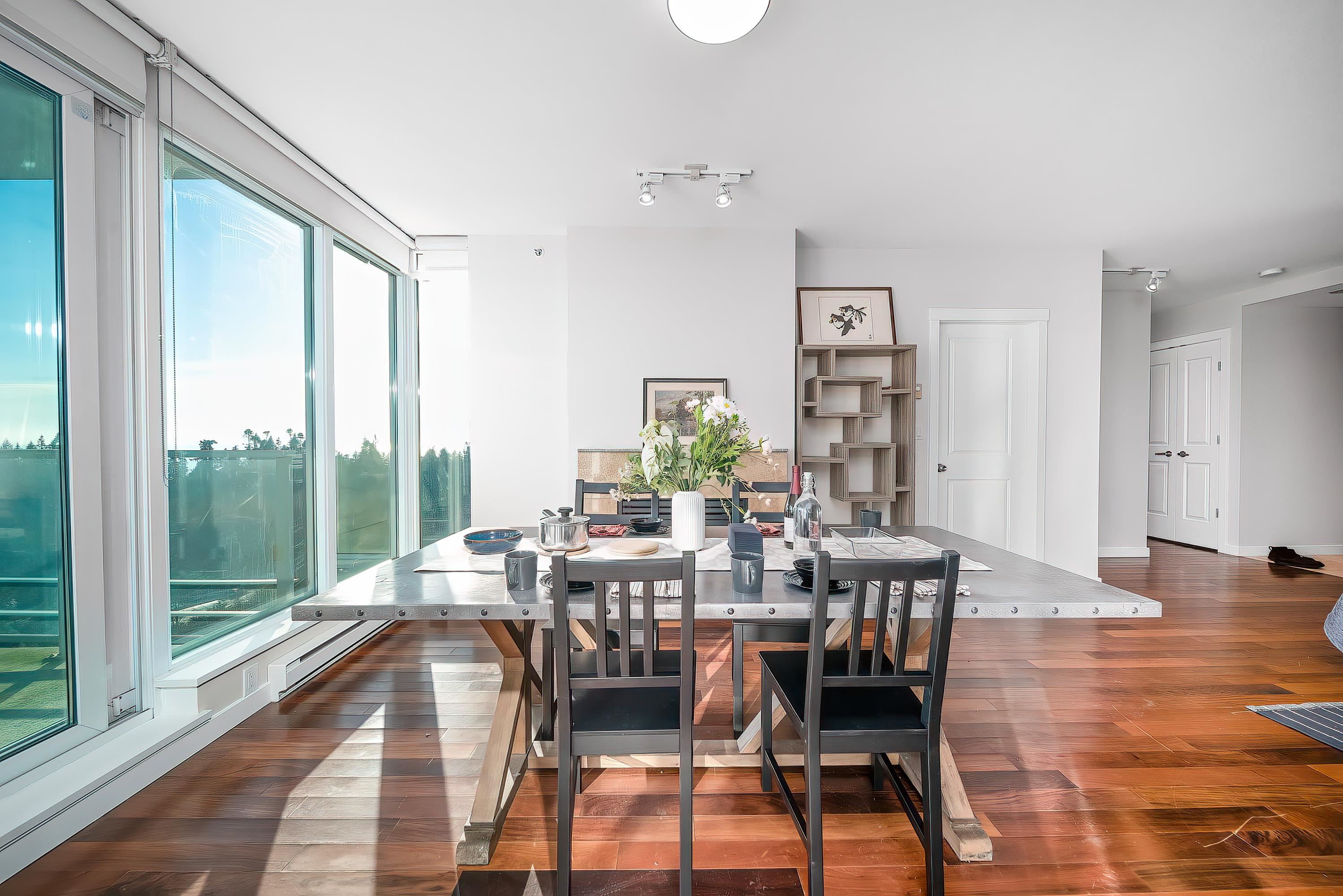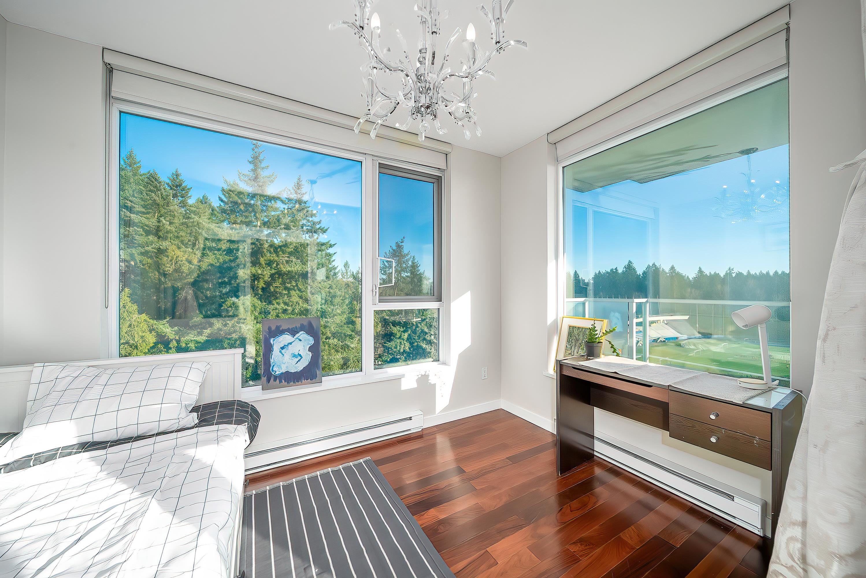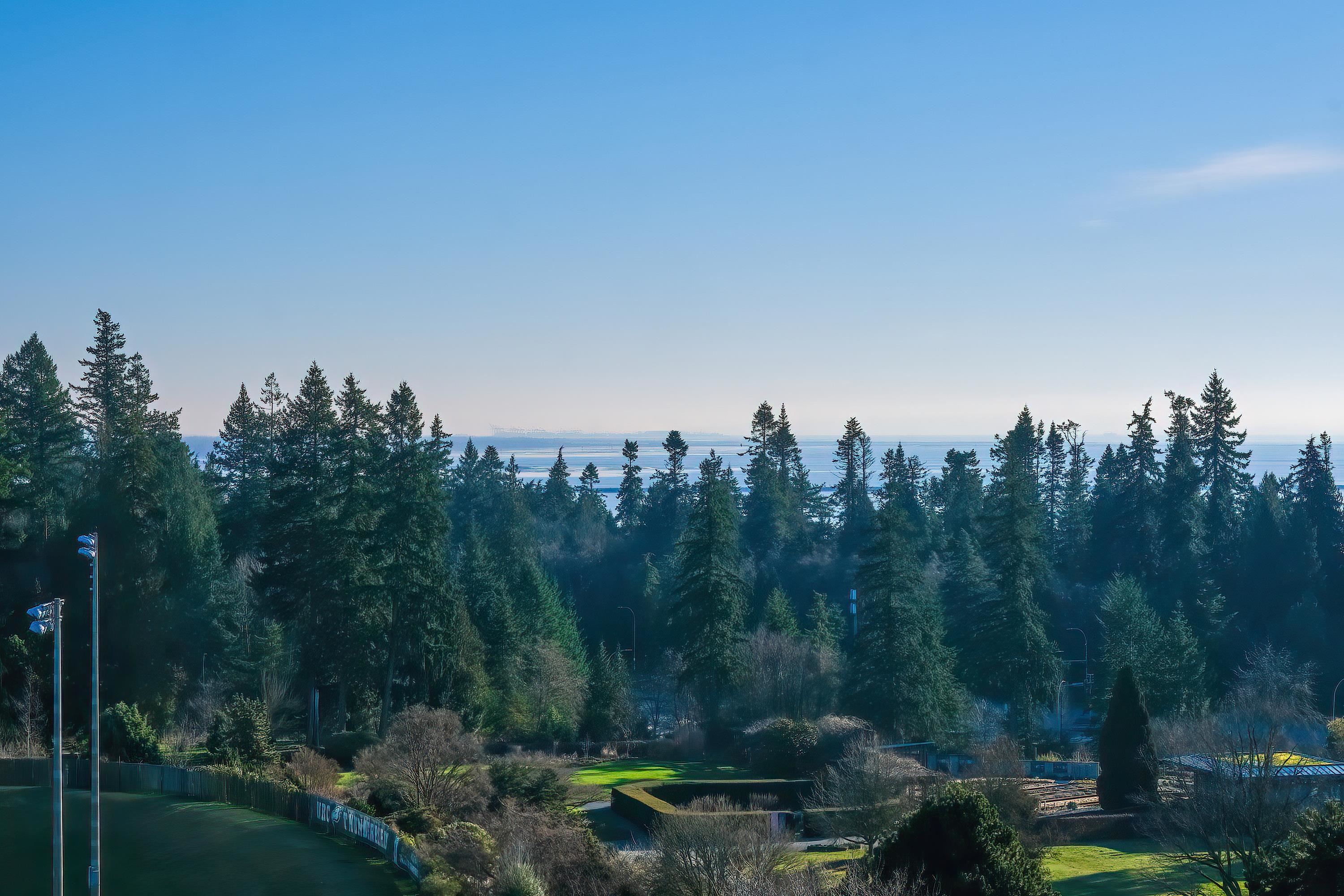 Bright and well designed SE corner unit, located in the heart of UBC. Featuring an open layout with large windows and fabulous views of ocean, forest, mountains, campus. Spacious floor plan with hardwood floors, open concept kitchen with granite countertops, radiant heat in master bathroom, well maintained, concierge service in lobby. 2 parking stalls side by side on main level and an extra large storage locker included. Steps to UBC campus, top schools, Pacific Spirit Park, Shops, transit, and daily conven...