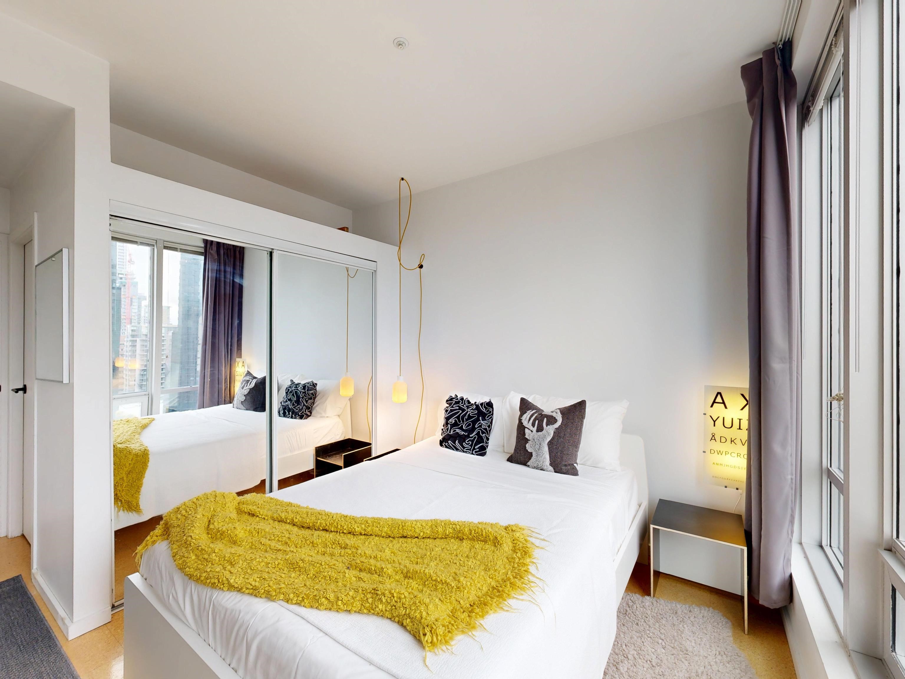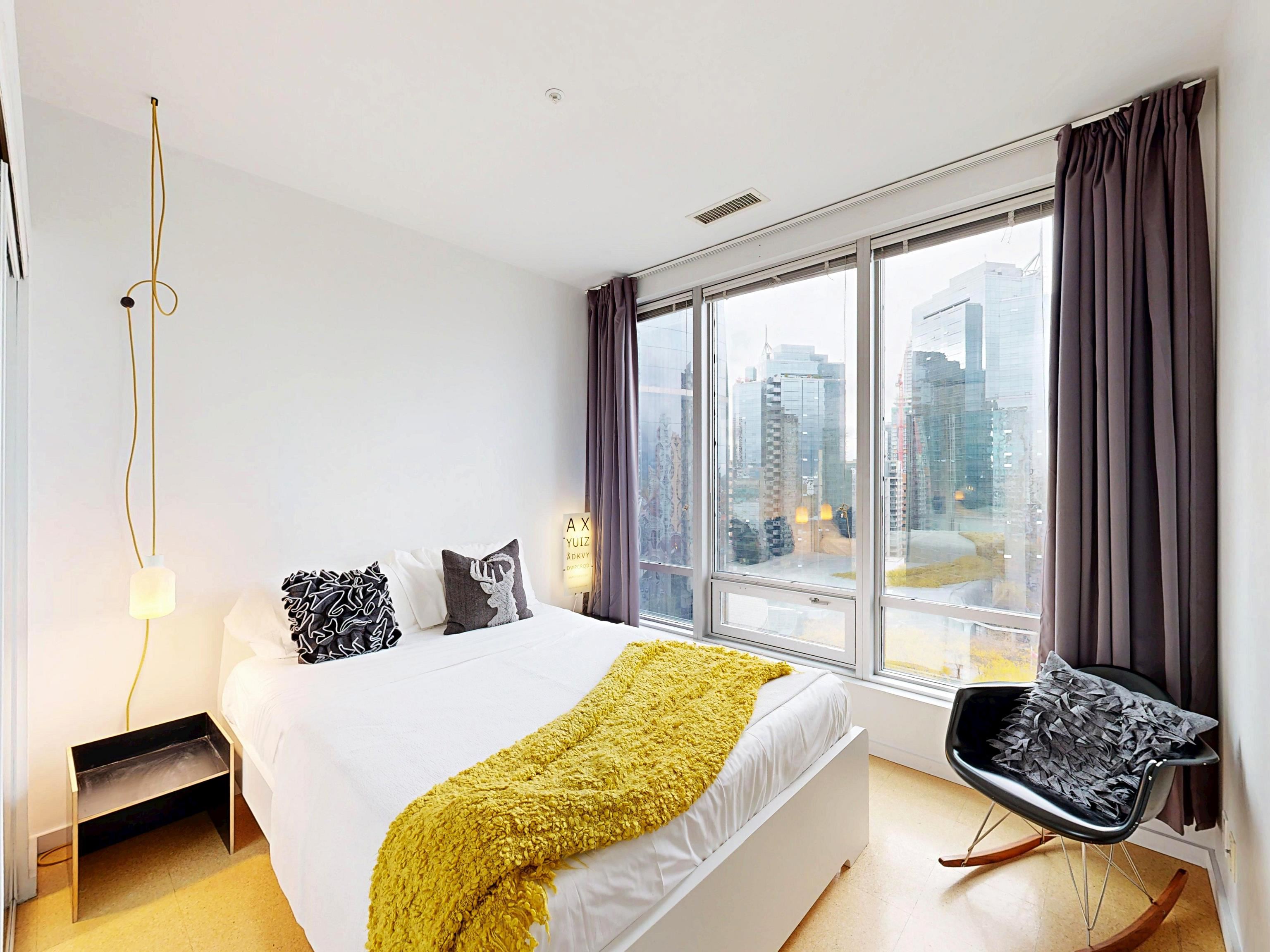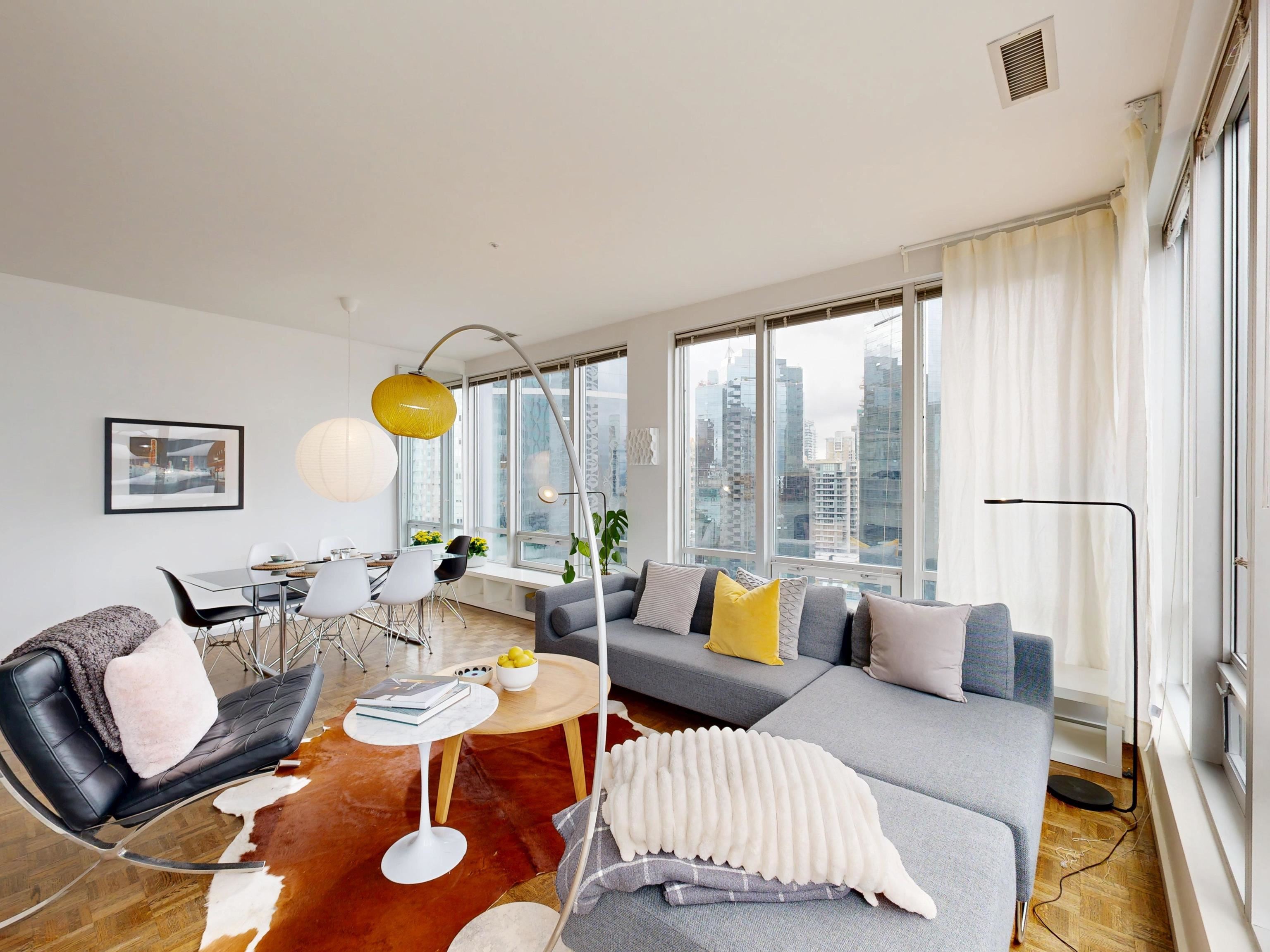 HOT HOT HOT. Convertible 2bd 2ba 810 Sq ft Airbnb friendly unit with AC in the historic Electra. Views of downtown, peak a boo mountain and water views. Own a piece of revenue generating history in the heart of Downtown Vancouver. This unit was configured to easily switch from a 2 bd to a 1 bedroom plus office with an innovative architecturally designed sliding wall system. An ideal Pied de Terre. Great for empty nesters, or even a small family. VERY COOl mid-century modern iconic bldg. Sauna, guest suites,...