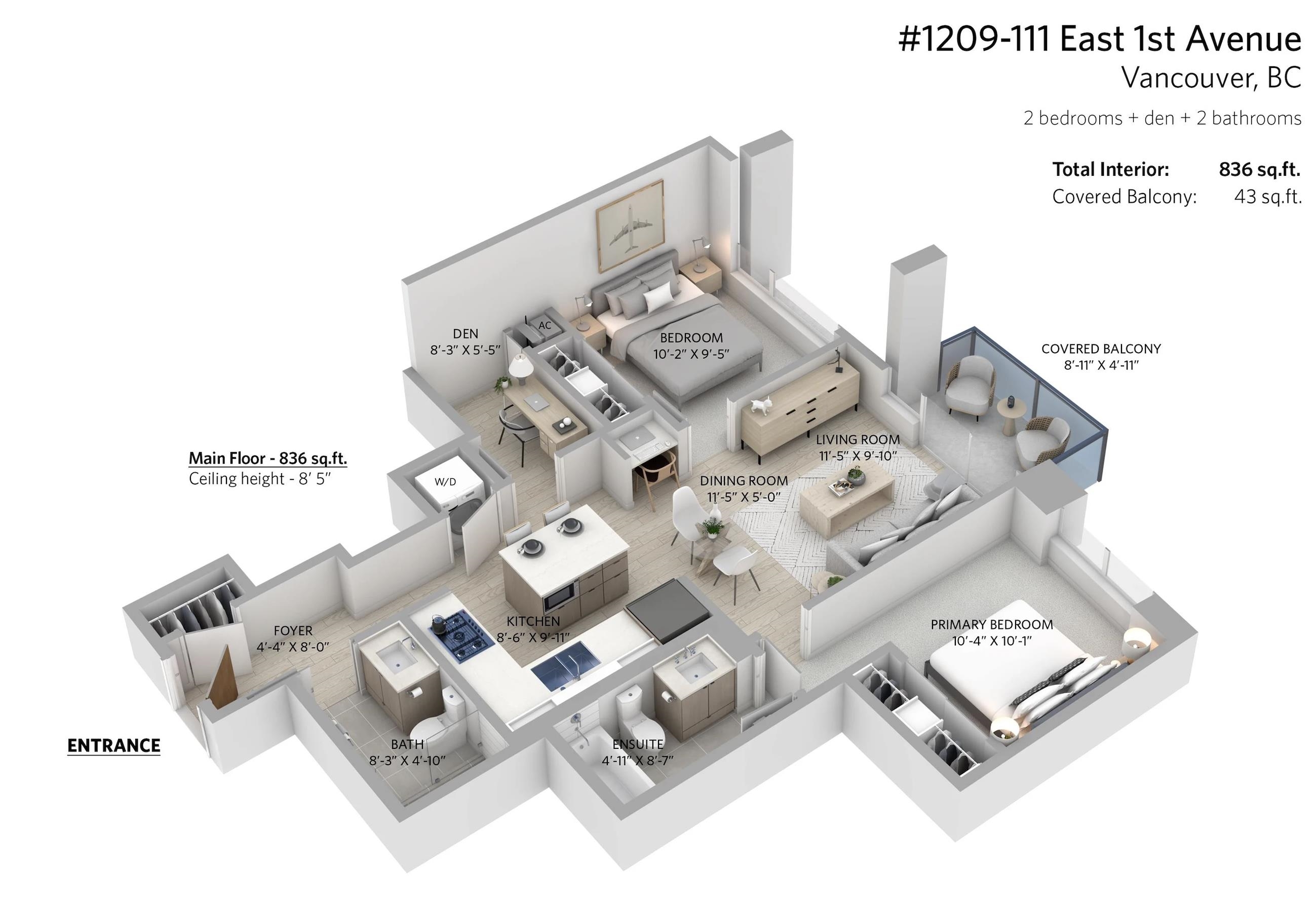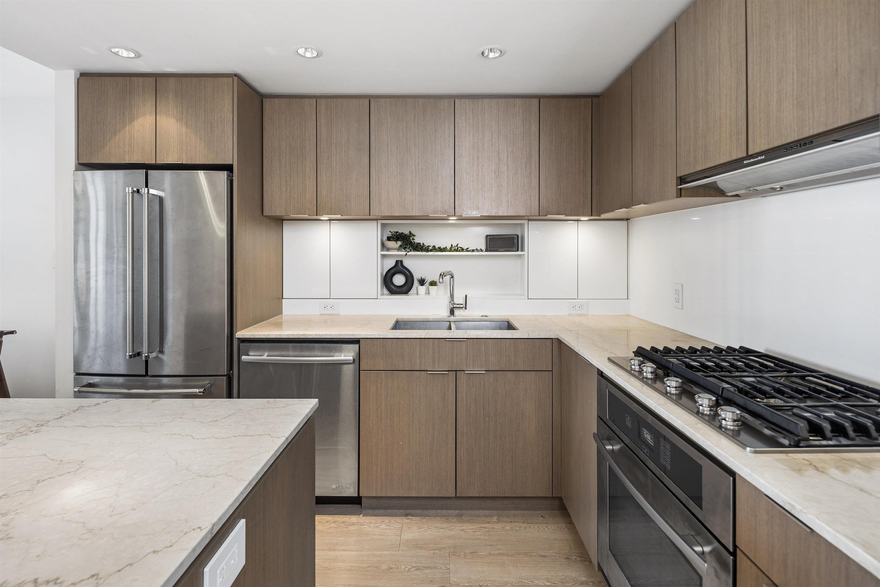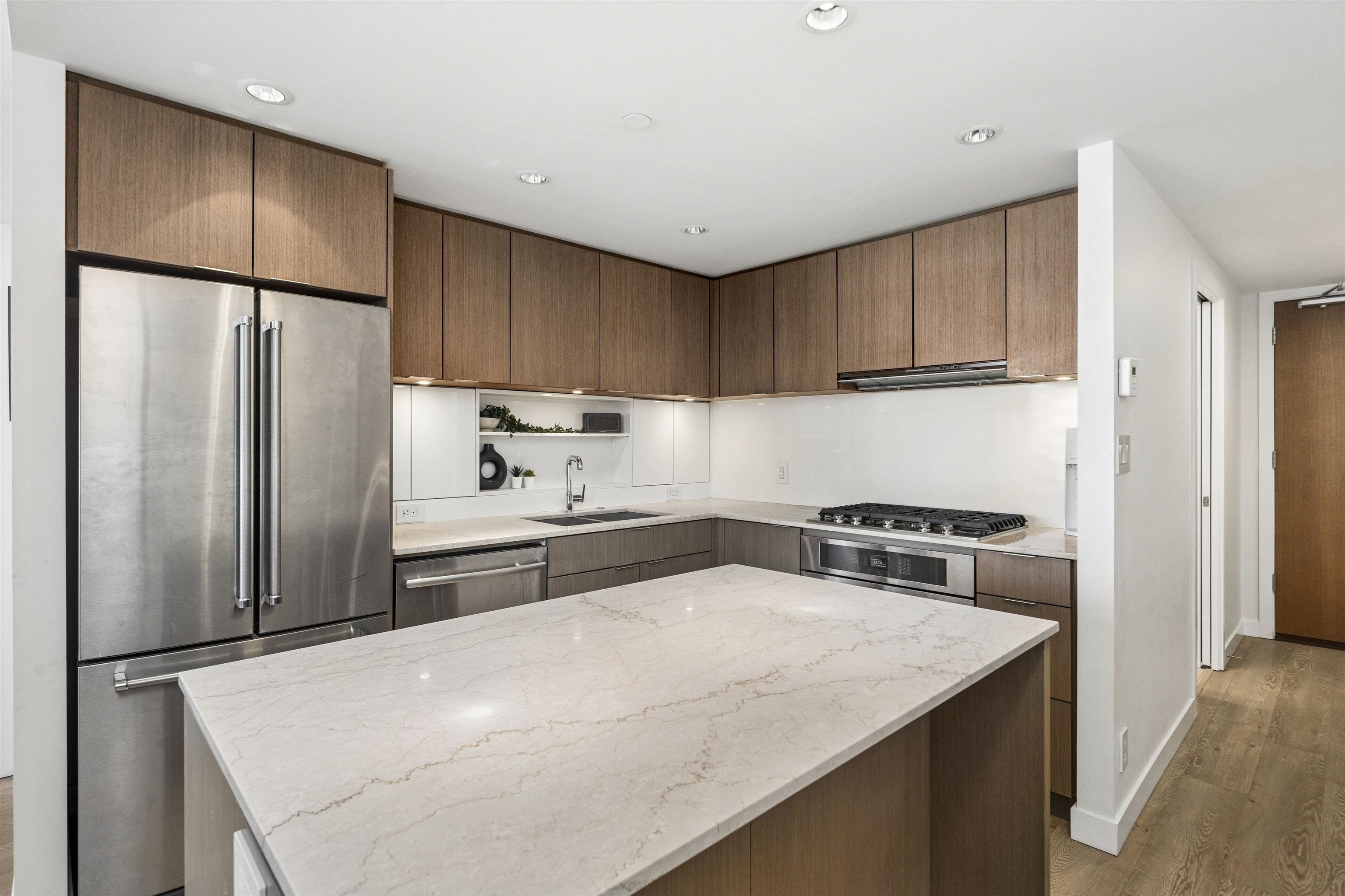 Welcome to Block 100 in the heart of Olympic Village, with some of the BEST amenities in the city right at your doorstep—dining, entertainment, shopping, transit, and amazing views of False Creek and Downtown. PERFECTLY LAID OUT HOME features 2 bed, 2 bath + DEN and open office space sits on a 12th high floor, featuring an open-concept layout with no wasted space! AIR-CONDITIONED BUILDING. The chef’s kitchen- marble countertops and premium KitchenAid appliances, 5 gas-burner stove, large island. Spacious be...
