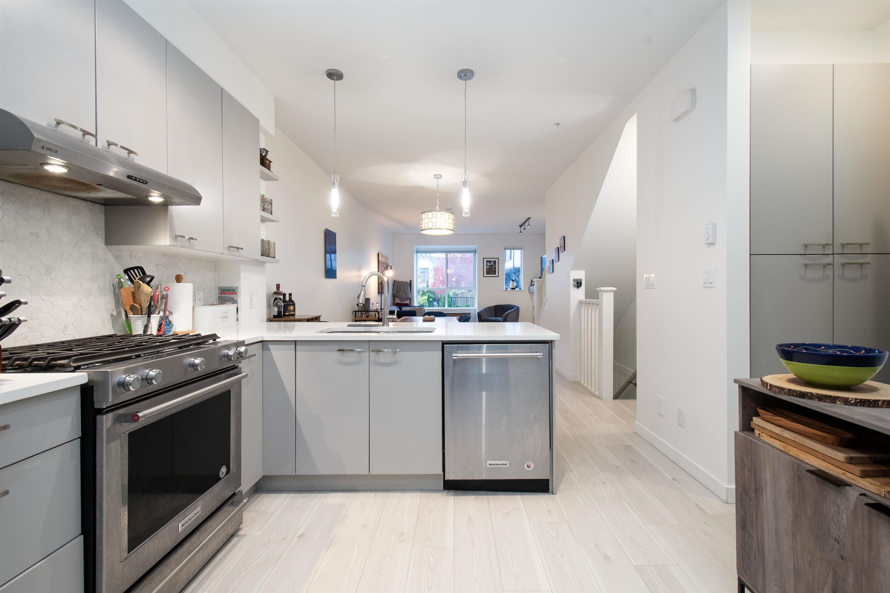 Welcome to this beautifully built 3 bed, 2.5 bath townhome by Solterra, offering 1,351 sq ft of well-designed living space right in the heart of Downtown Squamish. Enjoy mountain views from multiple rooms, a fenced south-facing yard and patio, and a massive double tandem garage—perfect for parking, storage, or all your gear. Built in 2017, this home features stylish finishes throughout, including stainless steel appliances, quartz countertops, and a marble hex backsplash. You're just a short walk to shops, ...