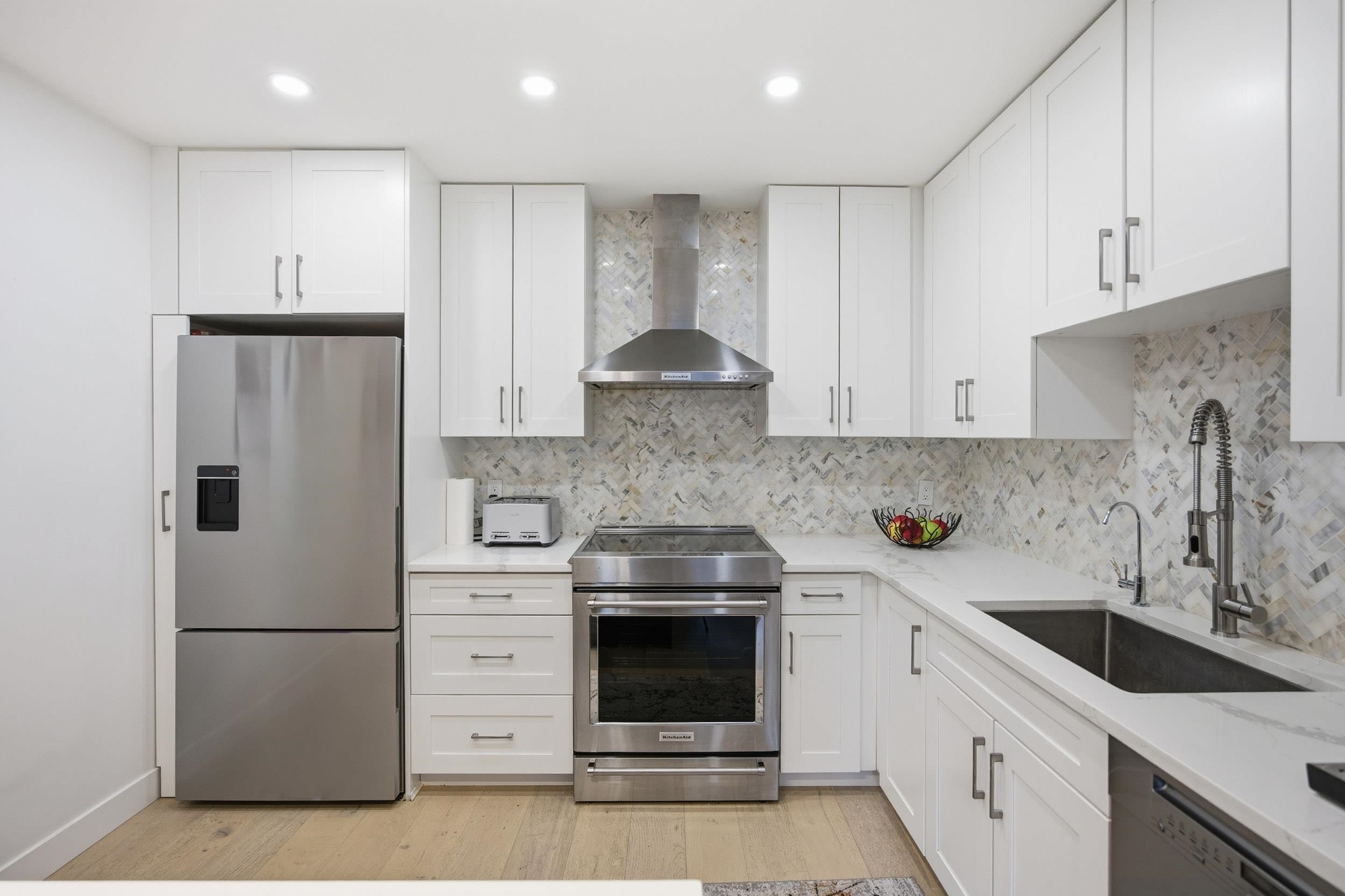 Beautifully updated 2 bed, 2.5 bath townhouse in a prime neighborhood. Bright and spacious 2-level home with a private fenced yard. Main level features a custom entry closet, powder room, and a chef’s kitchen with stainless steel appliances, quartz counters, and marble backsplash. Large living area with new electric fireplace, engineered hardwood throughout, and a sunny patio. Lower level offers a generous primary bedroom with walk-in closet and spa-style ensuite (double vanity, rain shower, in-floor heatin...