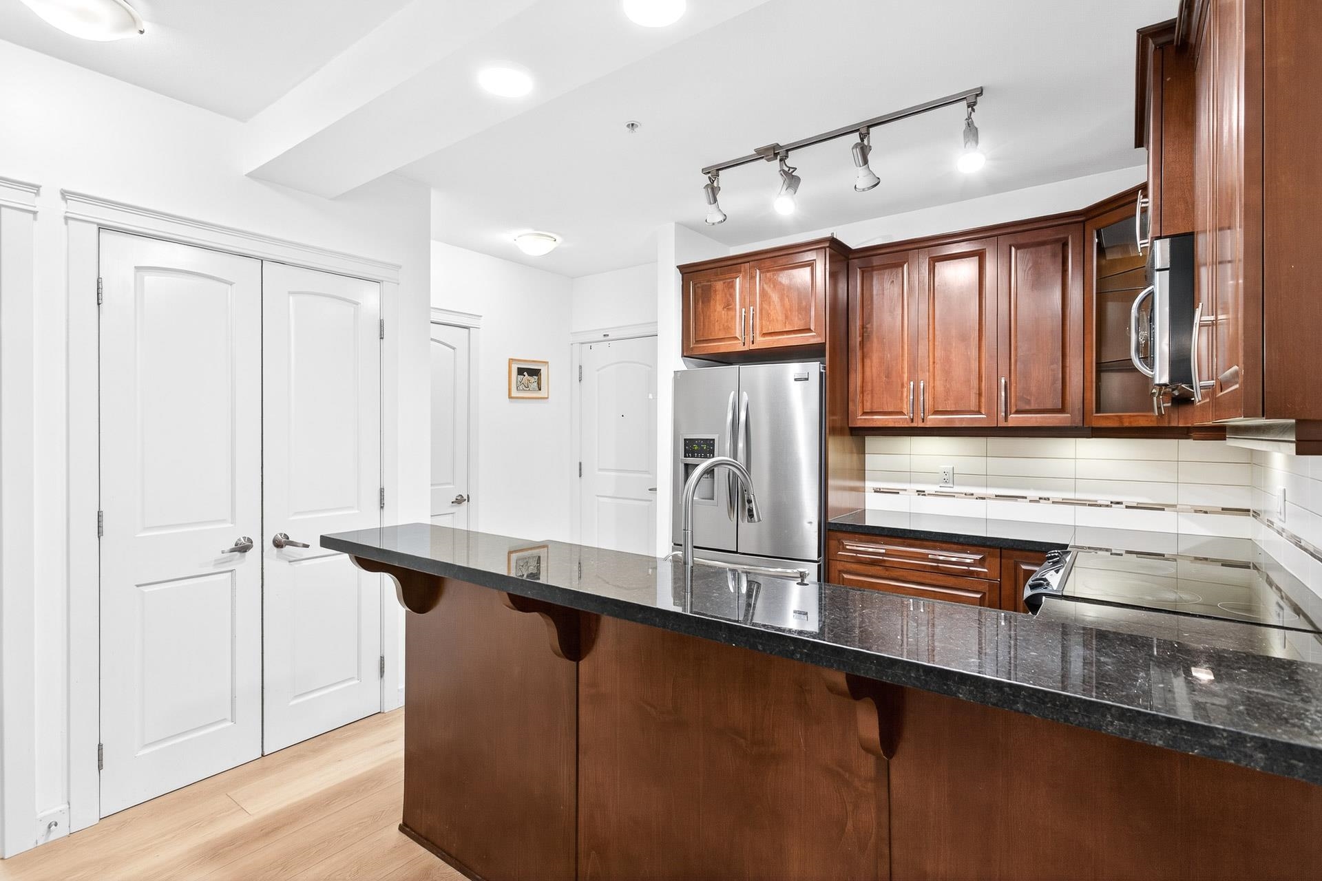 Rarely available ground level unit in the desirable Walnut Ridge at Yorkson Creek! This spacious and well maintained 2 bedroom, 2 bathroom and den boasts an open concept floorplan with beautiful new flooring and paint throughout, 9' ceilings, granite countertops, stainless steel appliances, heated bathroom floors, heat pump/air conditioning, and much more. Incredible location is front and centre as this unit is just steps to the Incredible Yorkson Community Park, various levels of schools, shopping, restaur...
