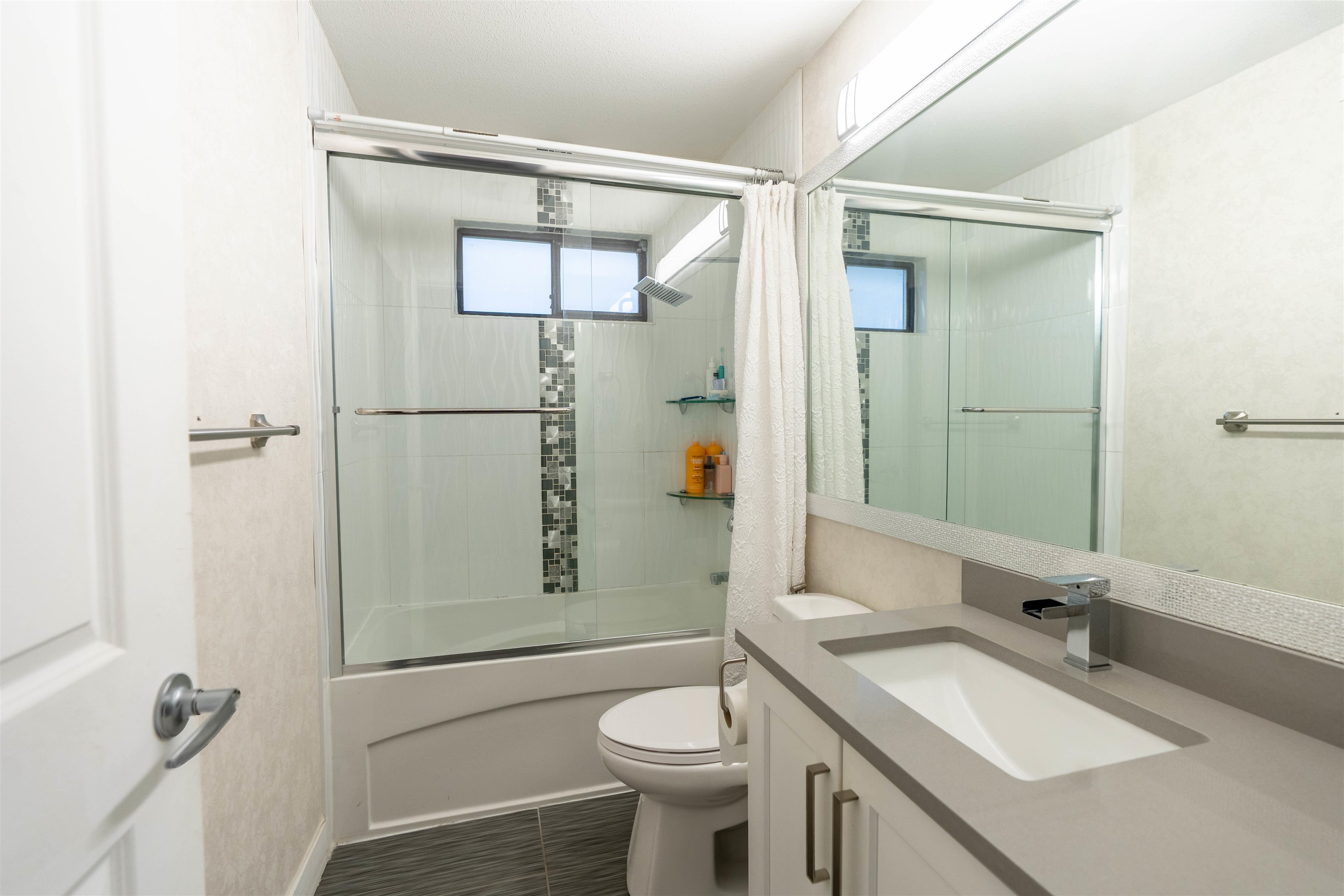 Beautifully updated 4-bedroom detached house in desirable Bear Creek-Green Timbers! 1,700+ Sq. Ft. on a 6,081 Sq. Ft. lot, steps to Bear Creek Park and half a block to elementary & pre-school—perfect for families. Fully renovated interior featuring open-concept new kitchen & new bathroom, updated flooring (tile, laminate & carpet), pot lights, ceiling fans, baseboards, doors, closet organizers, paint, stainless stair rail, blinds/drapes, CCTV & security system. Appliances & hot water tank (2020). 1-bed base...
