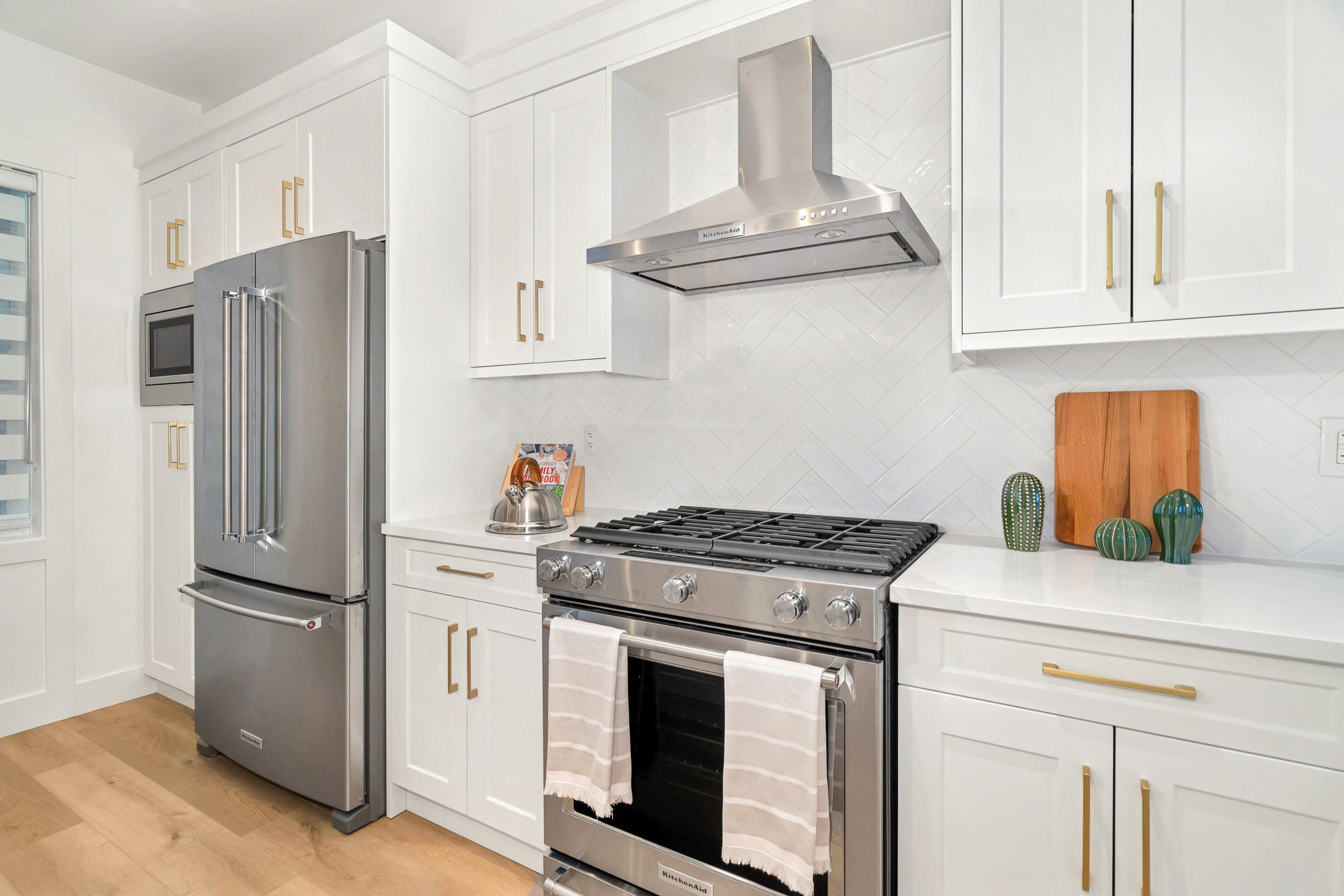LAST 2 HOMES, MOVE-IN-READY at PRESTIGE by Sivia Construction* luxury duplex-style townhomes with private driveways in Fraser Heights. Spacious 4 Bed + Flex homes with rare 4-car parking, open-concept layouts, and premium finishes throughout.Designer kitchens include a KitchenAid appliance package with gas range, French-door fridge, built-in microwave, and dishwasher. High-end details feature soft-close cabinetry, custom lighting vessel sinks. Spa-inspired primary ensuite with side-by-side vanities and glas...