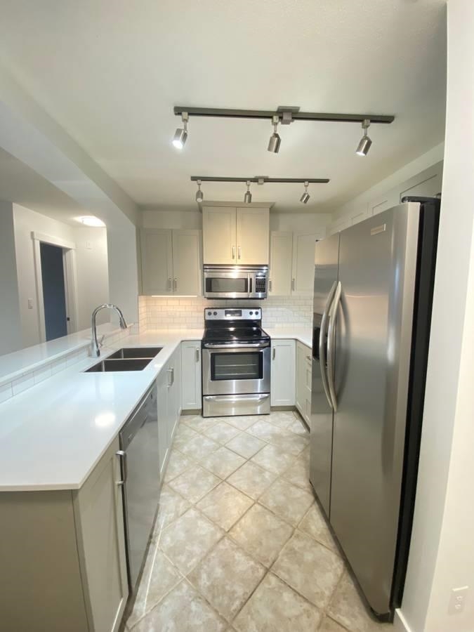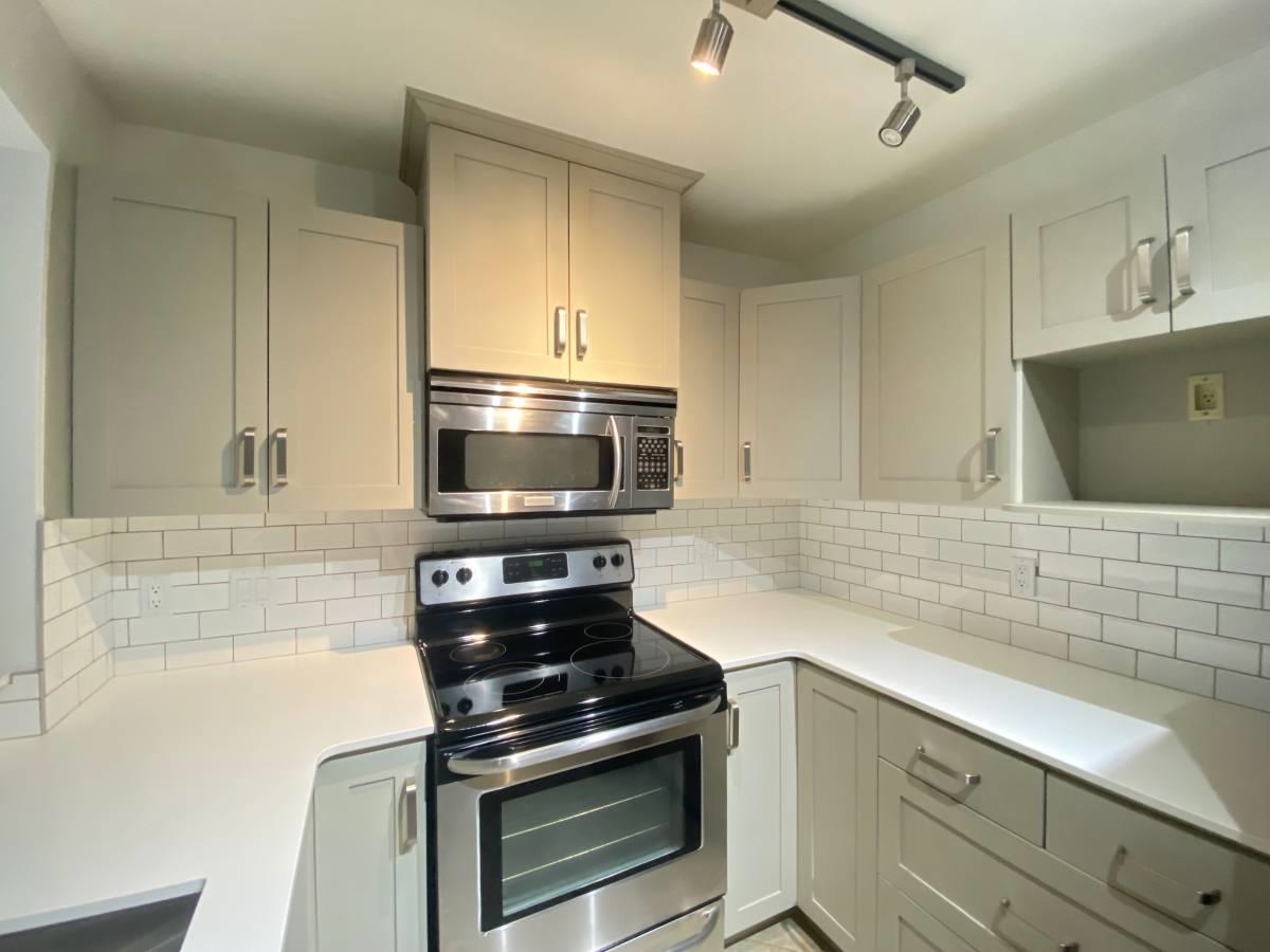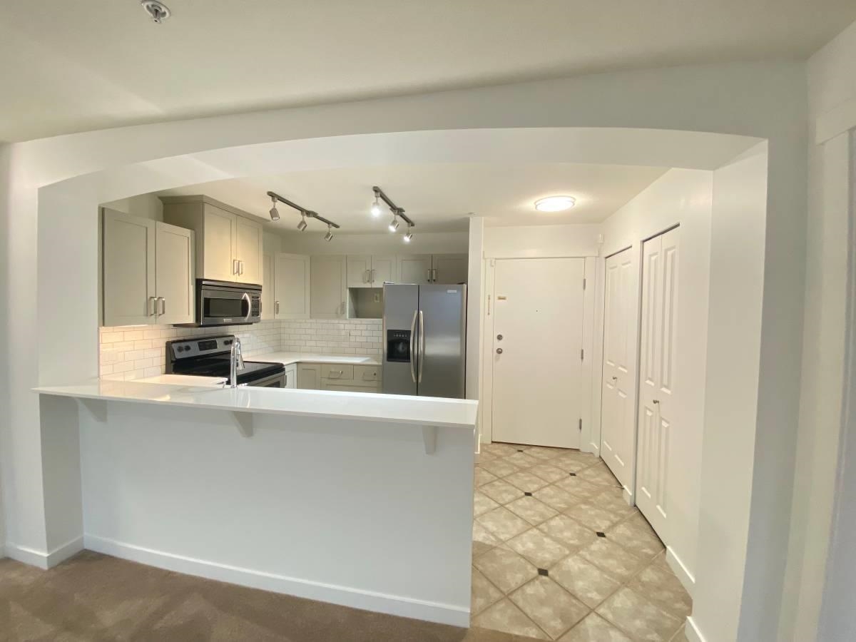 This lovely - recently renovated 2 bedroom, 2 bathroom condo in Coquitlam is a must see! Newly renovated kitchen with grey accent shaker cabinets, stainless steel appliances, stone countertop, tiled backsplash and deep double sink. Cozy carpeting throughout main living space and bedrooms. Great sized secondary bedroom located on opposite side from master bed. Main bathroom holds stand up shower, linen closet and vanity. Primary bedroom features a walk-in closet and 4 piece ensuite bathroom with luxury soake...