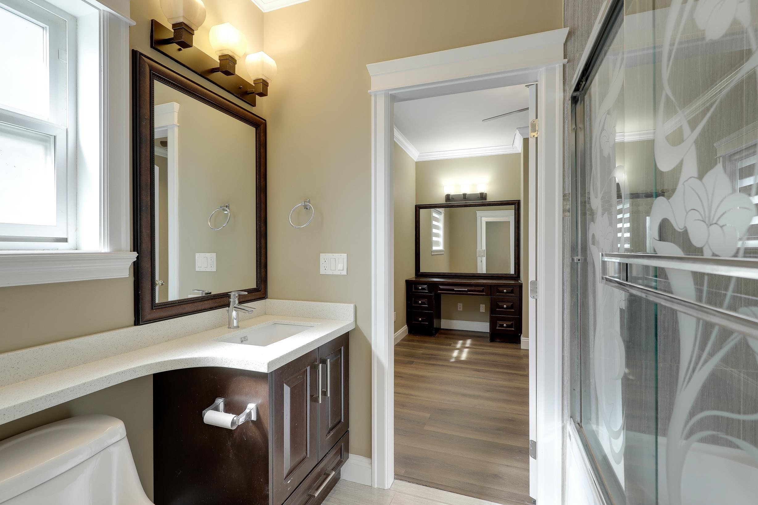 Hugh and Beautiful 3-level home in Sullivan Heights with a spacious main floor featuring living, dining, kitchen, large family room, and half bath. Upstairs offers 4 bedrooms and 3 full baths, including 2 master suites with walk-in closets. The basement includes a 2-bedroom mortgage helper, half bath, games/extra bedroom, and a finished theater room. Upgrades include granite counters, stainless steel appliances, custom cabinets, and premium fixtures. Private backyard. Walking distance to Cambridge Elementar...