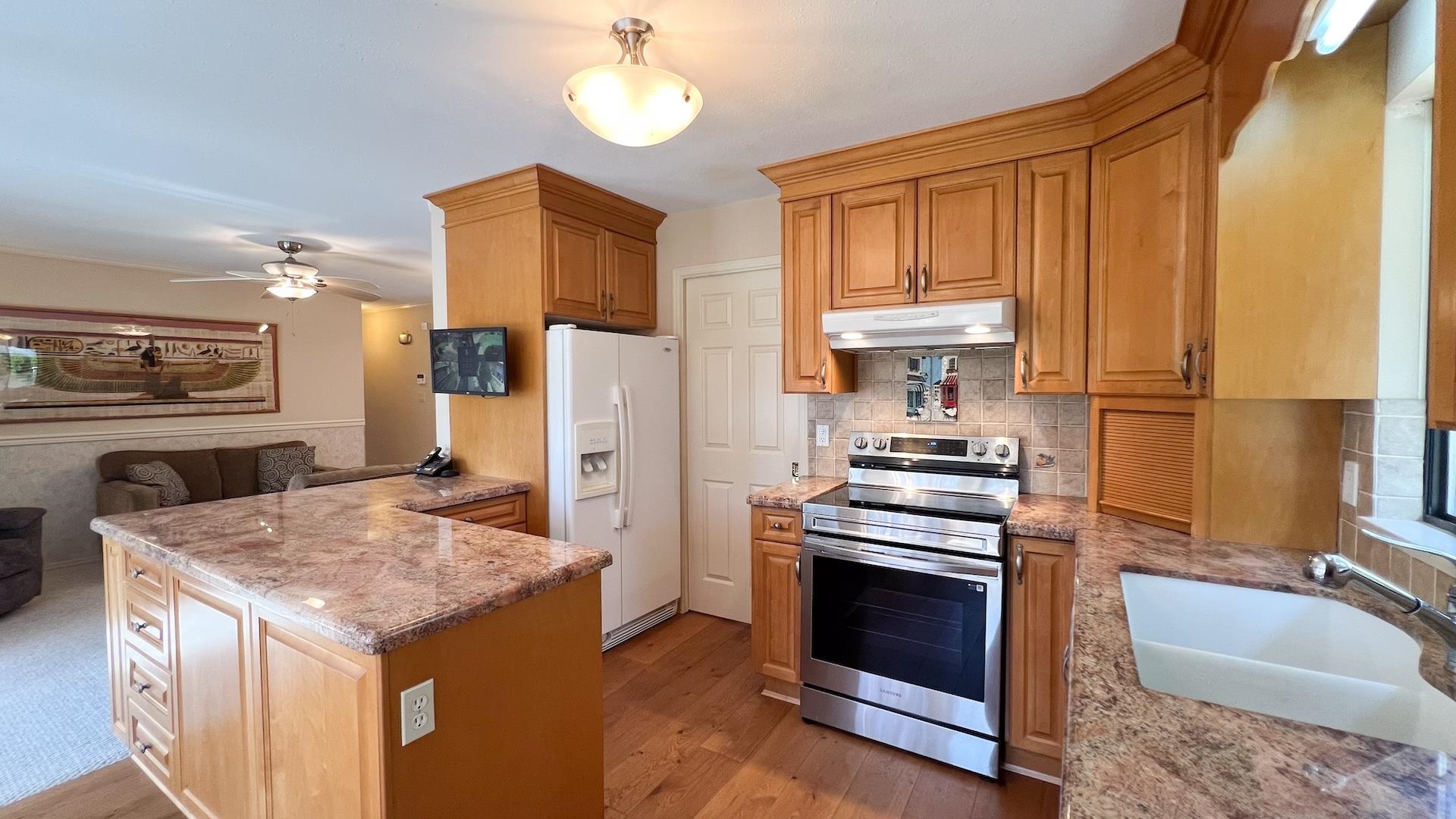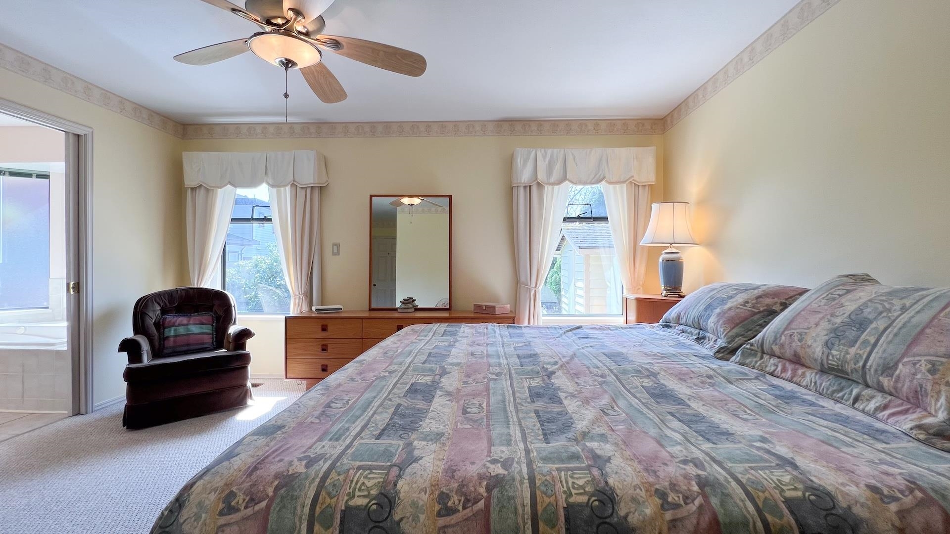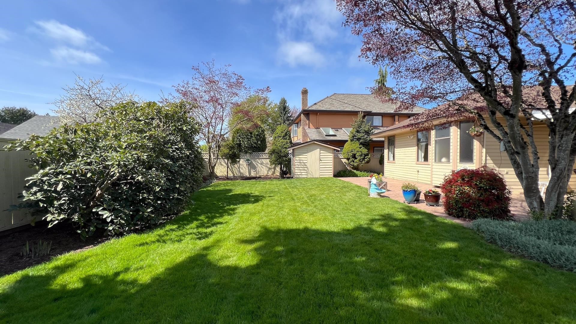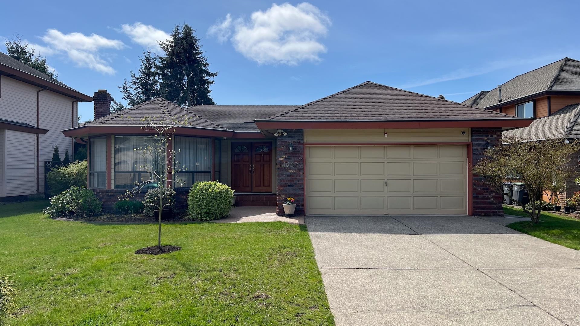 MERIDIAN BY THE SEA - Choice South Surrey Bungalow on a large lot in a prime quiet cul-de-sac location. Lovingly looked after & updated over the years, this 3-bed, 2-bath 1,732 sq ft home is super clean and move-in ready. Excellent floor plan with skylights, vaulted ceiling, separate living, dining & family room areas, gas f/p, and updated kitchen with large eating Nook. Spacious primary bedroom with huge walk-in closet and ensuite will delight you! New A/C, furnace, & hotwater on demand. Fully fenced SOUTH...