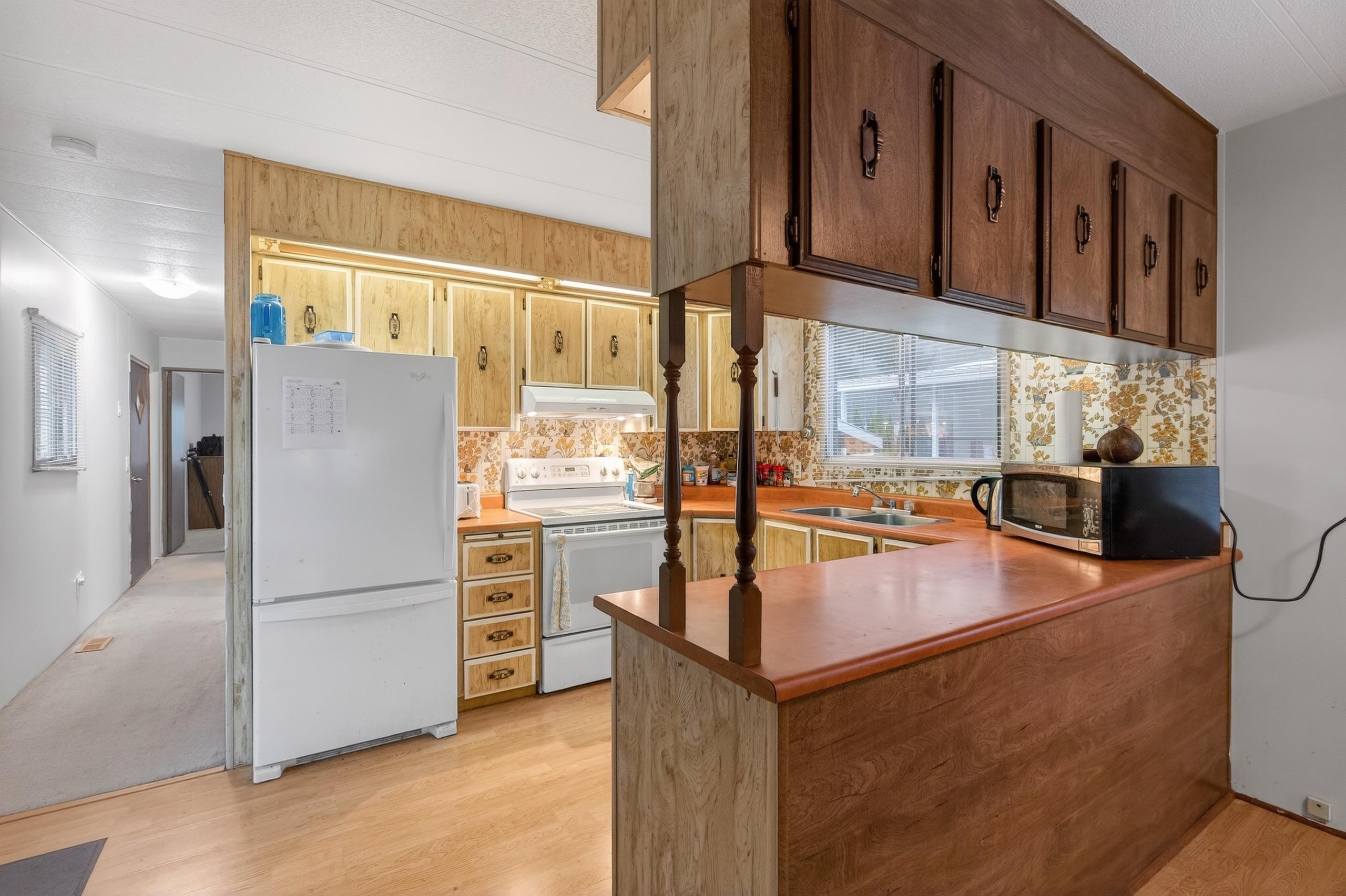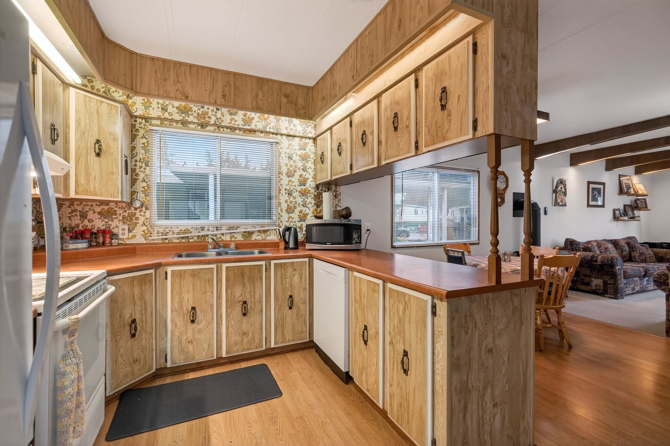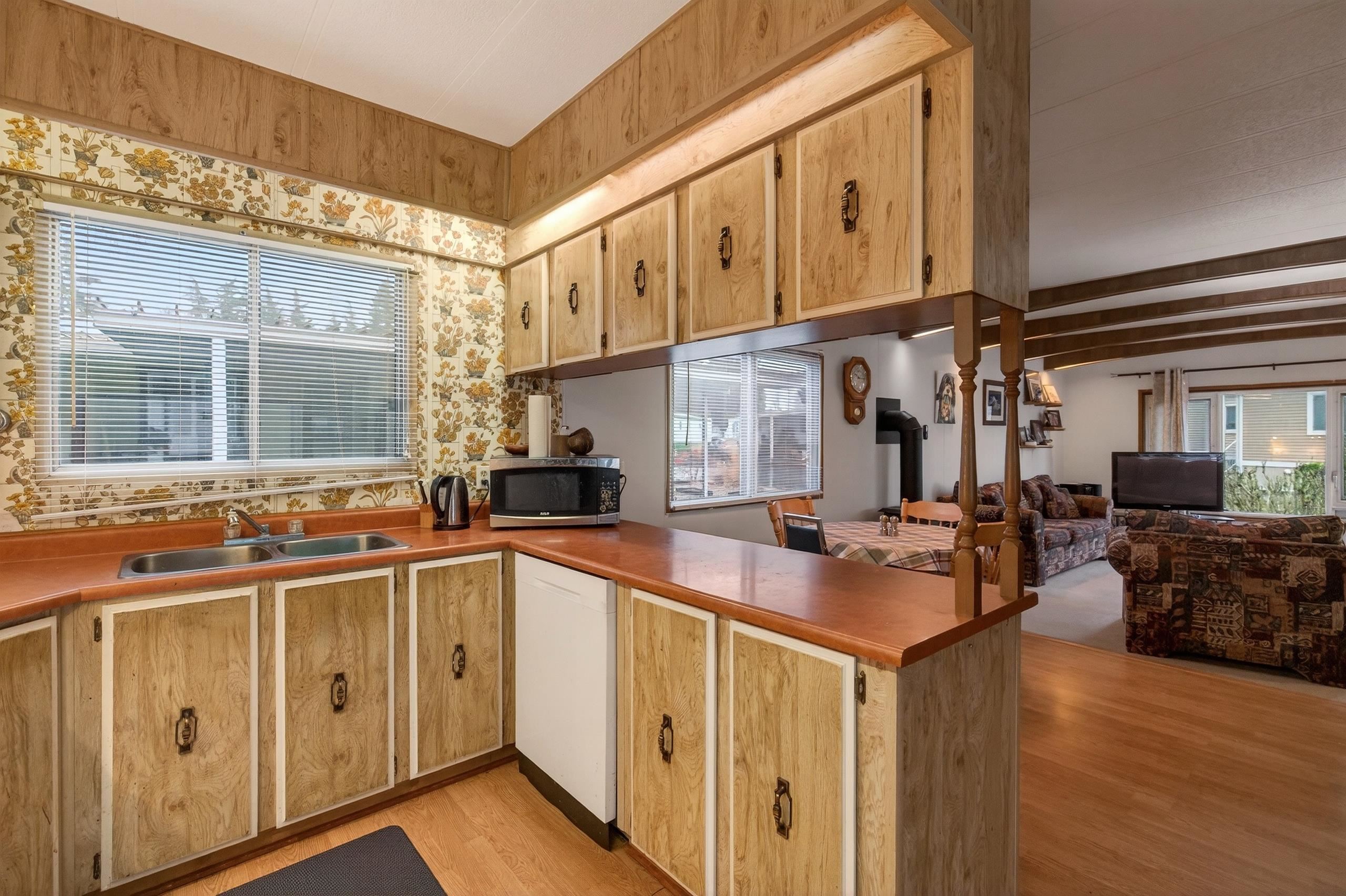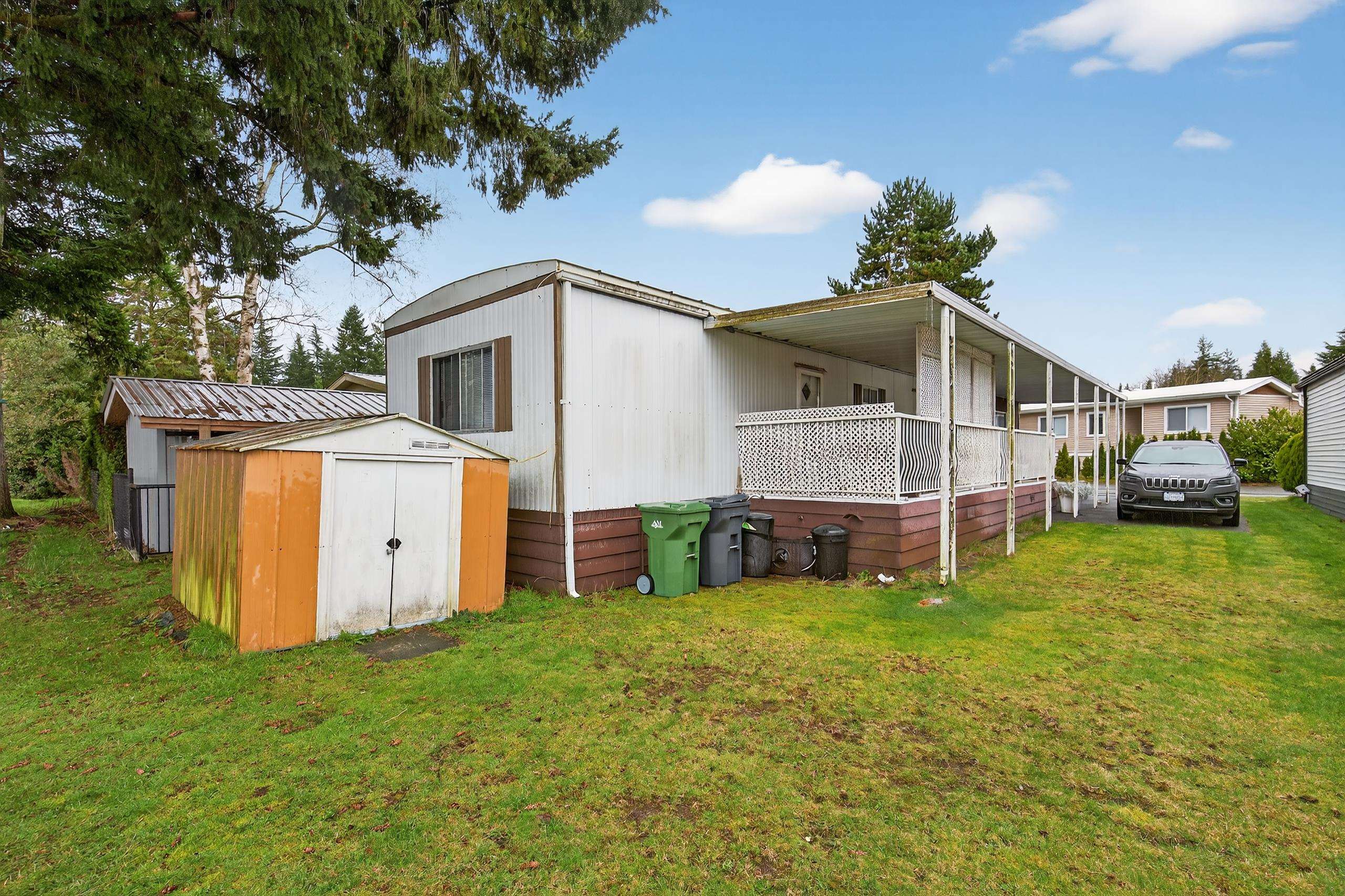 This home offers 2 bedrooms (1 can accommodate a King size bed) and 1 bathroom. There is a bright living room with a Bay window, a functional layout and spacious covered deck to enjoy year-round. Includes parking for up to 3 vehicles. Located in desirable Langley Grove Estates, one of the most popular manufactured home communities. This property offers an excellent opportunity in a fantastic location. The park features beautiful landscaping, no age restrictions and is just blocks from Otter Co-op, with e...