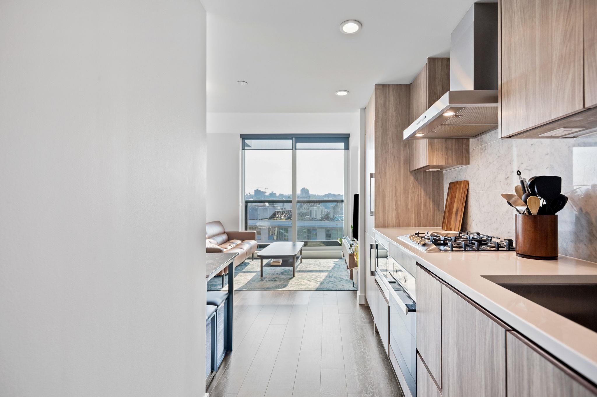 Experience luxury & convenience at Avenue One, built by award-winning Concord Pacific in Vancouver's Olympic Village. This stunning 1BED 1 BATH condo features a full Miele appliance package, European cabinetry, elegant marble flooring in the bathroom & sleek laminate floors. Custom millworked doors & archways add a touch of sophistication. Building amenities include a social lounge with a pool table & plush TV viewing area an exclusive club-style gym & an outdoor sun lounge. A dedicated concierge is also on...